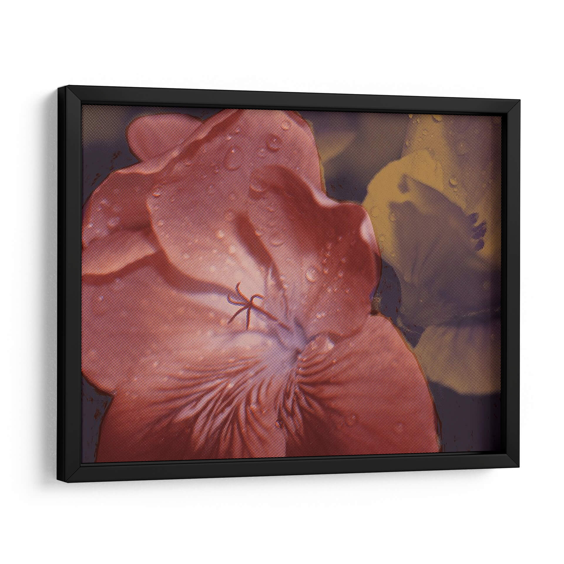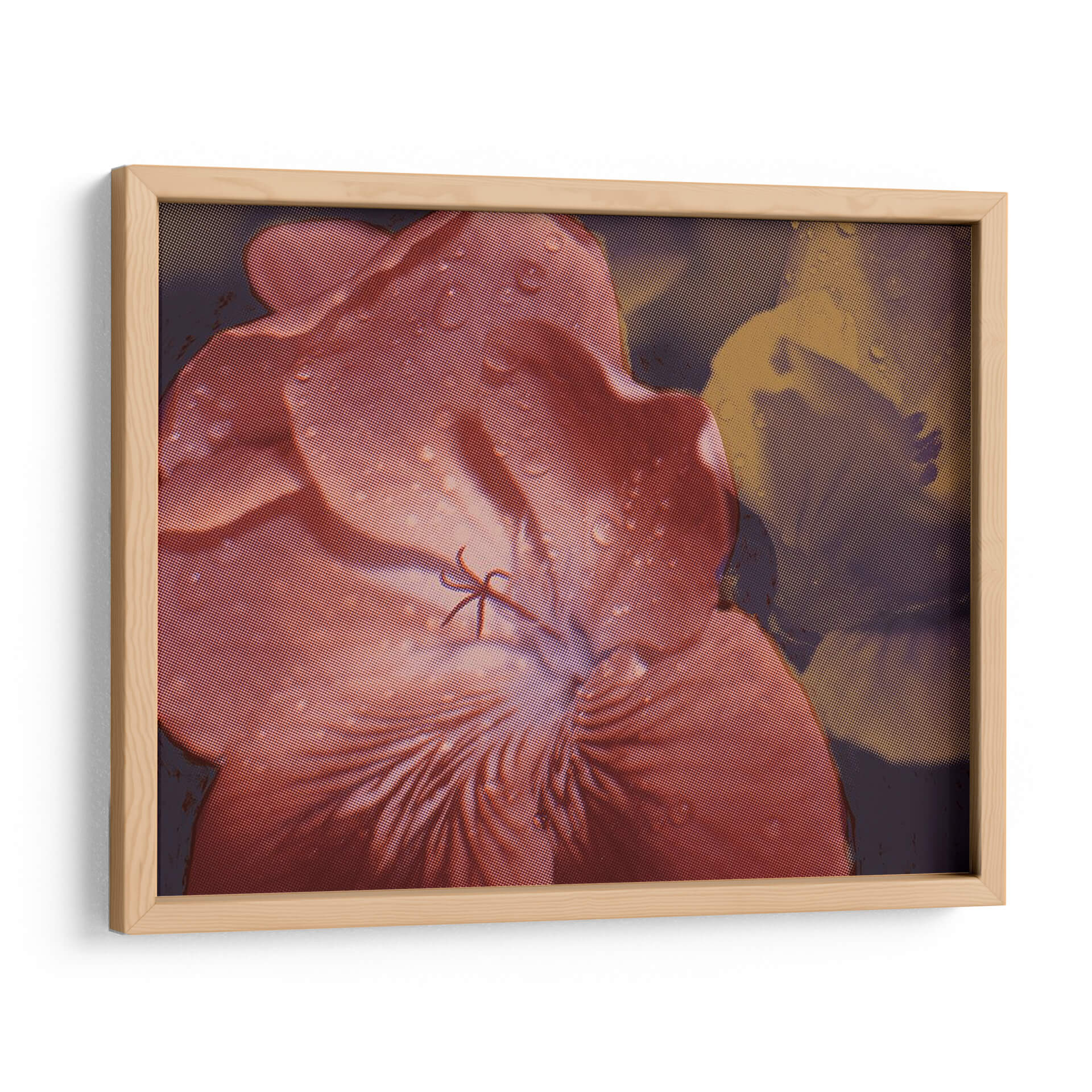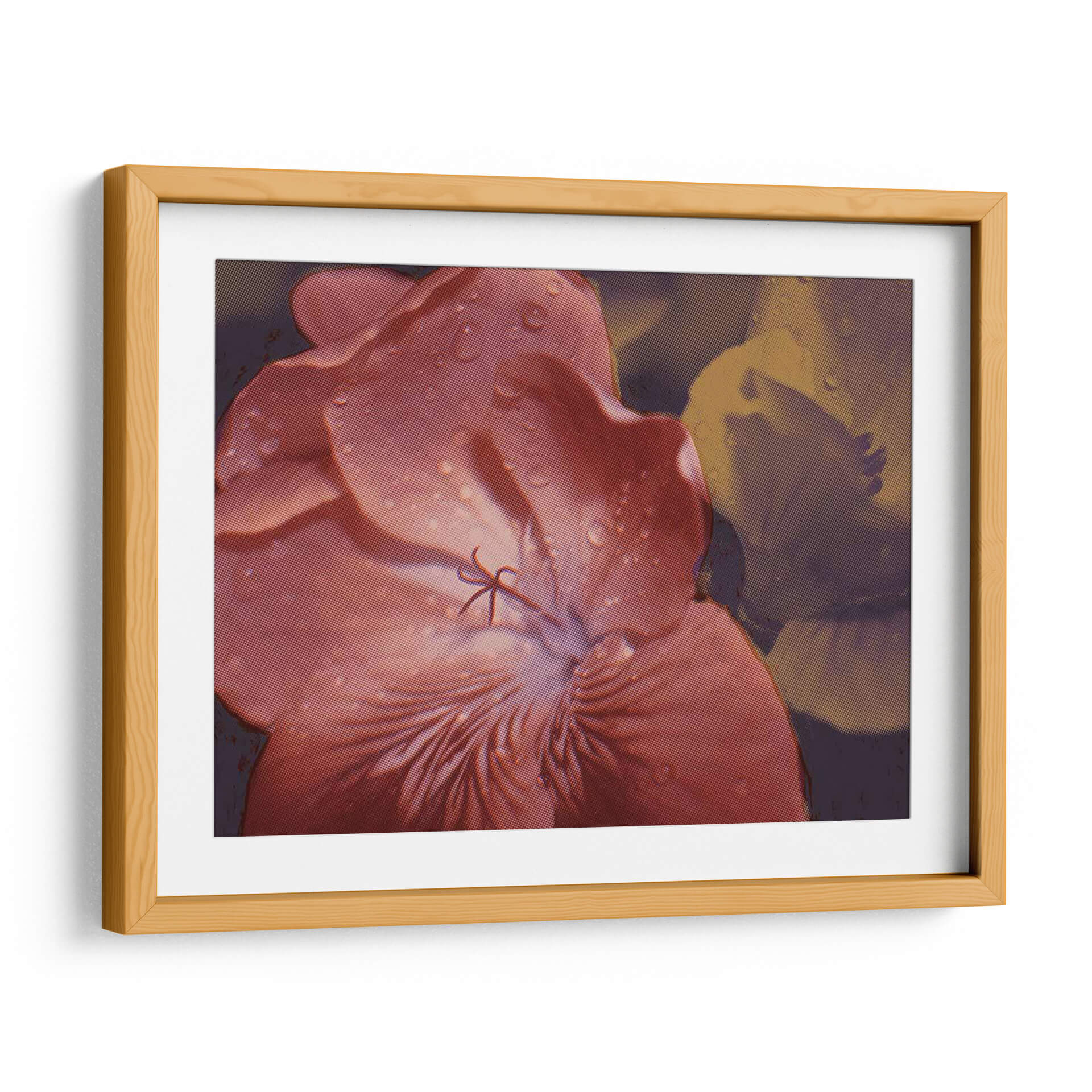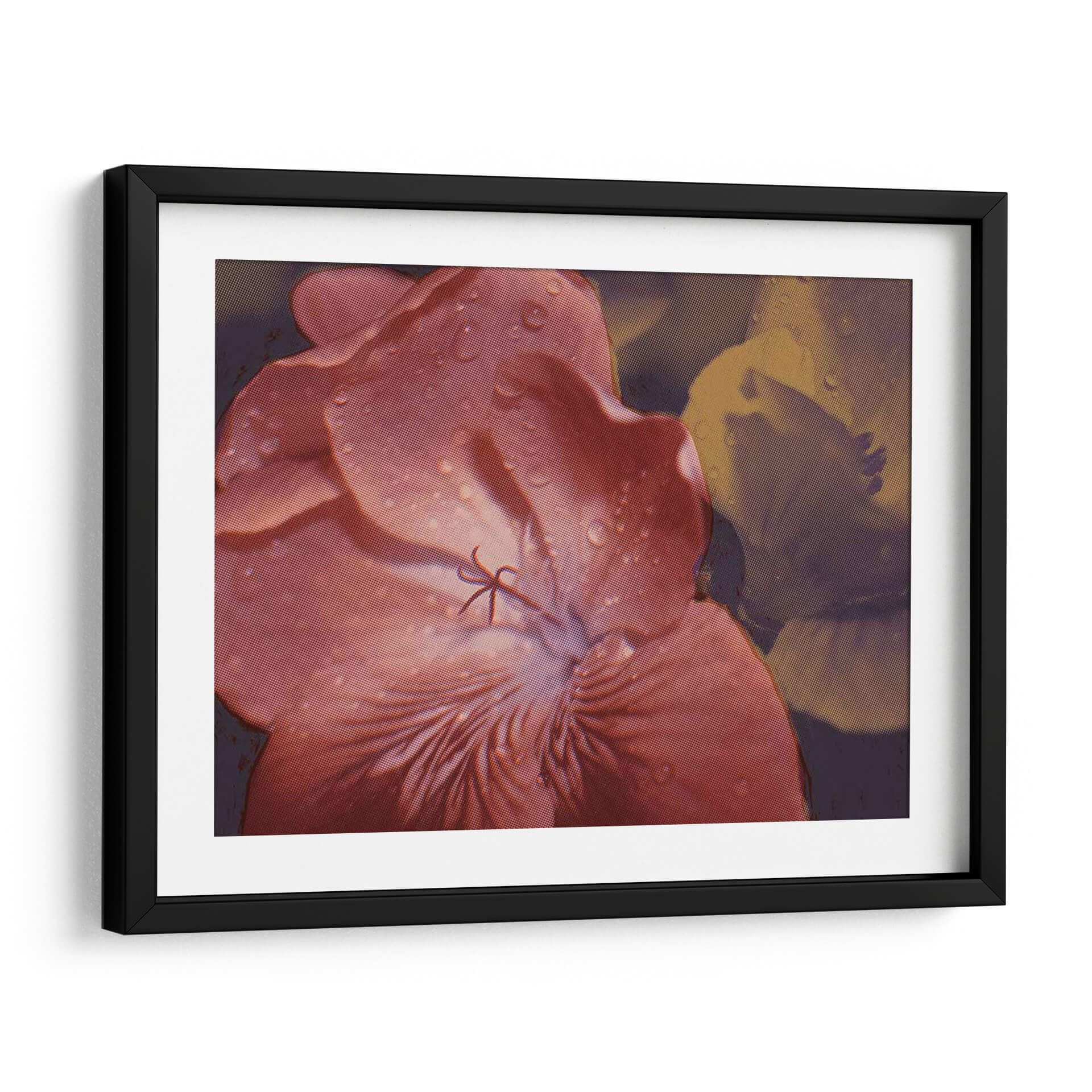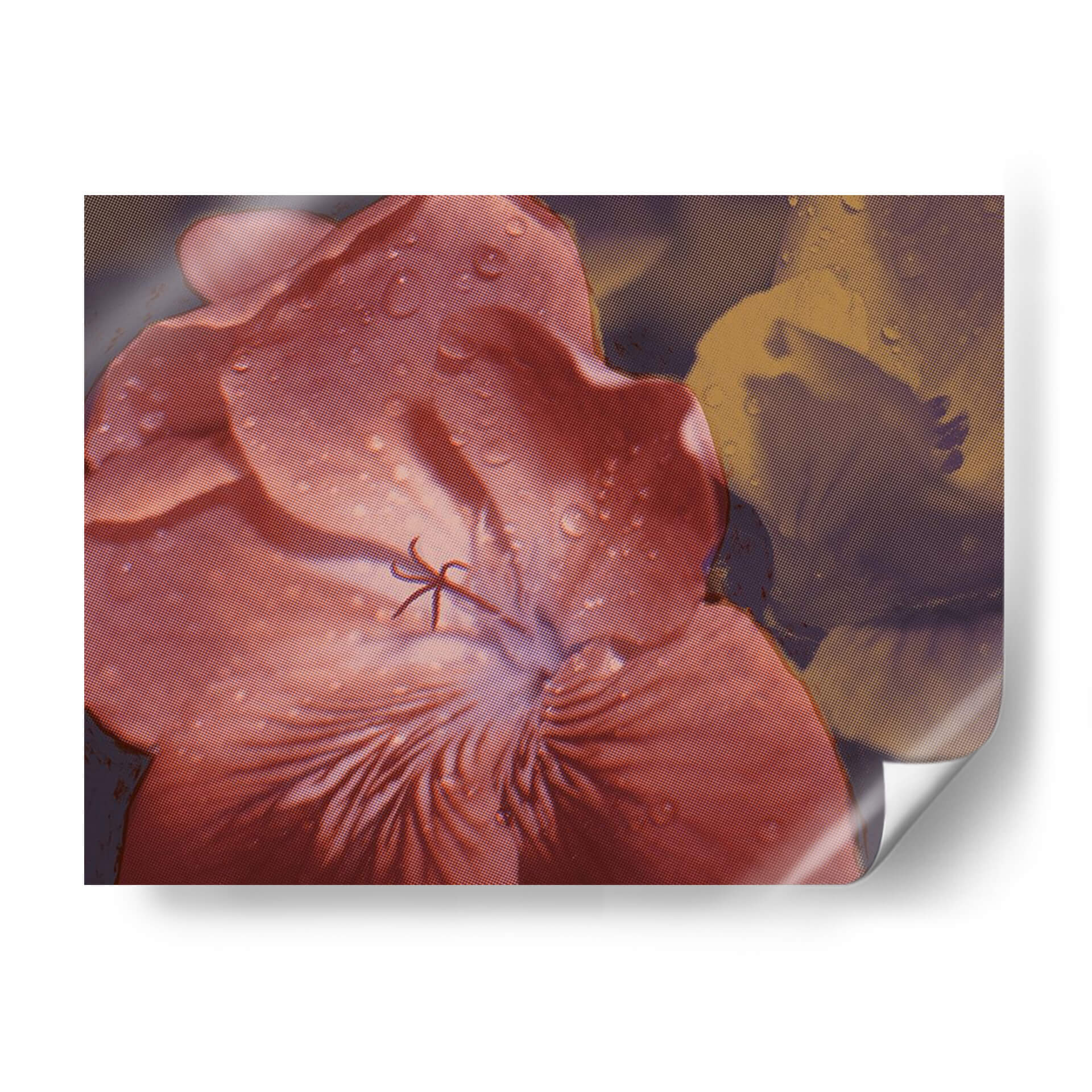 Embellece tu hogar con "Geraniums De Jardín II", una obra de arte digital que captura la delicadeza de una flor en primer plano, adornada con sutiles gotas de agua que añaden un toque de frescura y realismo. La paleta de colores, dominada por tonos rosados y rojizos intensos en el pétalo principal, contrasta con un fondo en tonos tierra y púrpuras oscuros, creando una atmósfera íntima y envolvente. El estilo, que combina elementos de realismo fotográfico con una textura de semitonos que evoca grabados clásicos, aporta una dimensión artística única a la pieza. Esta composición floral es ideal para añadir un punto de interés visual en salas de estar, dormitorios o estudios, aportando una sensación de calma y conexión con la naturaleza. Los detalles de las gotas de agua sobre los pétalos invitan a la contemplación, transformando cualquier espacio en un refugio de serenidad y elegancia. Descubre cómo este cuadro decorativo puede infundir vida y color a tus paredes, convirtiéndose en el centro de todas las miradas y reflejando tu aprecio por la belleza botánica y el arte contemporáneo.