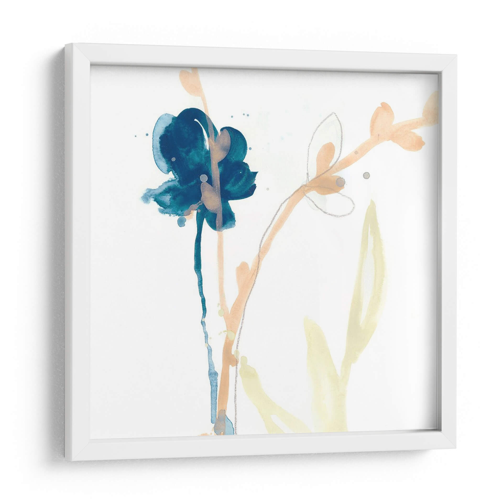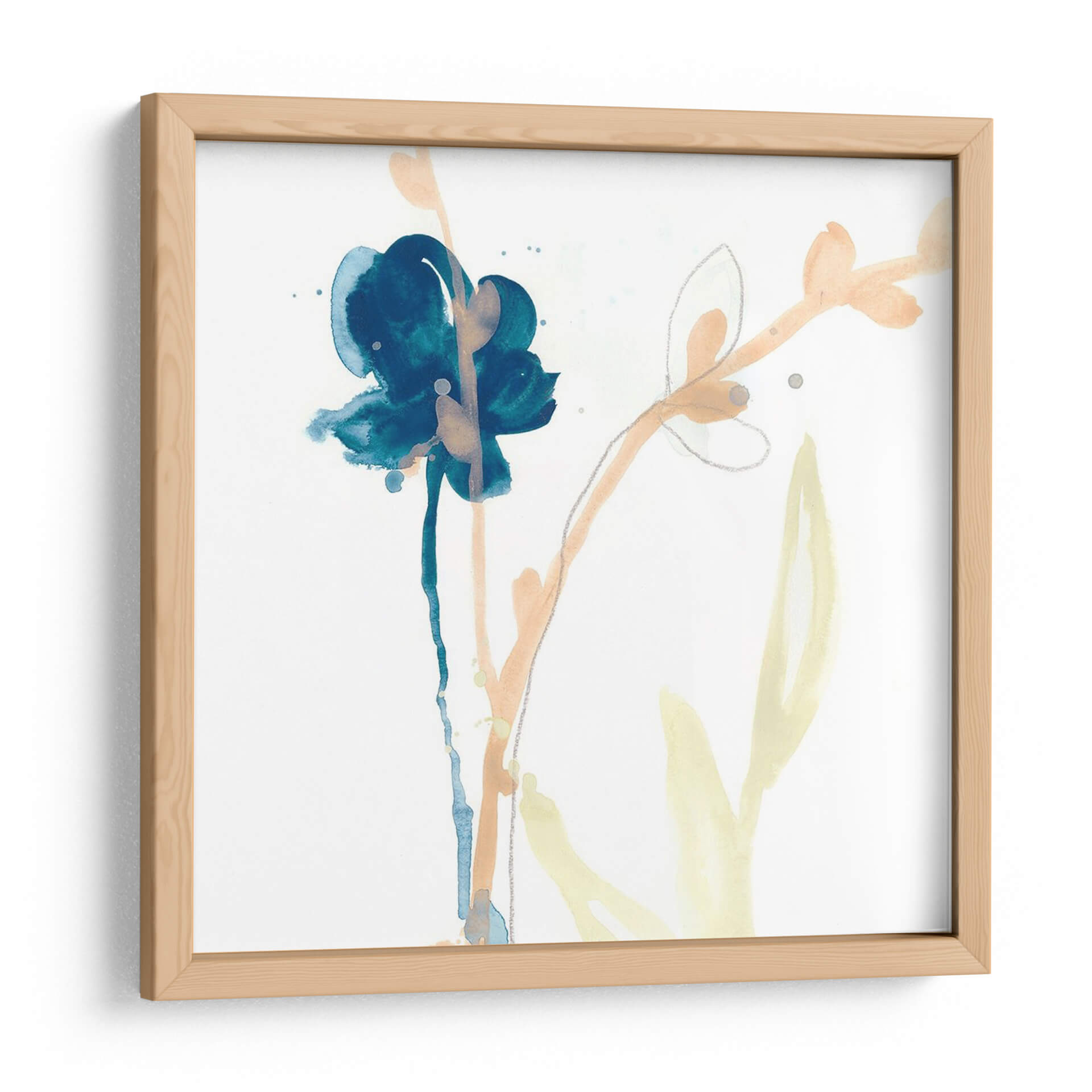 Sumérgete en la delicadeza floral con "Gesto De Botánica V", una obra de arte contemporáneo que captura la esencia efímera de la naturaleza con una paleta de colores serena. Este cuadro decorativo presenta un vibrante gesto azul que evoca una flor estilizada, enmarcado por trazos suaves en tonos anaranjados y amarillos pálidos sobre un fondo blanco impoluto. La técnica acuosa, con sus sutiles salpicaduras y líneas fluidas, confiere a la pieza una ligereza y un aire etéreo, perfecto para espacios que buscan transmitir calma y sofisticación. Ideal para dormitorios, salas de estar o estudios, esta pieza invita a la contemplación y aporta un toque de arte moderno y orgánico a cualquier decoración. "Gesto De Botánica V" es una elección exquisita para quienes aprecian la belleza sutil y la expresión artística minimalista, creando un punto focal elegante y refrescante en tu hogar u oficina.
