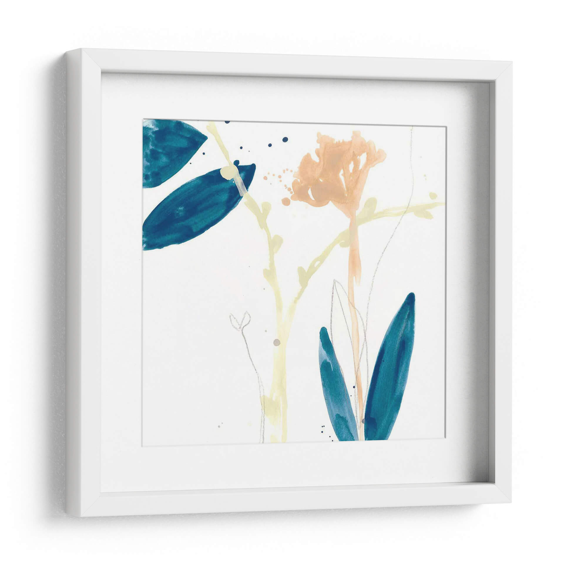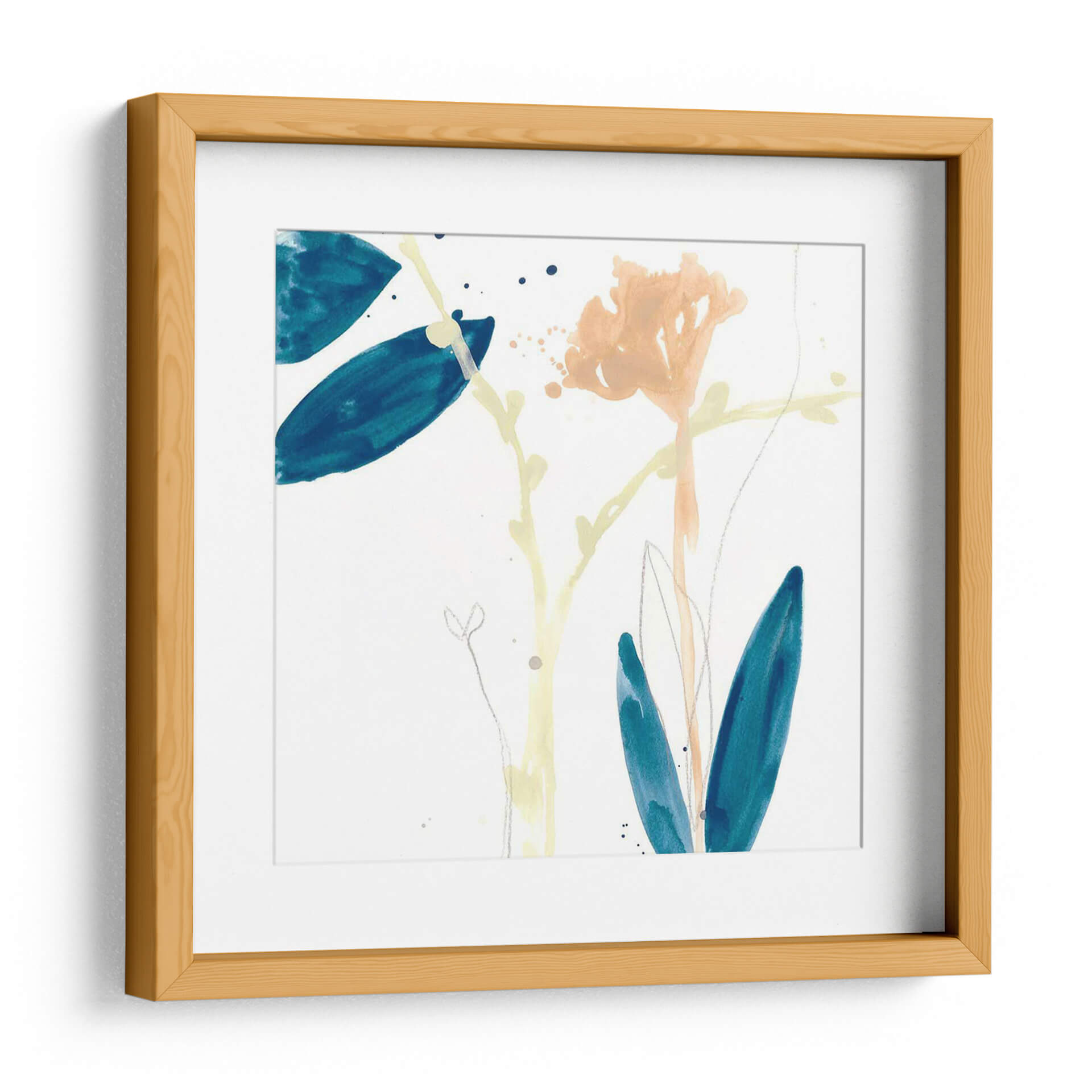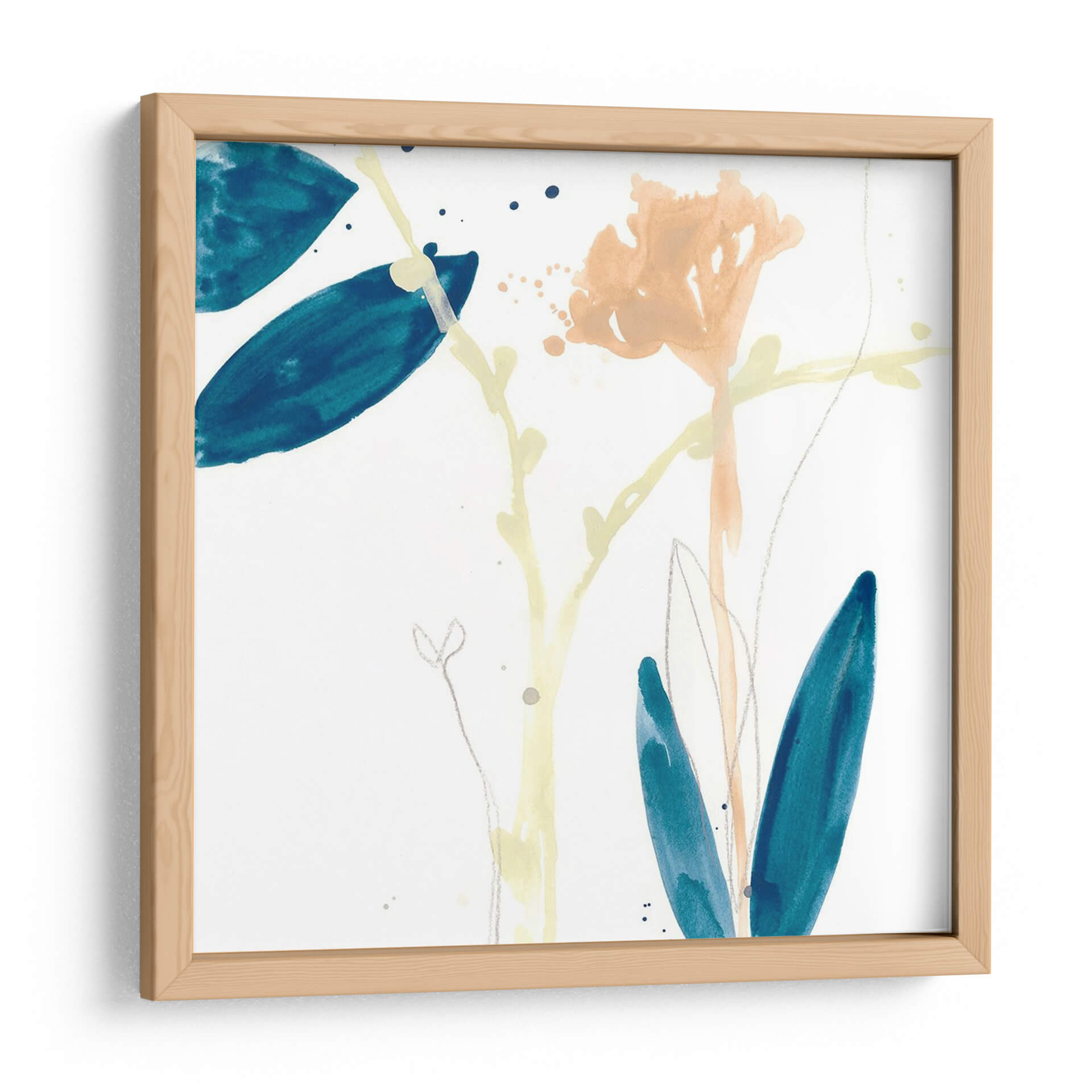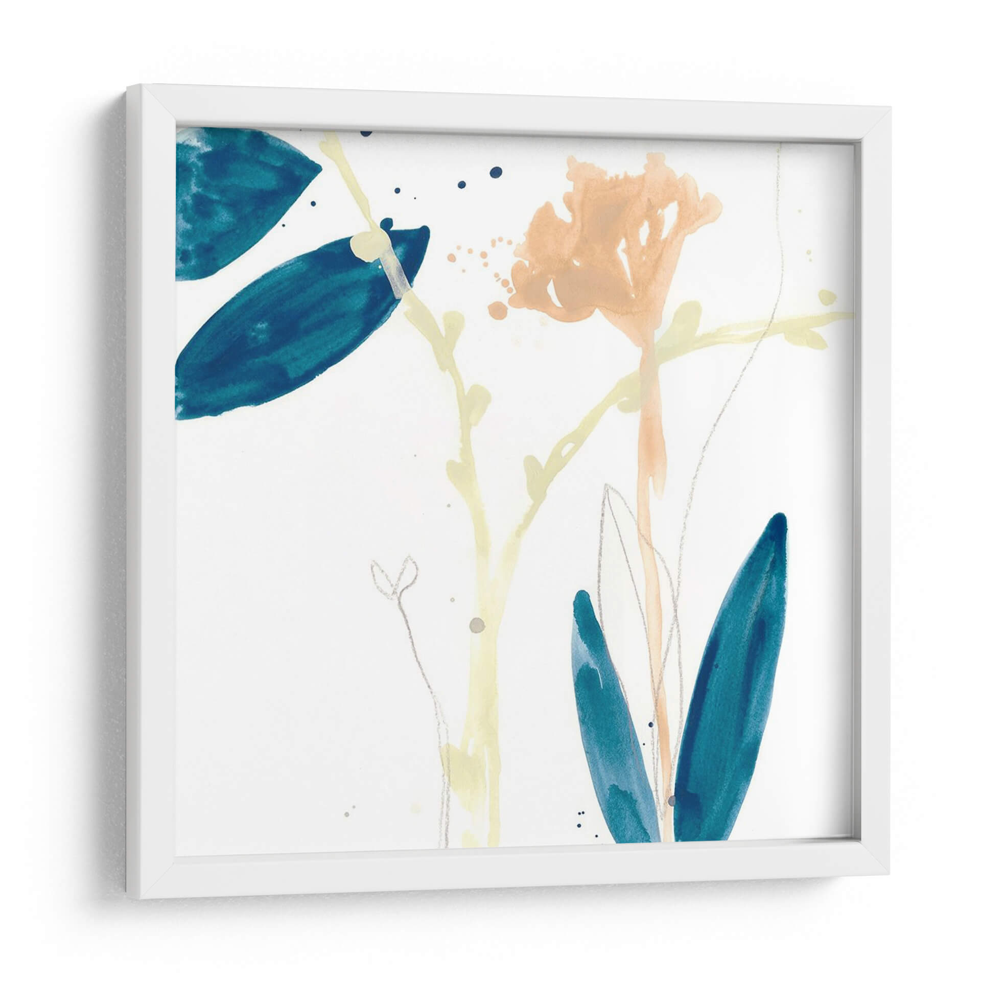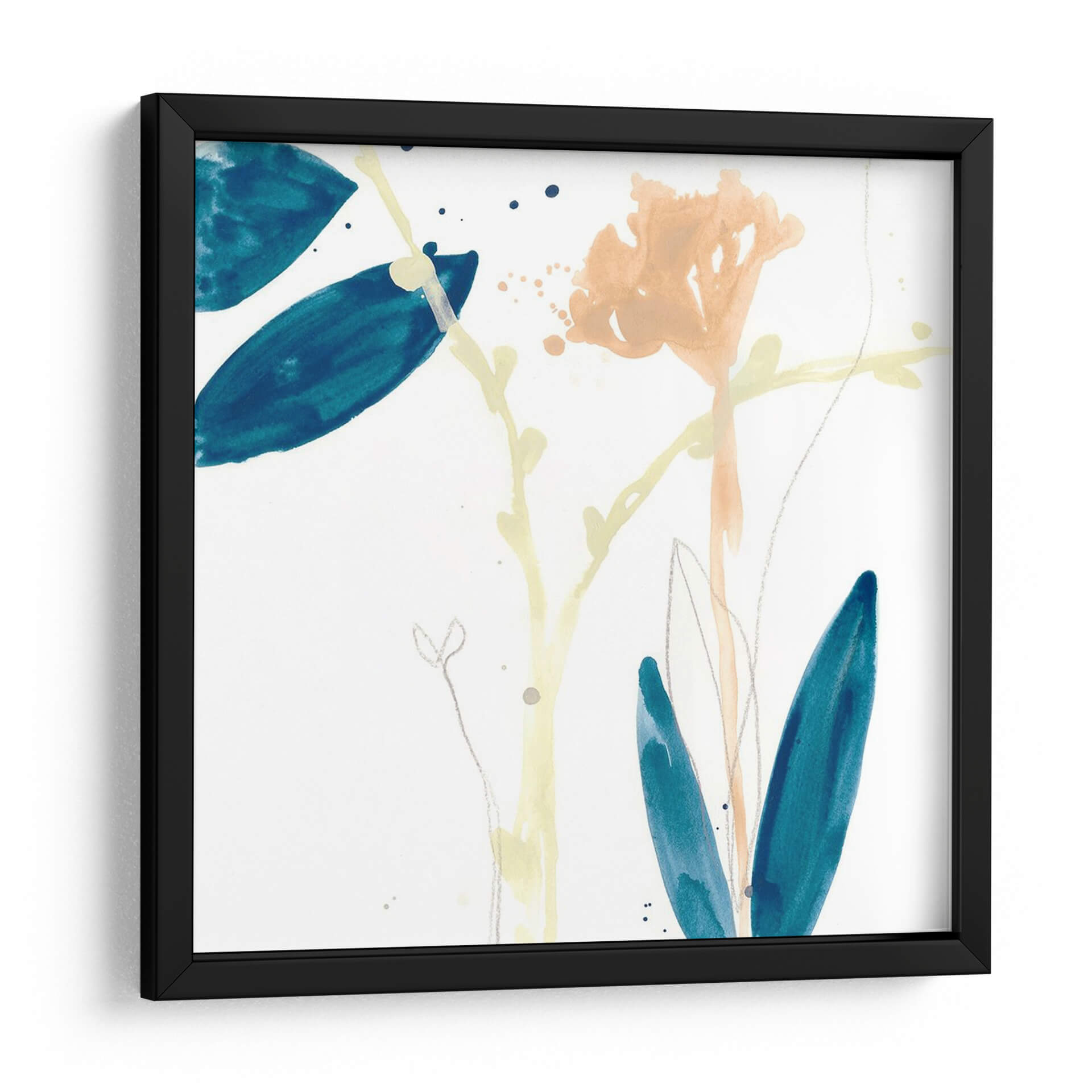 Sumérgete en la delicadeza botánica con "Gesto De Botánica Vii", una obra de arte contemporáneo que captura la esencia de la naturaleza con trazos etéreos y una paleta de colores serena. Este cuadro decorativo presenta una composición sutil de formas florales y hojas en tonos azul profundo, melocotón suave y amarillo pálido, suspendidas sobre un fondo blanco inmaculado. La técnica acuarela evoca una sensación de ligereza y movimiento, como si la brisa acariciara delicadamente los pétalos y las hojas. Los detalles finos, como los trazos de lápiz plateado y las salpicaduras de tinta, añaden profundidad y textura a la pieza, invitando a una contemplación pausada. "Gesto De Botánica Vii" es perfecto para infundir calma y sofisticación en cualquier espacio, ya sea un rincón de lectura acogedor, un dormitorio tranquilo o una sala de estar moderna que busque un toque de elegancia natural. Esta pieza se integra armónicamente con estilos decorativos variados, desde el escandinavo hasta el bohemio, aportando una conexión tangible con el mundo natural y un aire de frescura artística. Descubre cómo esta obra puede transformar tu hogar en un santuario de paz y belleza.