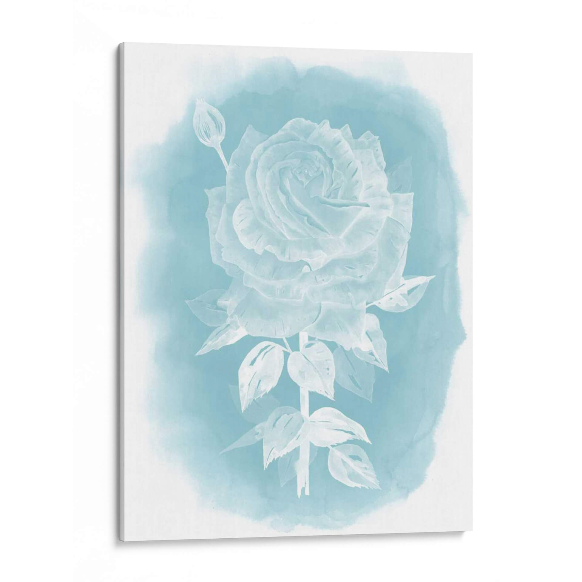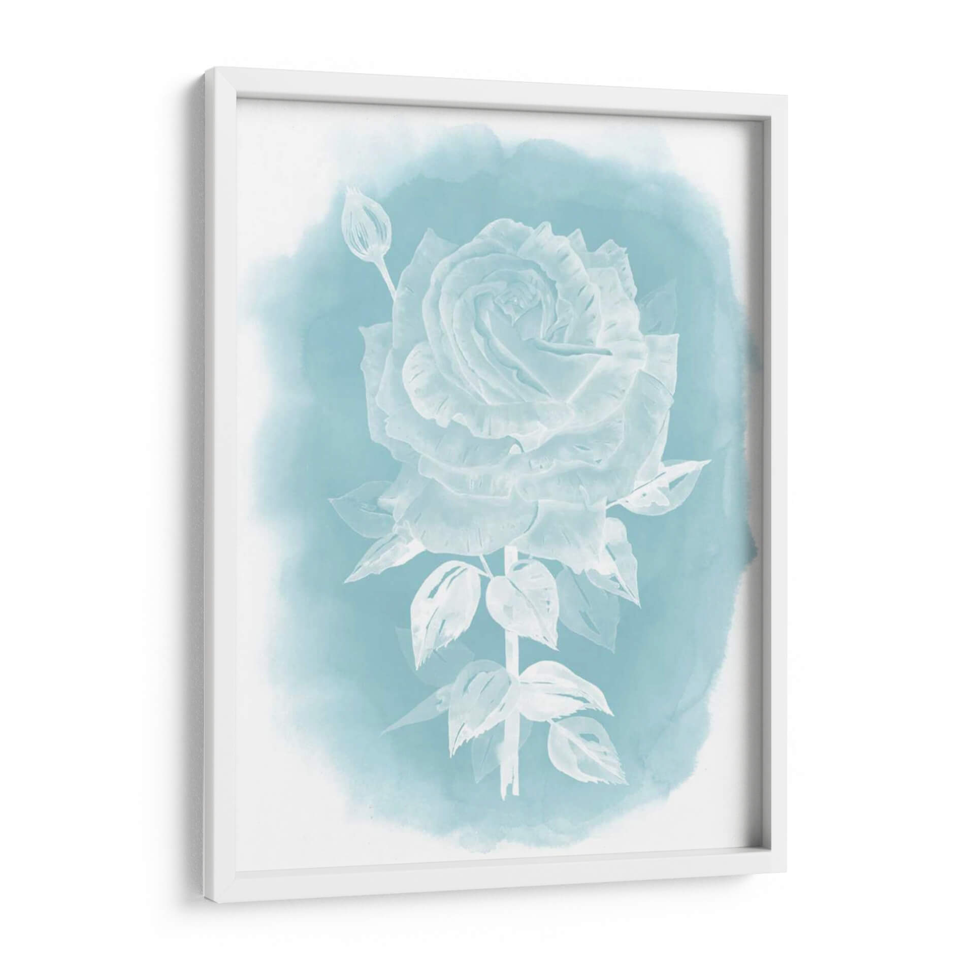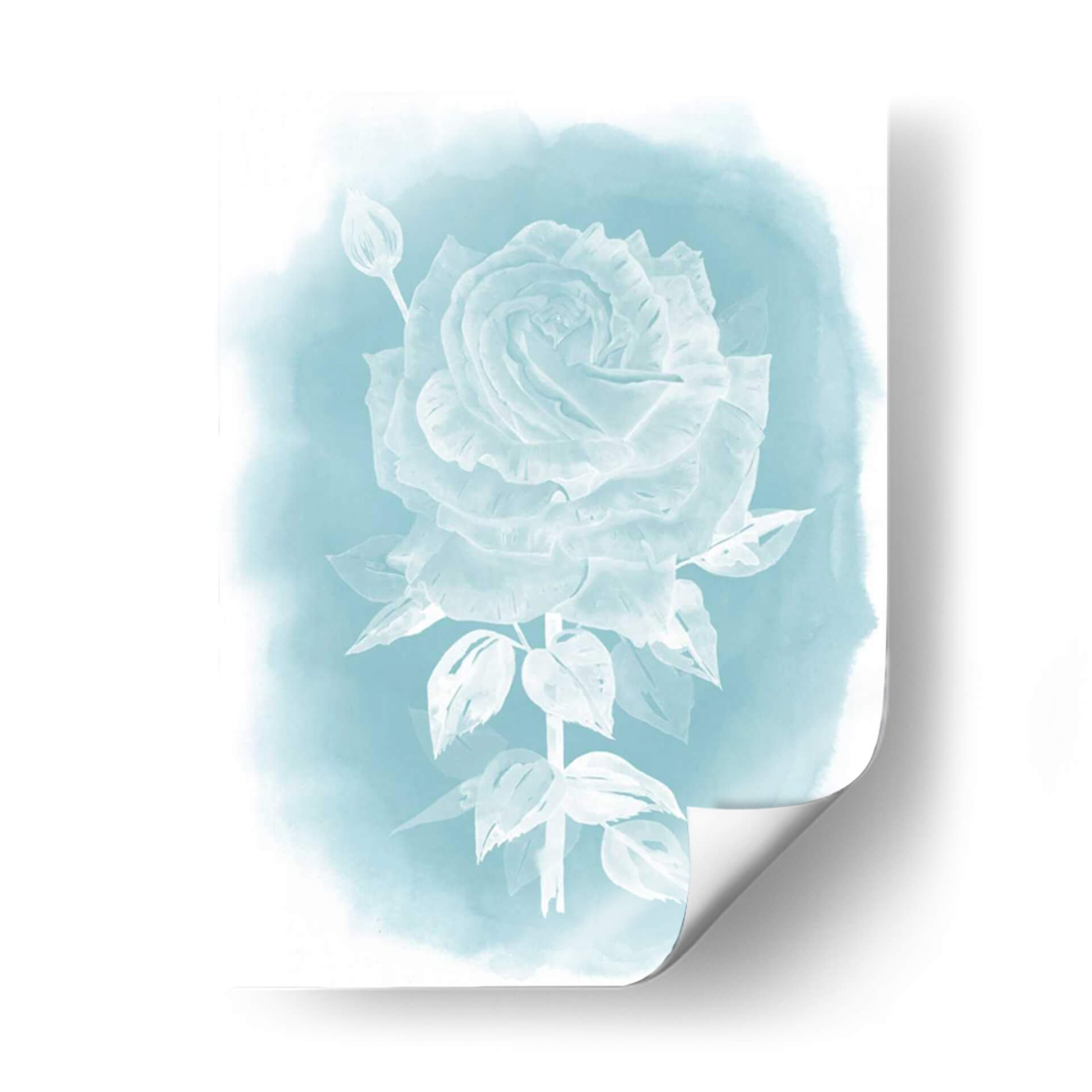 Sumérgete en la delicada belleza de "Ghost Rose II", una obra de arte que captura la esencia etérea de una rosa blanca sobre un fondo de acuarela en tonos celestes y turquesas. La detallada representación de los pétalos de la rosa, junto con un capullo cercano y hojas sutiles, evoca una sensación de tranquilidad y elegancia. El estilo, que roza lo impresionista con toques de realismo en la forma de la flor, se ve realzado por la técnica de acuarela que difumina suavemente los bordes, creando una atmósfera onírica y serena. Este cuadro decorativo es perfecto para aquellos que buscan añadir un toque de sofisticación sutil y un respiro visual a su hogar u oficina. Ideal para dormitorios, baños o salas de estar donde se desee crear un ambiente de calma y serenidad, "Ghost Rose II" es una pieza que invita a la contemplación. Su paleta de colores suaves y la composición centrada en la flor la convierten en un punto focal delicado pero cautivador, capaz de complementar una amplia gama de estilos decorativos, desde el moderno hasta el escandinavo o el bohemio.