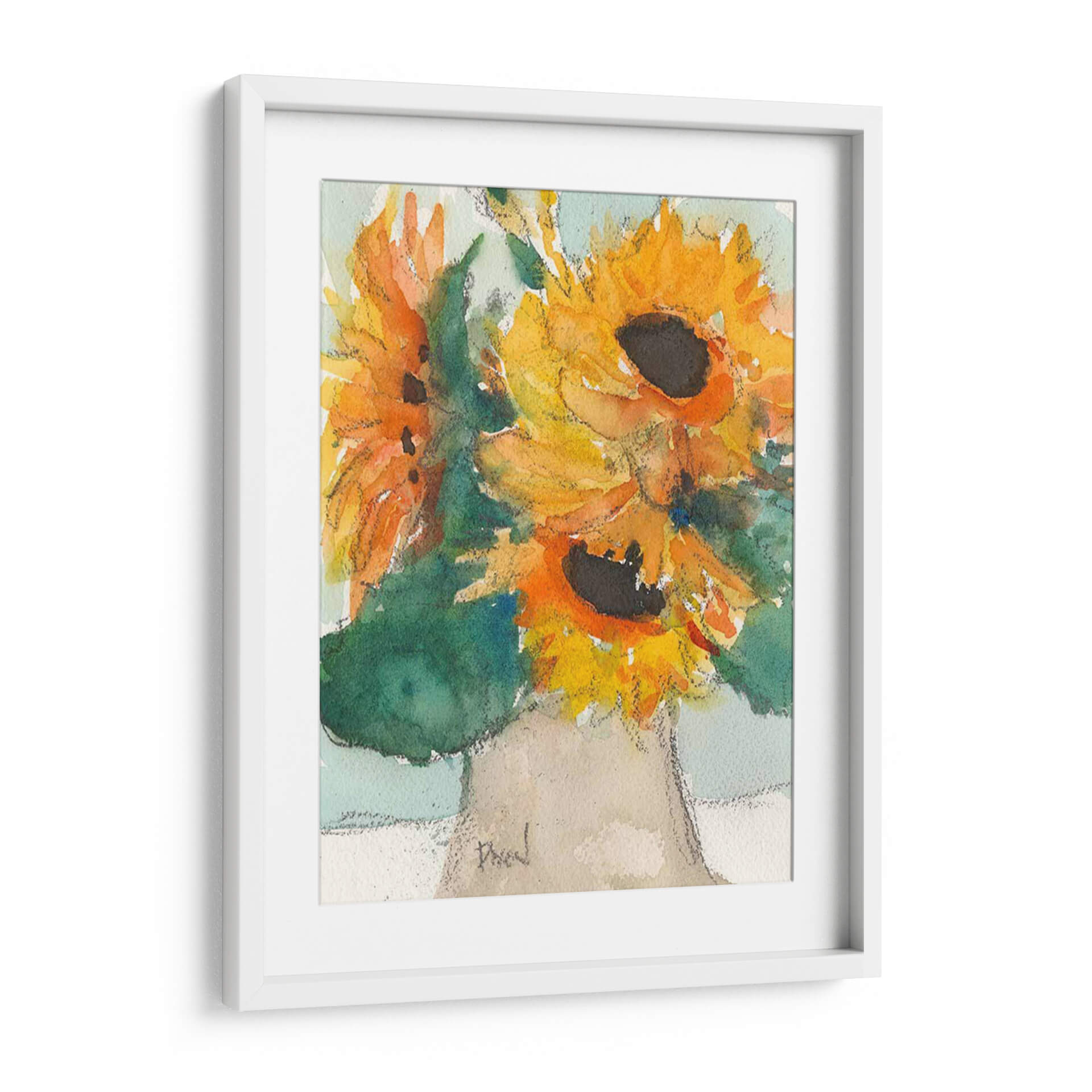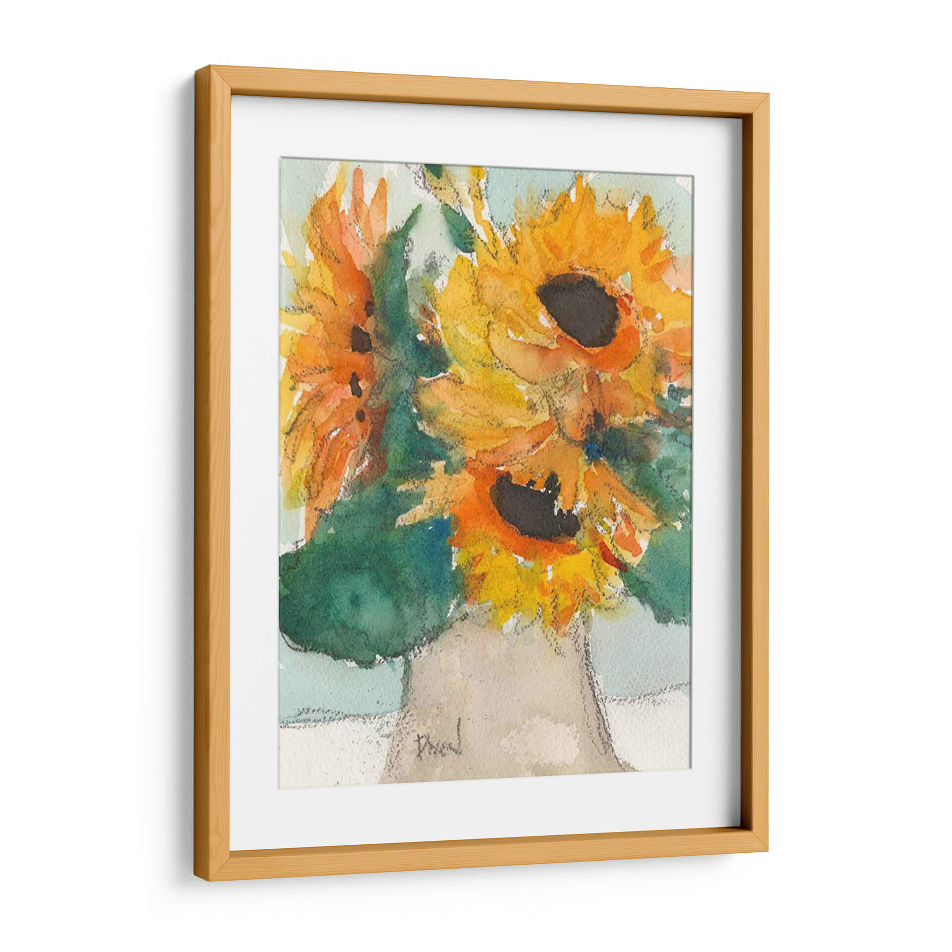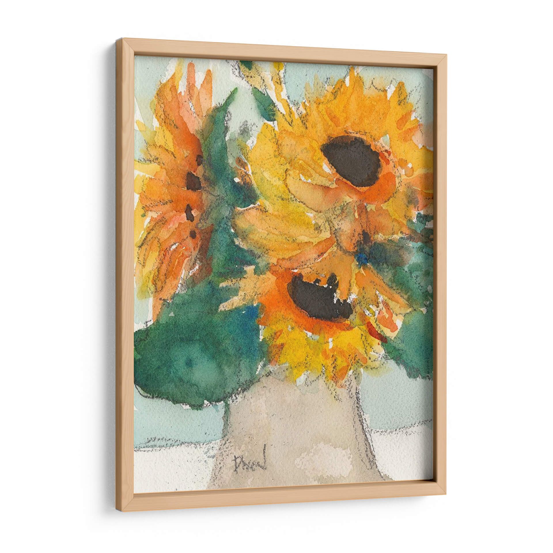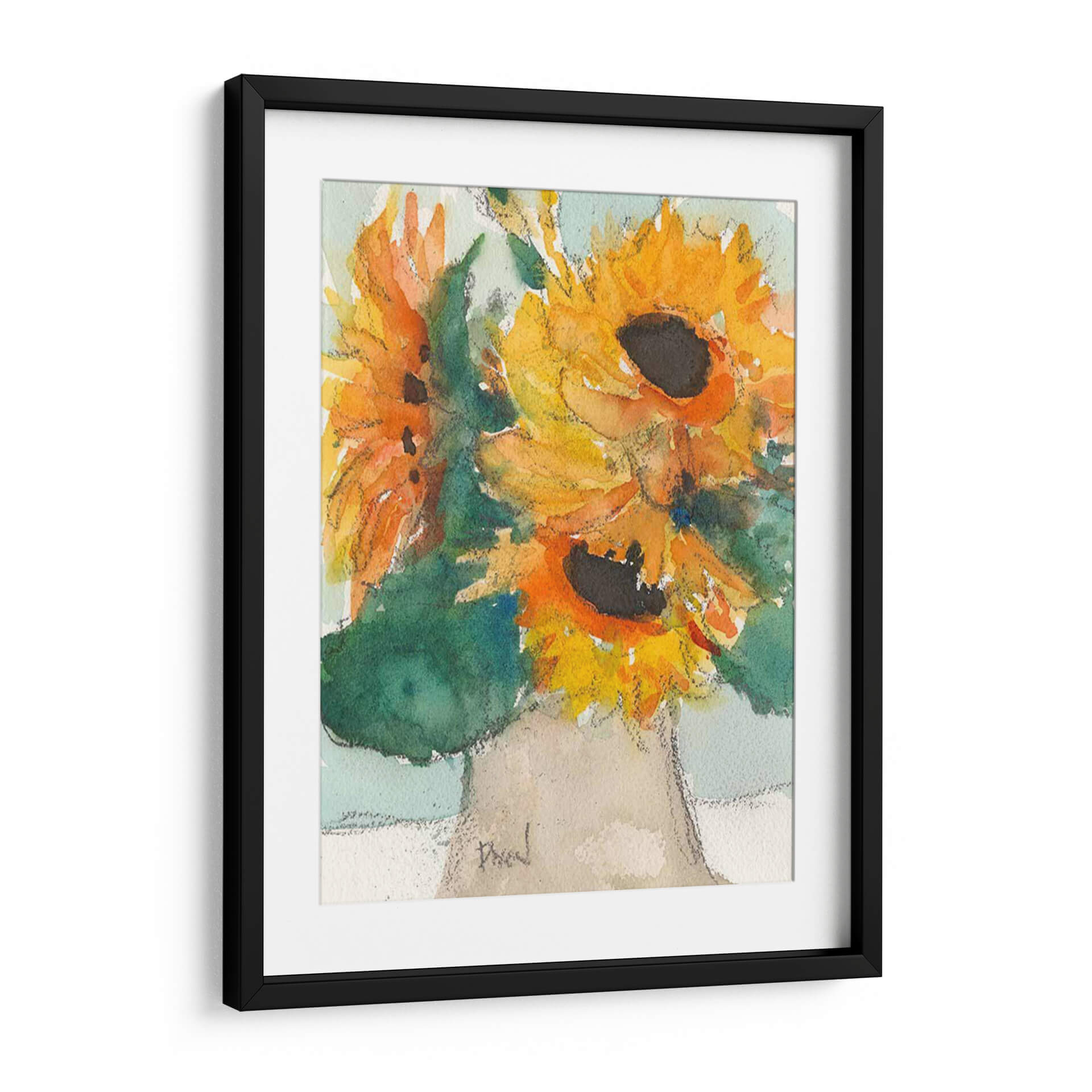 Embellece tu hogar con el cuadro decorativo "Girasoles Rústicos I" de Samuel Dixon, una obra que captura la esencia vibrante y cálida de la naturaleza. Esta pieza, ejecutada con una técnica acuarela que evoca fluidez y luminosidad, presenta un ramo de girasoles en tonos dorados, naranjas y amarillos intensos. Las hojas de un verde profundo contrastan elegantemente con el fondo de aguamarina suave, creando una atmósfera de serenidad y alegría. La composición, con los girasoles en un jarrón de aspecto rústico, aporta un toque de encanto campestre y autenticidad a cualquier espacio. Ideal para añadir un punto de luz y energía a salas de estar, comedores o estudios, este cuadro decorativo es perfecto para quienes buscan infundir sus ambientes con optimismo y belleza natural. Cada pincelada transmite la vitalidad de las flores, invitando a la contemplación y al disfrute de los pequeños detalles. Transforma tu decoración con esta pieza única que celebra la belleza efímera y poderosa de los girasoles.
