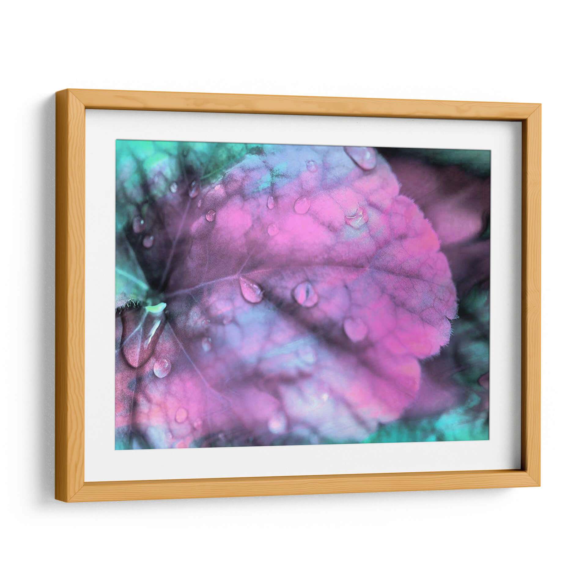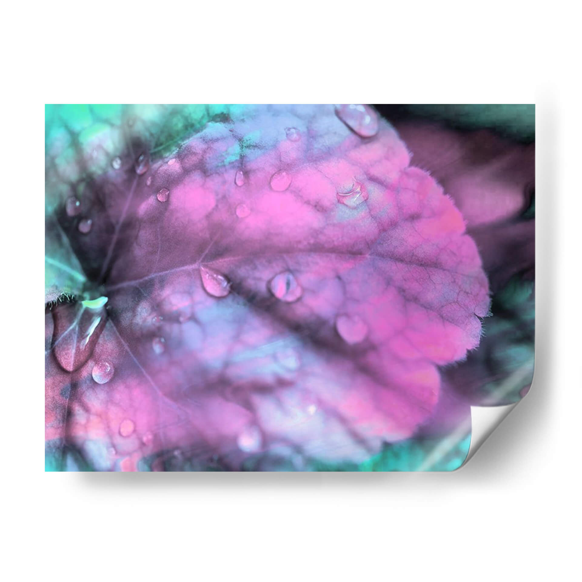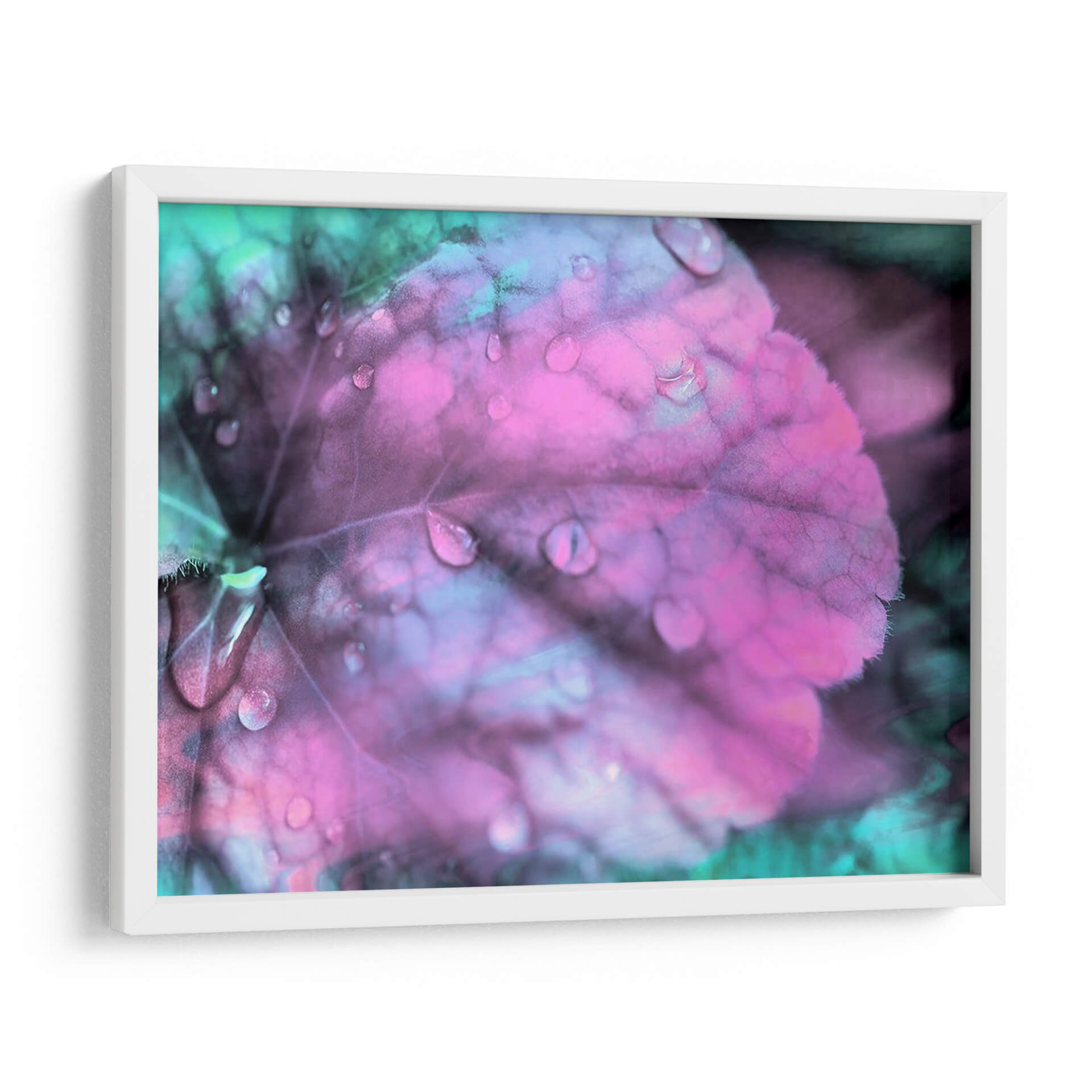 Sumérgete en la serena belleza de "Gotas de Rocío Celestial III", una obra de arte contemporáneo que captura la delicadeza de la naturaleza con una paleta de colores etérea. Este cuadro decorativo presenta un primer plano de una hoja cubierta de gotas de rocío, con tonalidades vibrantes de rosa fucsia y azul turquesa que crean una atmósfera onírica y relajante. La textura detallada de la hoja, junto con el brillo de las gotas de agua, aporta una profundidad visual cautivadora. Ideal para quienes buscan infundir calma y un toque de magia en su hogar u oficina, esta pieza se adapta perfectamente a espacios modernos o minimalistas, actuando como un punto focal suave pero impactante. Su estilo fotográfico macro, con un enfoque suave y colores intensificados, evoca una sensación de tranquilidad y contemplación, invitando a la reflexión. Añade un toque de sofisticación natural a tu decoración con este impresionante cuadro de hoja y rocío, perfecto para salas de estar, dormitorios o cualquier rincón que necesite una dosis de serenidad y color.