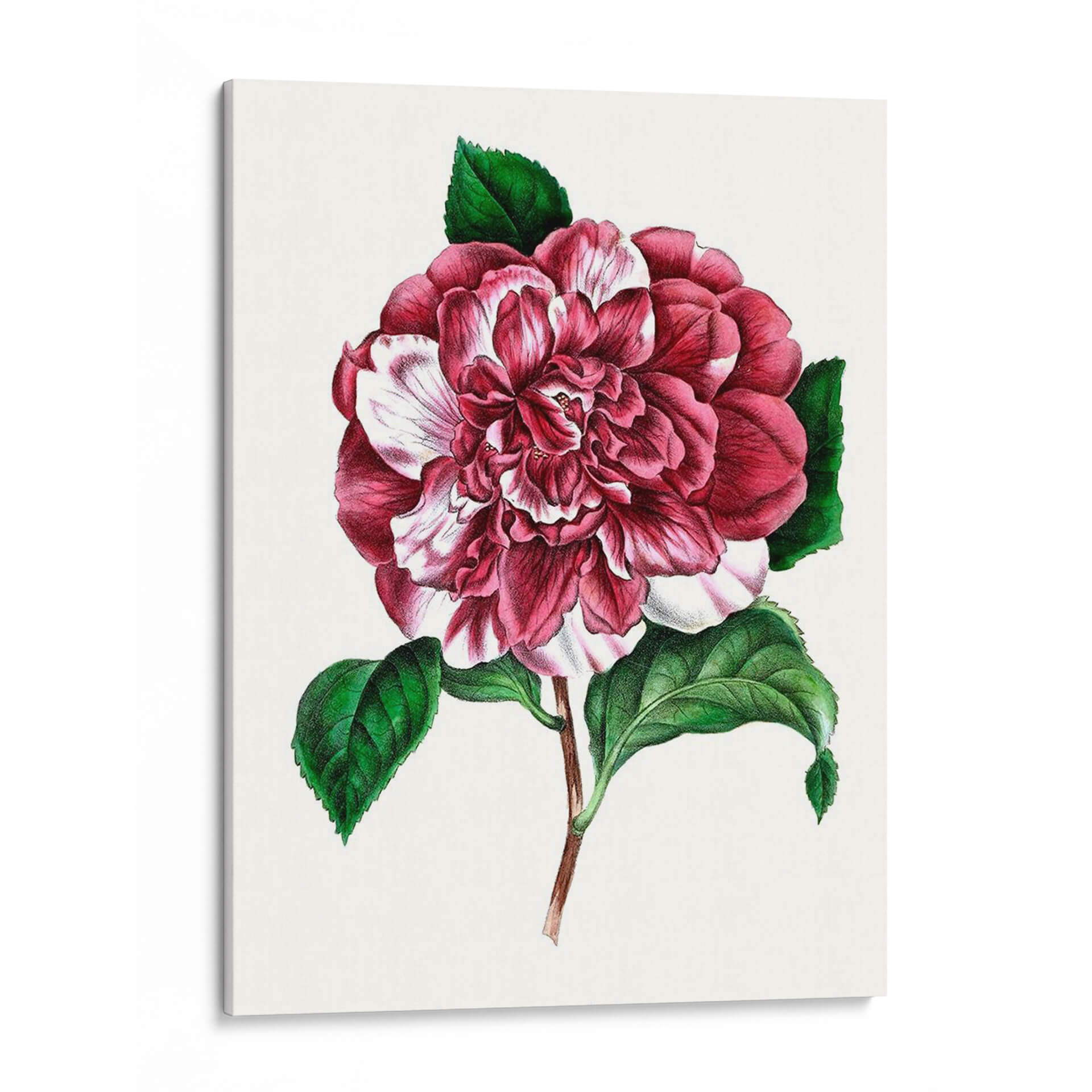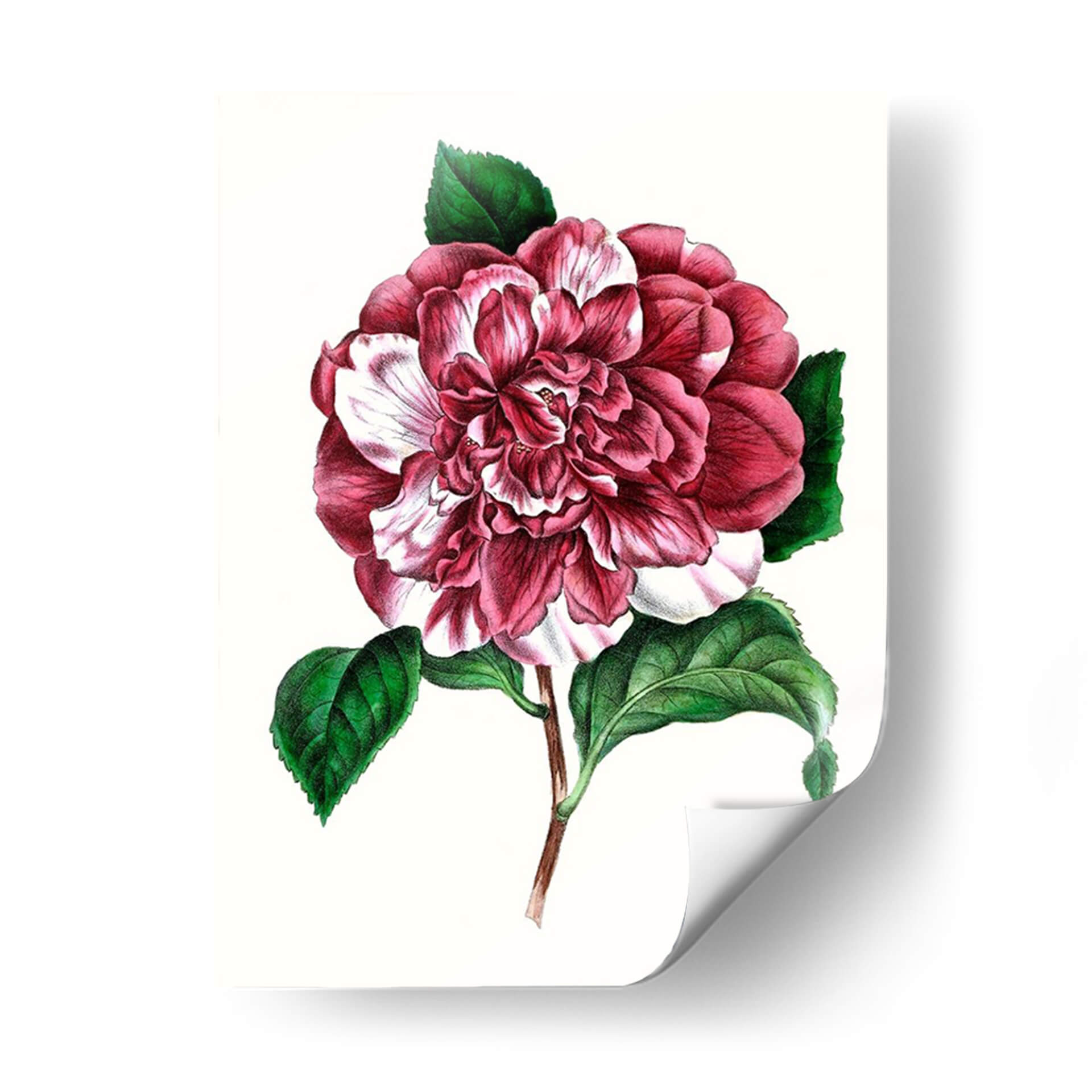 Embellece tu espacio con la exquisita obra de arte "Grand Blooms V", una representación detallada de una flor vibrante y exuberante. Este cuadro decorativo captura la delicadeza de los pétalos en tonos de rosa intenso y blanco, creando un contraste cautivador que aporta vida y sofisticación a cualquier habitación. Los vibrantes tonos verdes de las hojas complementan perfectamente la flor principal, añadiendo una sensación de frescura y vitalidad natural. Su estilo, que evoca las ilustraciones botánicas clásicas pero con un toque contemporáneo, lo convierte en una pieza versátil, ideal para añadir un acento de color y elegancia a salones modernos, dormitorios serenos u oficinas inspiradoras. La composición centrada y detallada de la flor atrae la mirada, invitando a la contemplación y añadiendo un toque de belleza atemporal a tu decoración. "Grand Blooms V" es más que un simple cuadro; es una ventana a la belleza de la naturaleza, perfecta para quienes buscan arte que evoque calma, alegría y una conexión con la estética floral. Descubre cómo esta pieza puede transformar tu hogar o lugar de trabajo, aportando un punto focal de inigualable encanto y refinamiento.