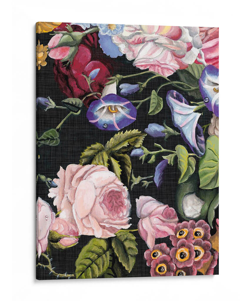 Sumérgete en la exuberancia botánica de "Grid Barrocal Vi" de Naomi McCavitt, una obra de arte que captura la esencia de un jardín barroco en plena floración. Este cuadro decorativo presenta una rica composición de flores detalladas, donde las rosas pálidas y suaves contrastan con la intensidad de las campánulas azules y púrpuras, y las vibrantes anotaciones de color de otras especies florales y follaje verde exuberante. El fondo oscuro y texturizado, reminiscent de un tapiz antiguo, realza la tridimensionalidad y la riqueza de los pétalos y hojas, creando un efecto casi escultórico. La paleta de colores, dominada por rosas, azules profundos, púrpuras y verdes intensos, evoca una atmósfera de opulencia y misterio, con toques de luz que dan vida a cada elemento floral. "Grid Barrocal Vi" es una pieza que fusiona la delicadeza de la naturaleza con la grandiosidad del estilo barroco, ideal para añadir un toque de sofisticación y profundidad a cualquier sala de estar, comedor o estudio. Su intrincado detalle y su profunda paleta cromática lo convierten en un punto focal cautivador, perfecto para aquellos que buscan infundir sus espacios con belleza clásica y un aire de romance atemporal. Deja que esta obra maestra floral transforme tu hogar en una galería personal llena de vida y elegancia.