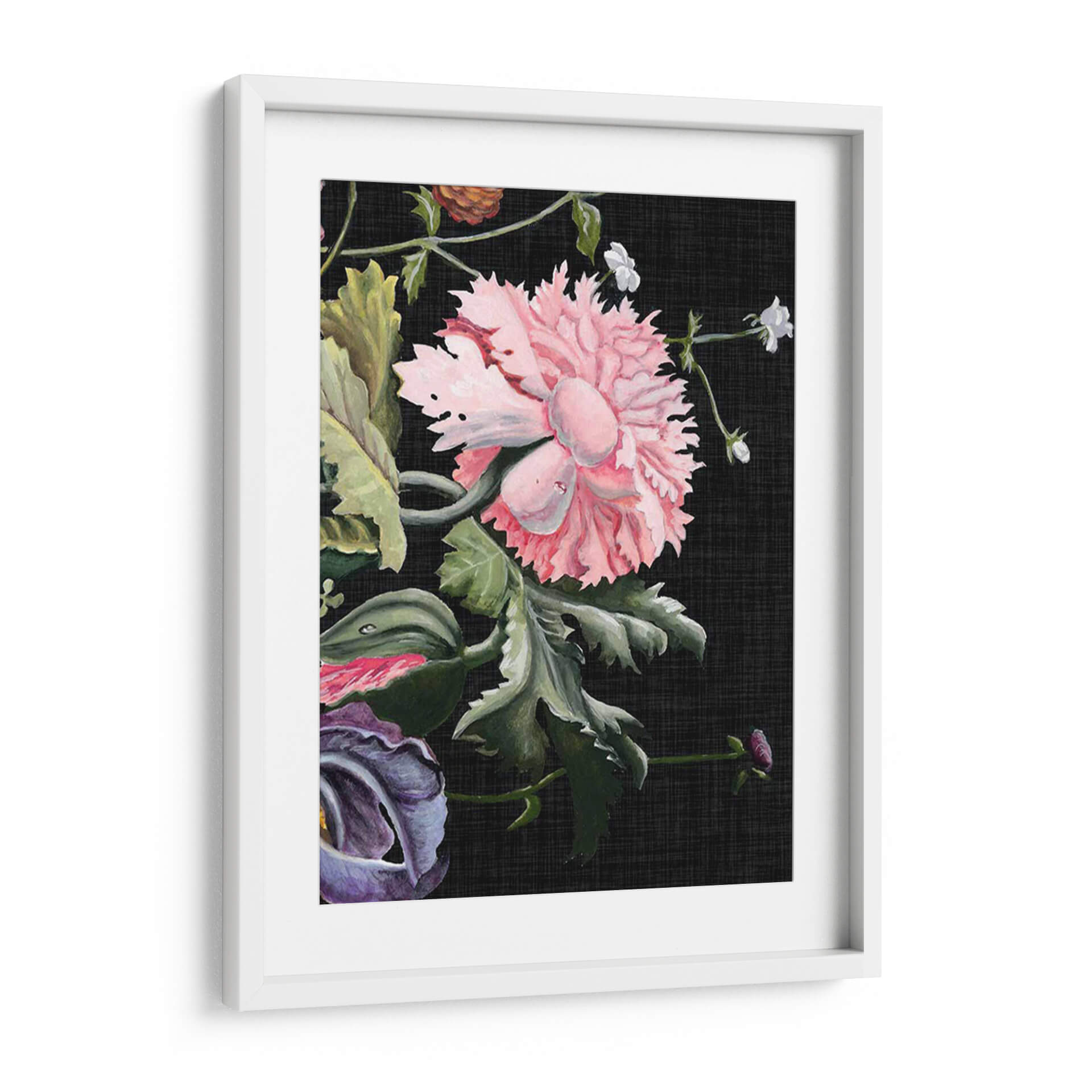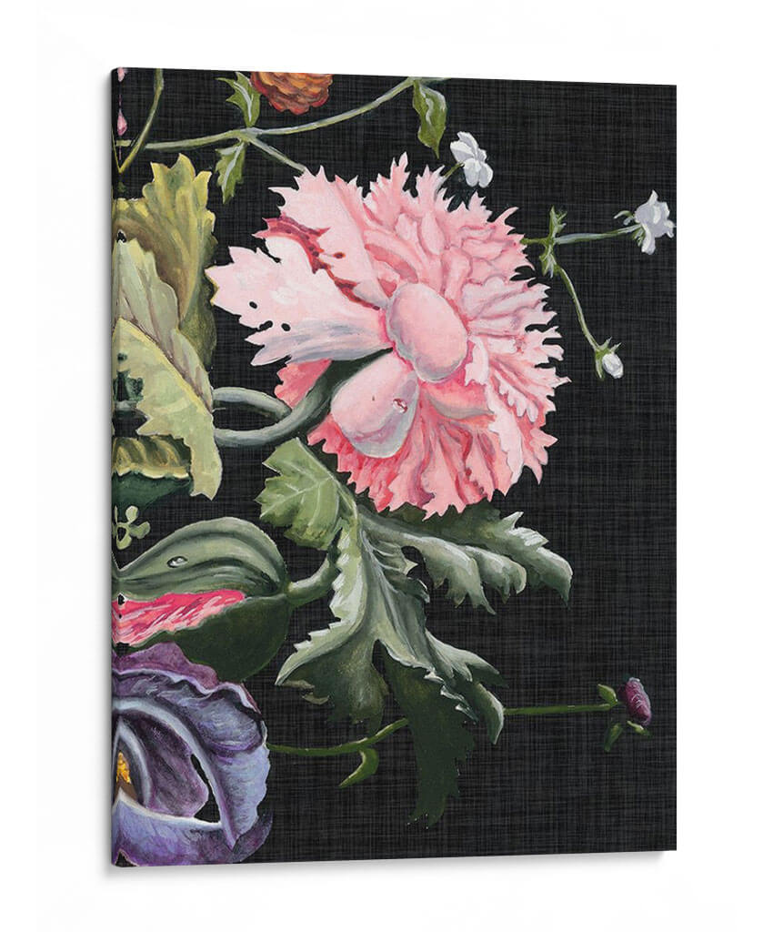 Sumérgete en la opulencia floral con 'Grid Barroco Viii', una obra de Naomi McCavitt que reinterpreta la suntuosidad de los bodegones clásicos a través de una lente contemporánea. Este cuadro decorativo presenta un vibrante ramo de flores, dominado por un majestuoso clavel rosa y complementado por capullos morados y detalles delicados en blanco, todo ello sobre un fondo oscuro y texturizado que evoca la elegancia de los tapices antiguos. La detallada pincelada y la rica paleta de colores, que van desde los suaves rosas y púrpuras hasta los verdes profundos de las hojas, crean una atmósfera de lujo y sofisticación. La composición, que recuerda a los arreglos florales del barroco, aporta un toque de drama y romance a cualquier espacio. Ideal para salones, comedores o estudios que buscan un punto focal audaz y lleno de vida, 'Grid Barroco Viii' es una pieza que habla de belleza atemporal y de la maestría del artista. Transforma tu hogar en una galería personal con esta exquisita representación de la naturaleza, un lienzo que invita a la contemplación y al deleite visual.