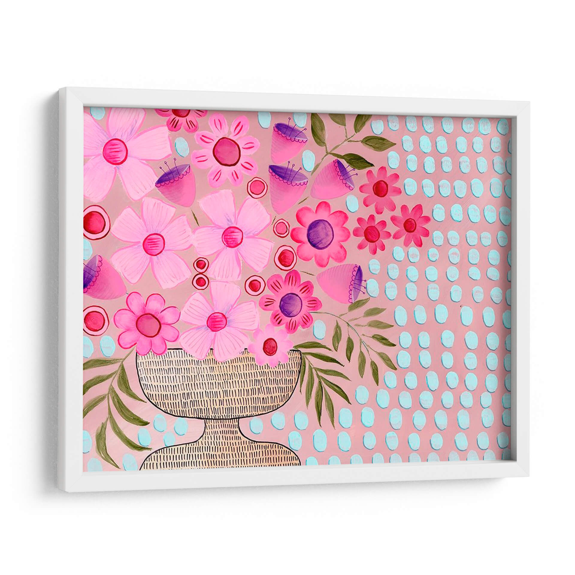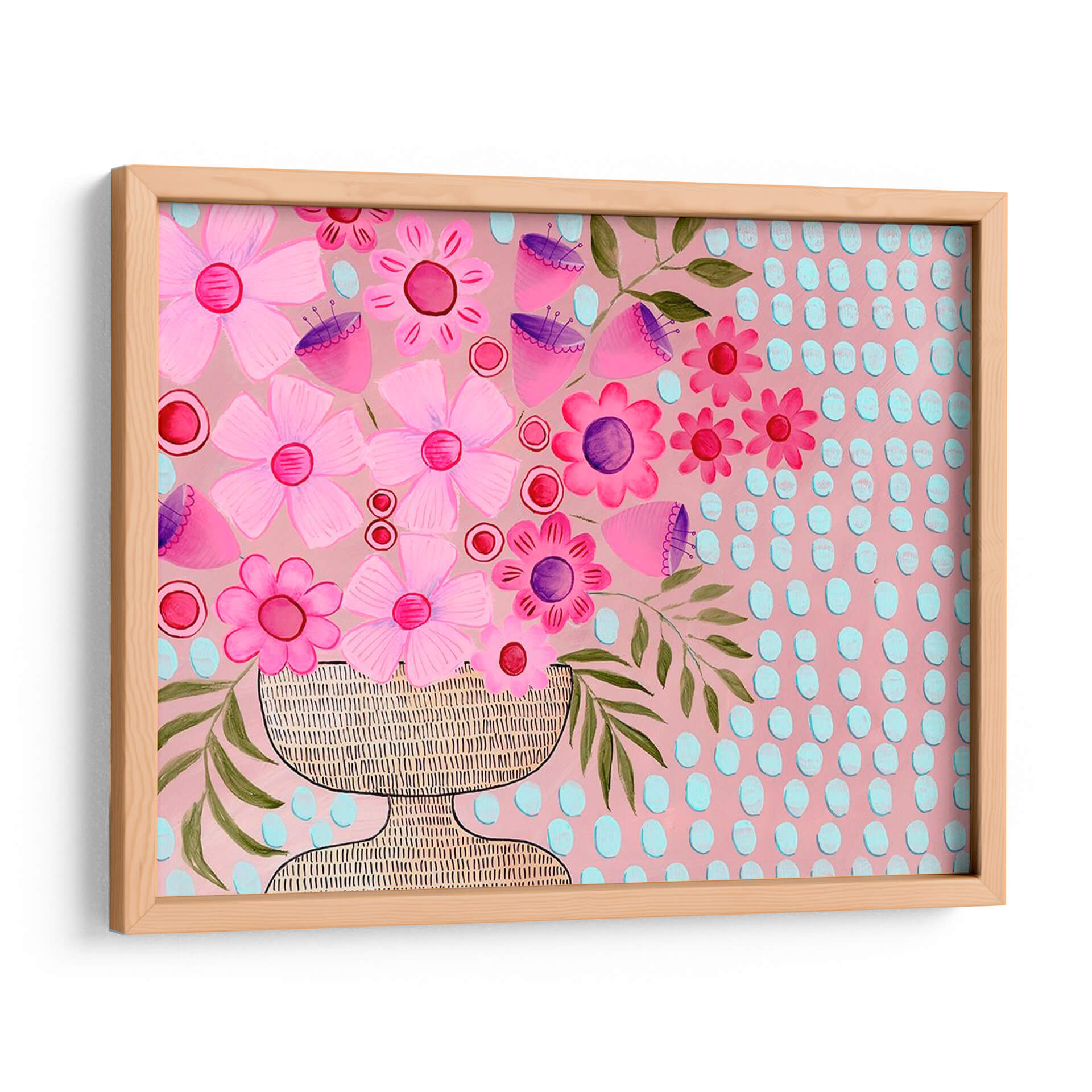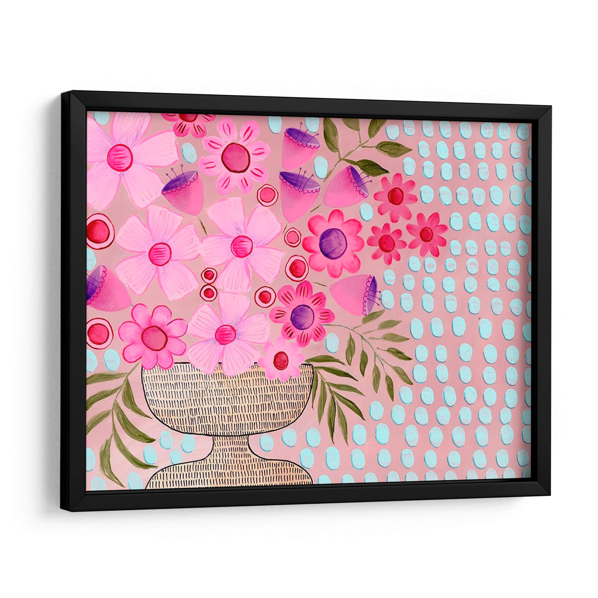 Sumérgete en la vibrante alegría de "Griego Rosa Floral I" de Regina Moore, una obra de arte que celebra la belleza de la naturaleza con un toque contemporáneo. Este cuadro decorativo presenta un arreglo floral exuberante en tonos rosas y fucsias, desbordando de un jarrón estilizado con un patrón de tejido intrincado. Las flores, representadas con trazos audaces y formas sencillas, irradian energía y vitalidad. El fondo, de un suave tono rosado, se complementa con un patrón de puntos celestes dispersos que añaden un elemento lúdico y moderno a la composición. Las hojas verdes y los acentos púrpuras en algunas flores aportan profundidad y contraste, creando una armonía visual cautivadora. La obra evoca una sensación de optimismo y frescura, perfecta para infundir vida y color en cualquier espacio. Ideal para salas de estar modernas, dormitorios acogedores o incluso como un punto focal alegre en una oficina, este cuadro decorativo es una invitación a disfrutar de la belleza efímera de las flores a través de la visión única de Regina Moore. Su estilo distintivo y su paleta de colores vibrantes la convierten en una pieza excepcional para añadir un toque de arte contemporáneo y personalidad a tu hogar.