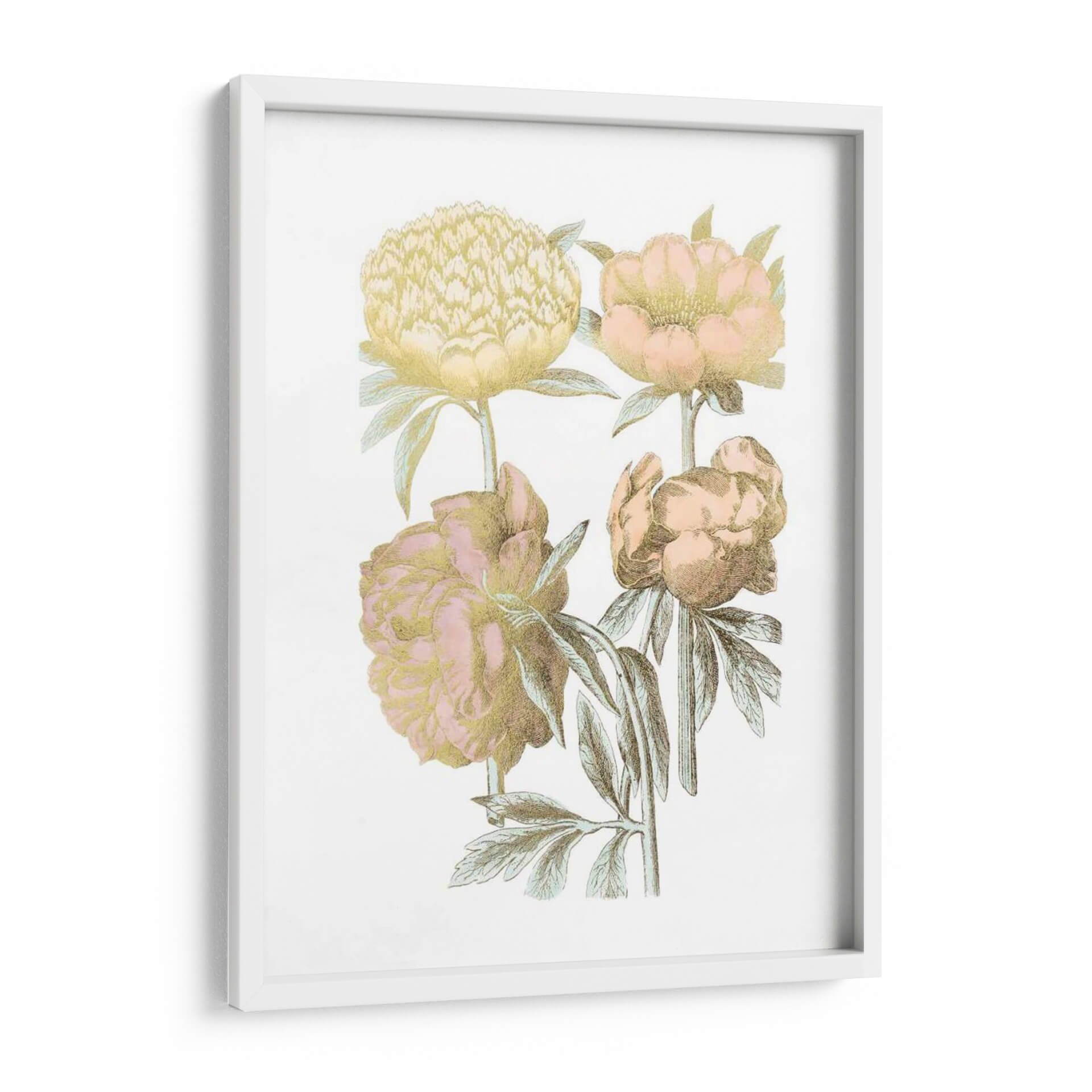 Transforma tu espacio con la delicadeza y el encanto de "Hoja De Oro Chintz Ii", una obra de arte que evoca la belleza atemporal de la naturaleza. Este cuadro decorativo presenta una composición exquisita de flores, destacando la opulencia de los peonías en tonos pastel y dorados. La paleta de colores suaves, con toques de rosa pálido, amarillo dorado y verde apagado, crea una atmósfera de serenidad y sofisticación. El estilo, que recuerda a las ilustraciones botánicas clásicas pero con un toque contemporáneo, aporta un aire de elegancia sutil a cualquier ambiente. La detallada representación de los pétalos y las hojas, junto con el sutil brillo del oro, añade una dimensión de lujo discreto. Ideal para quienes buscan infundir calma y un toque de refinamiento en su hogar u oficina, este cuadro es perfecto para salones, dormitorios o estudios donde se desee crear un punto focal de belleza natural. Su diseño versátil se adapta a una variedad de estilos decorativos, desde el clásico hasta el moderno, aportando siempre una nota de distinción y armonía. Descubre la magia de la botánica de lujo con esta pieza única.
