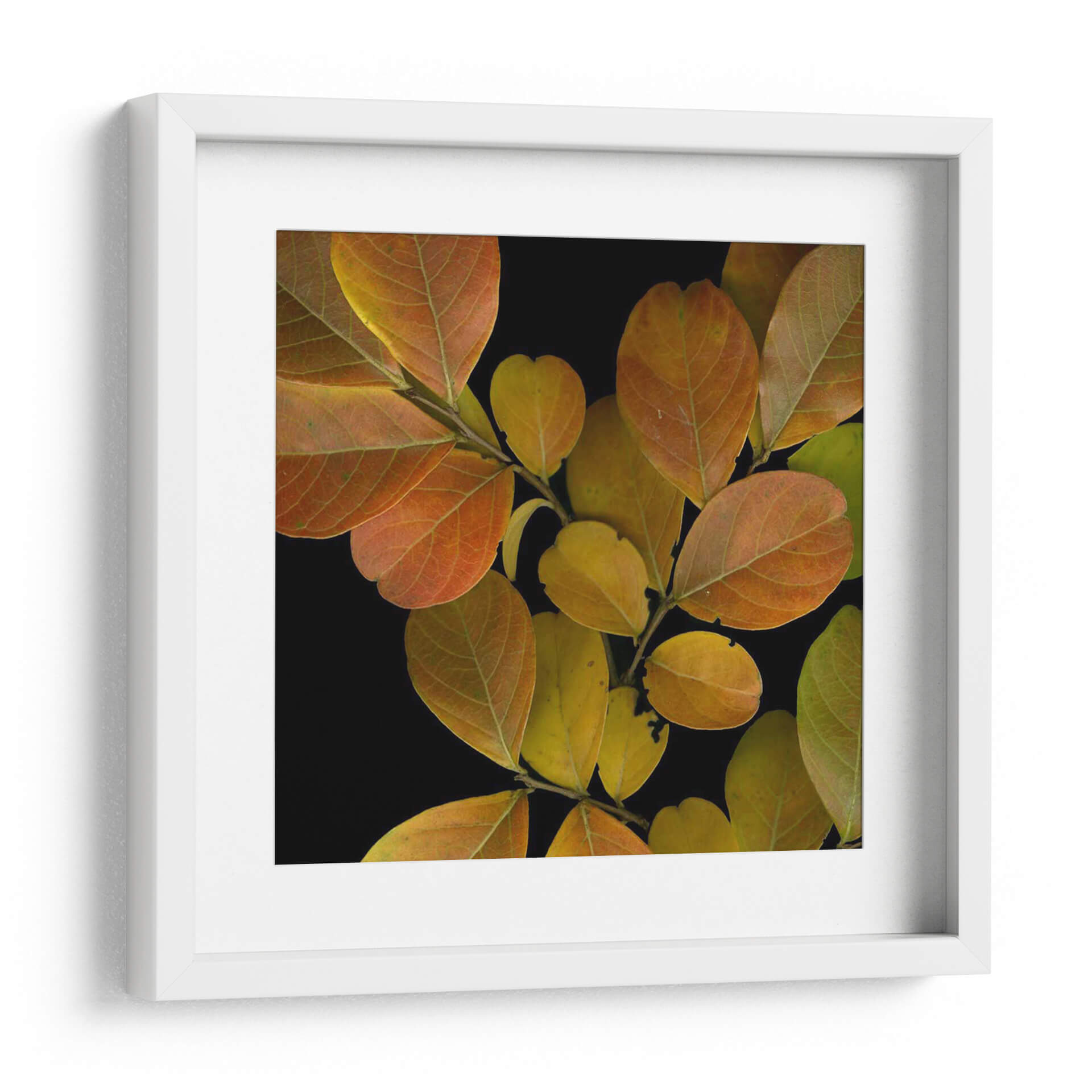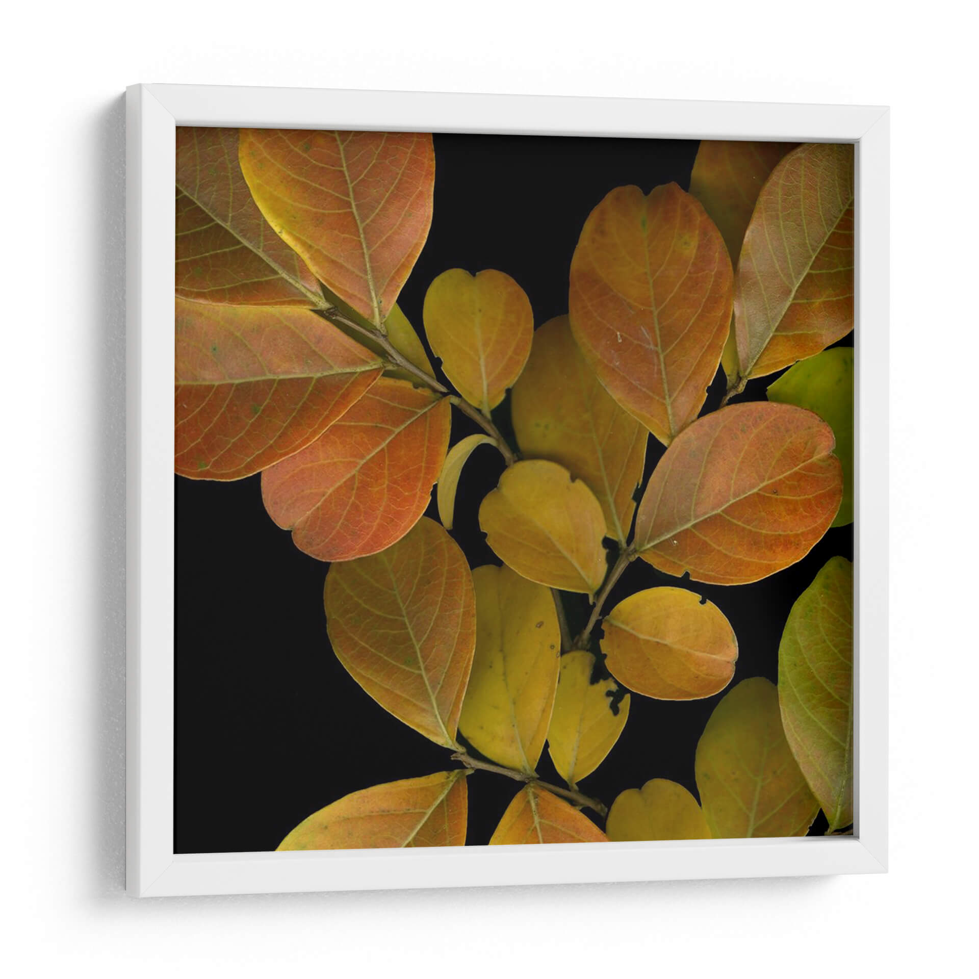 Sumérgete en la belleza otoñal con 'Hojas Vívidas I', una obra de arte que captura la esencia efímera de la naturaleza. Este cuadro decorativo presenta un primer plano detallado de hojas en transición, luciendo una paleta de colores que va desde el dorado cálido hasta el naranja cobrizo, con sutiles toques de verde. El contraste dramático con el fondo negro profundo resalta la textura y las venas de cada hoja, creando una sensación de intimidad y admiración. La composición, centrada en la delicadeza de la rama y la vibrante gama cromática, evoca una atmósfera de serenidad y reflexión, invitando a la contemplación. Ideal para añadir un toque de elegancia natural y calidez a cualquier espacio, desde una sala de estar moderna hasta un rincón acogedor en tu oficina. 'Hojas Vívidas I' no es solo una pieza decorativa, es una ventana a la belleza sutil del mundo natural, perfecta para quienes buscan arte que conecte con la tranquilidad y la estética contemporánea.