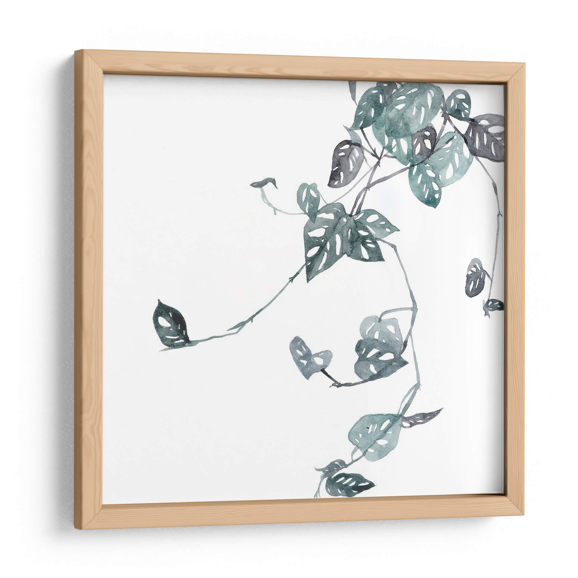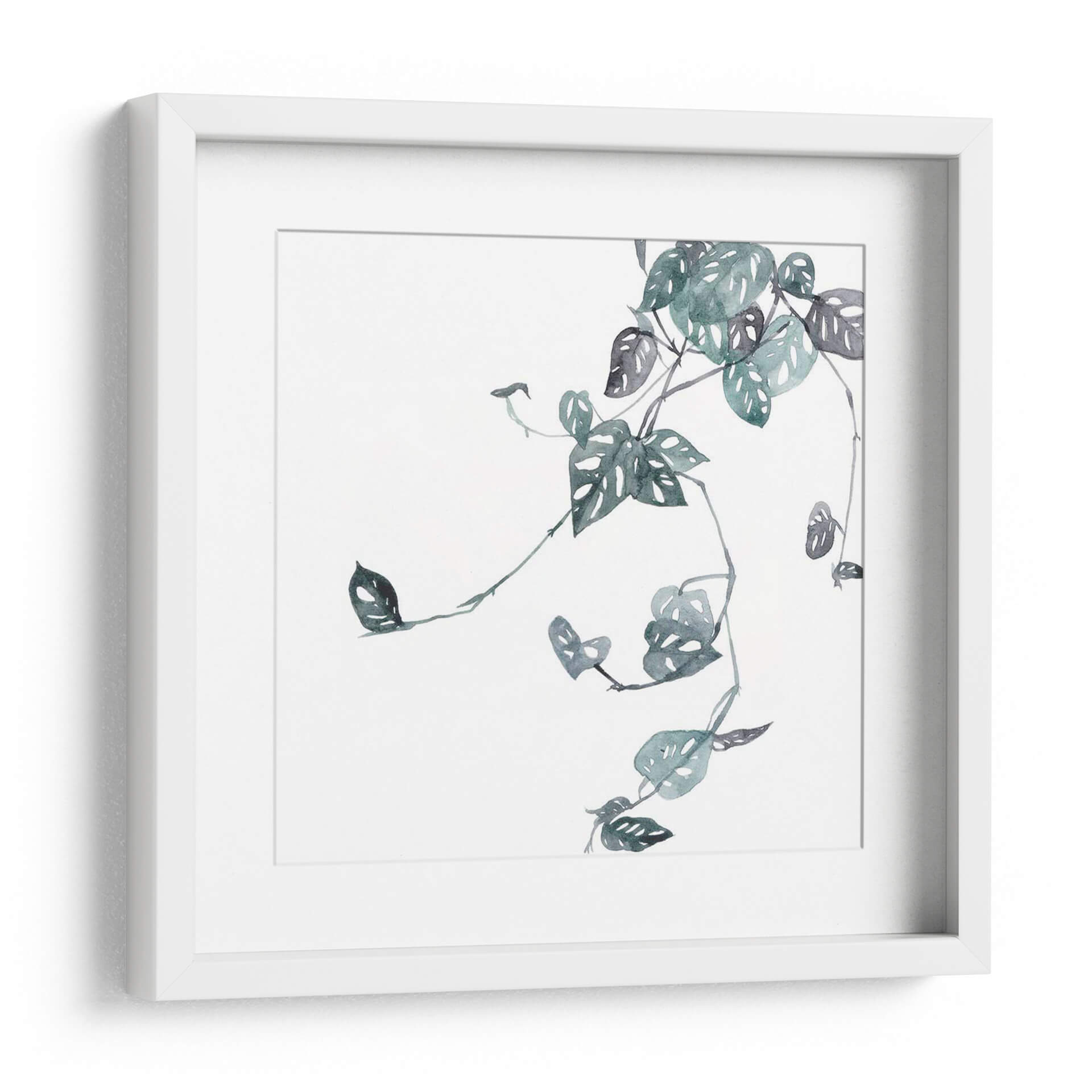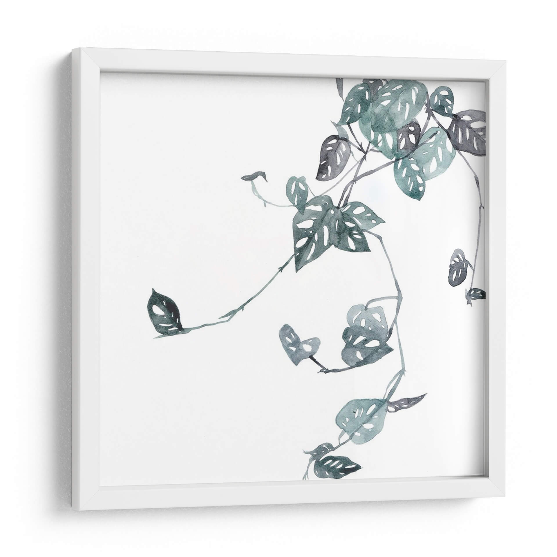 Sumérgete en la delicadeza botánica con "Imperfección IV", una obra de arte contemporáneo que captura la esencia de la naturaleza con una elegancia sutil. Esta pieza, creada por la talentosa Melissa Wang, presenta una intrincada representación de hojas de monstera, capturadas en una paleta de tonos verde azulado y grises suaves que evocan calma y serenidad. La técnica acuarelada, con sus trazos fluidos y la transparencia del color, confiere a la composición una ligereza etérea, permitiendo que las formas orgánicas se entrelacen en un delicado equilibrio sobre un fondo blanco puro. El título, "Imperfección IV", invita a la reflexión sobre la belleza inherente a las irregularidades y las peculiaridades de la vida vegetal, añadiendo una capa conceptual a la apreciación visual. Este cuadro decorativo es ideal para infundir un toque de naturaleza y tranquilidad en cualquier espacio, ya sea una sala de estar moderna, un dormitorio acogedor o una oficina serena. Su estilo minimalista y su enfoque en la forma natural lo convierten en una adición versátil para decoraciones contemporáneas, escandinavas o bohemias, aportando un elemento de sofisticación orgánica que transforma tu hogar en un santuario de paz y estilo.