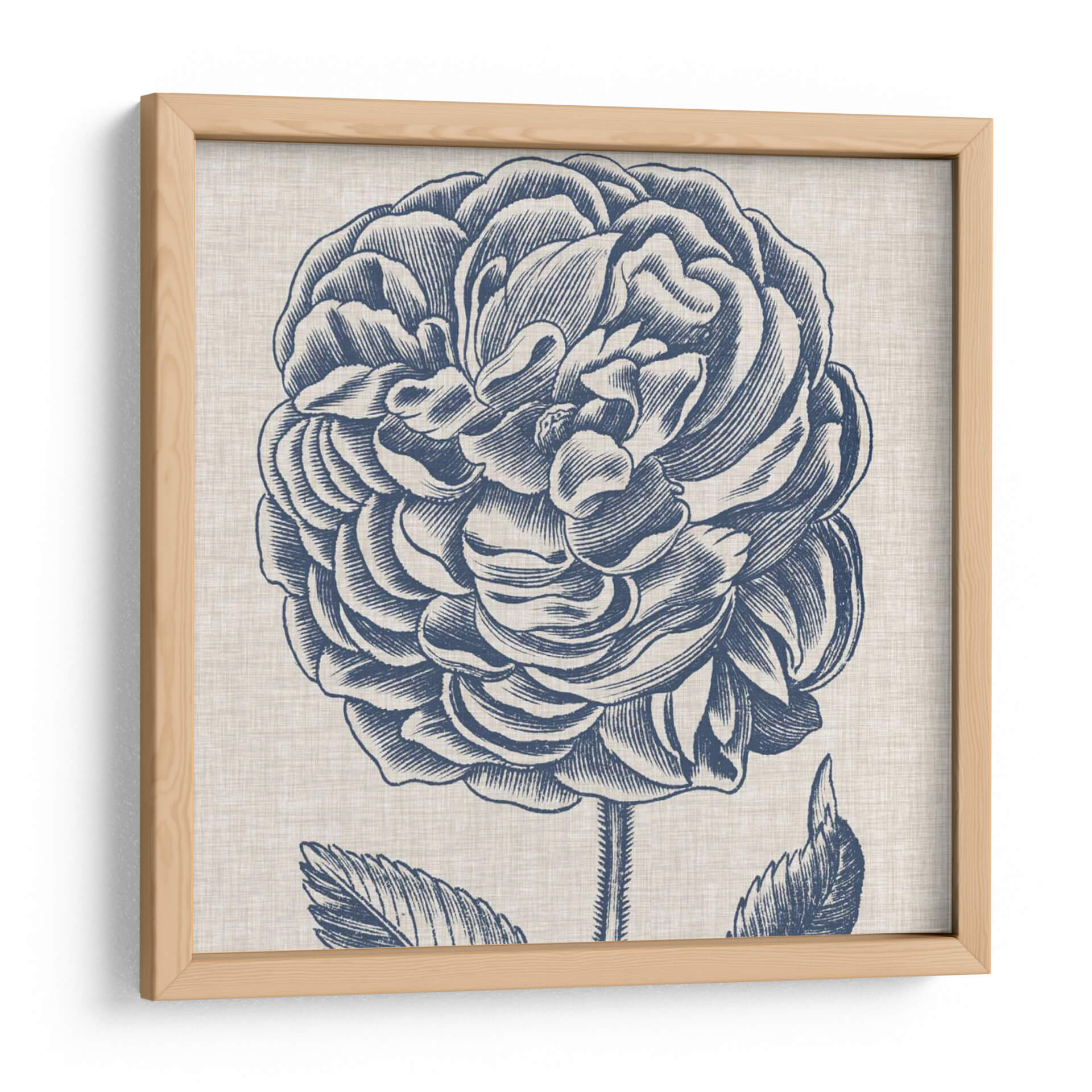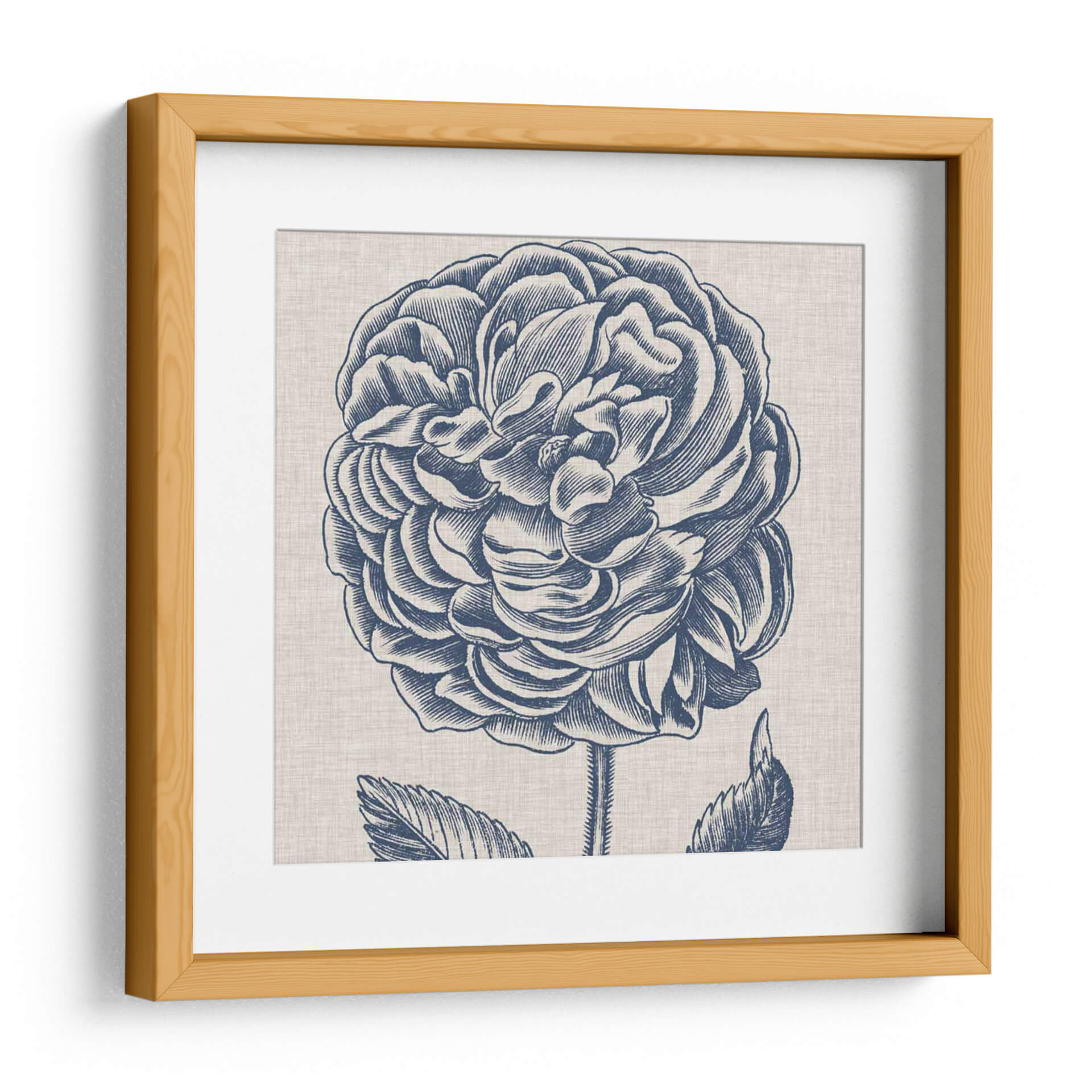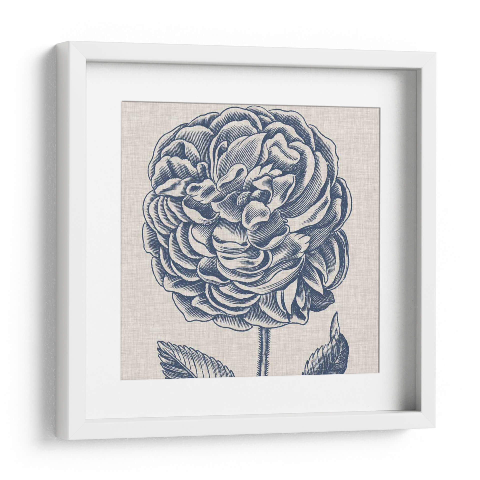 Sumérgete en la elegancia atemporal de 'Indigo Floral En Lino V', una obra de arte que captura la belleza intrincada de una flor en plena floración. Este cuadro decorativo, con su detallado grabado en azul índigo sobre un fondo texturizado que evoca el lino natural, aporta un toque de sofisticación clásica a cualquier espacio. La composición centrada en la exuberante flor, con sus pétalos meticulosamente delineados, crea un punto focal cautivador que invita a la contemplación. Los tonos profundos de azul combinados con el neutro lienzo logran un equilibrio visual armonioso, ideal para complementar una decoración serena o para añadir un acento de color sutil pero impactante. Perfecto para salas de estar, dormitorios o incluso estudios, este diseño de Vision Studio transformará tu pared en una galería personal, transmitiendo una sensación de calma y belleza natural. Añade esta pieza a tu colección y disfruta de la delicadeza de la naturaleza reinterpretada con un estilo artístico refinado, creando un ambiente de paz y elegancia en tu hogar u oficina.