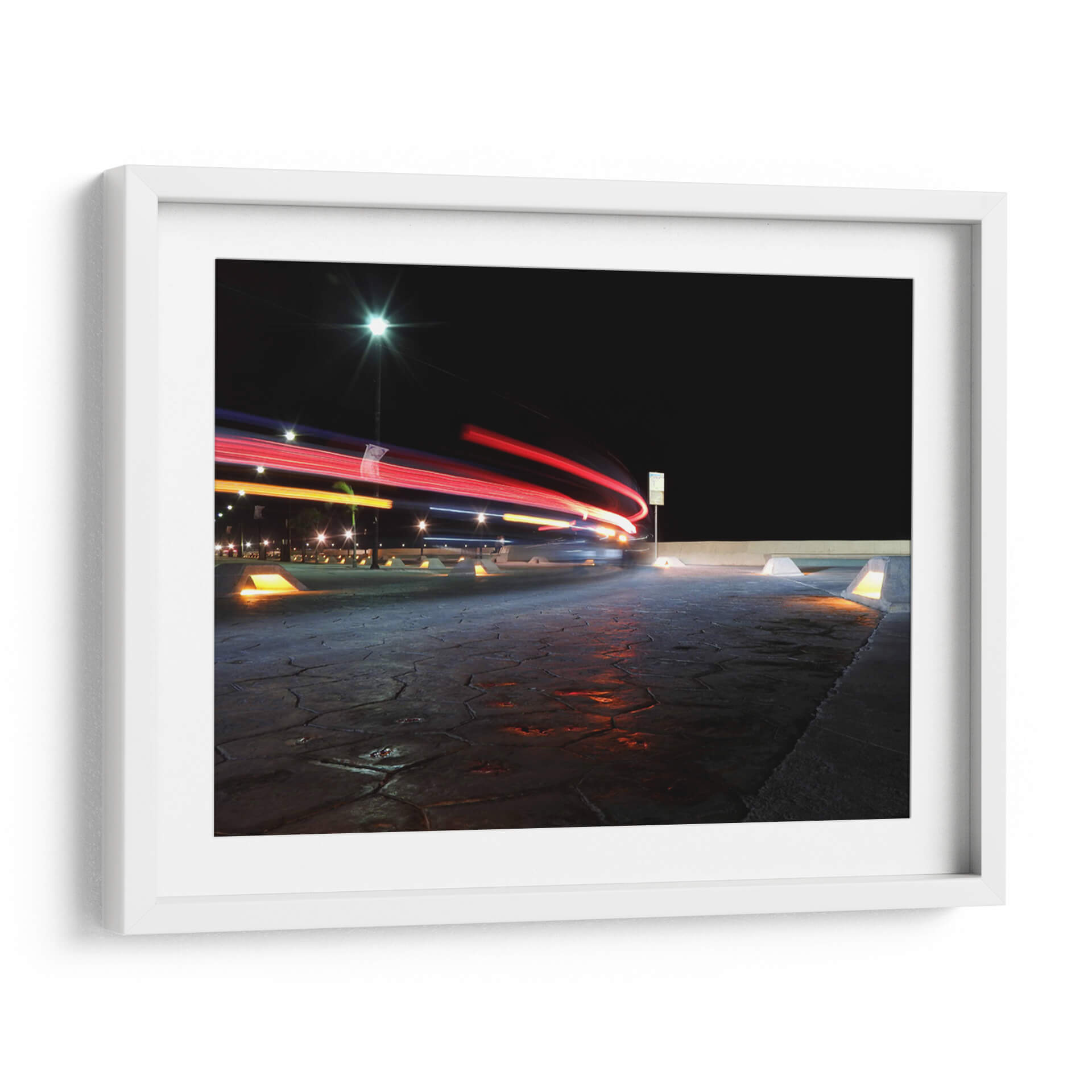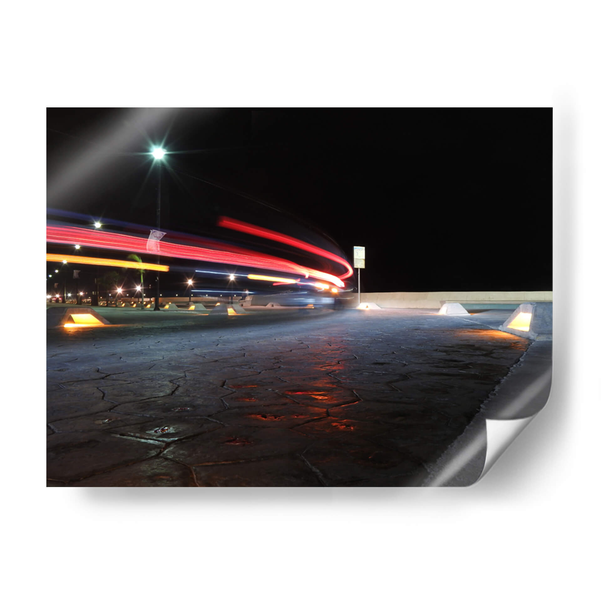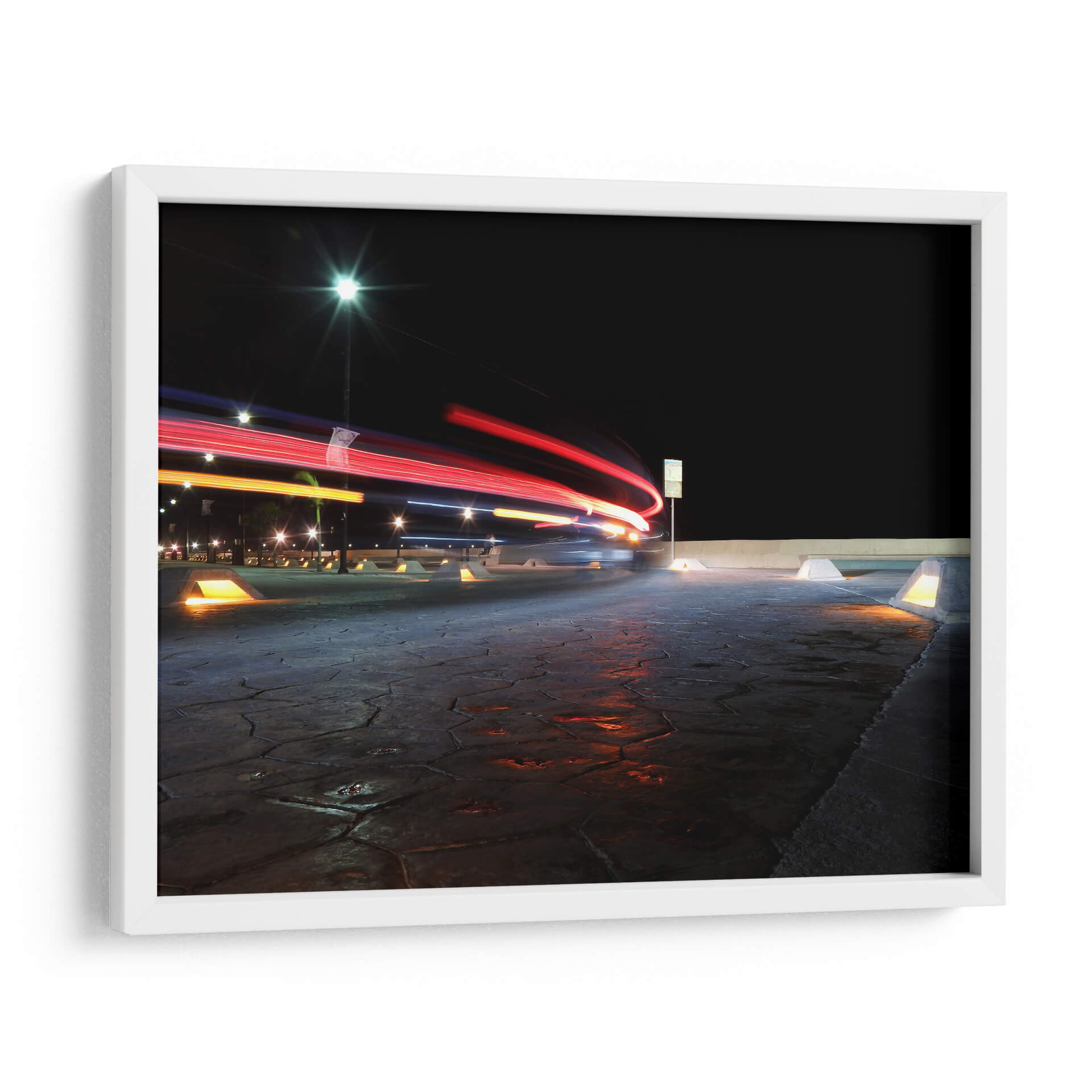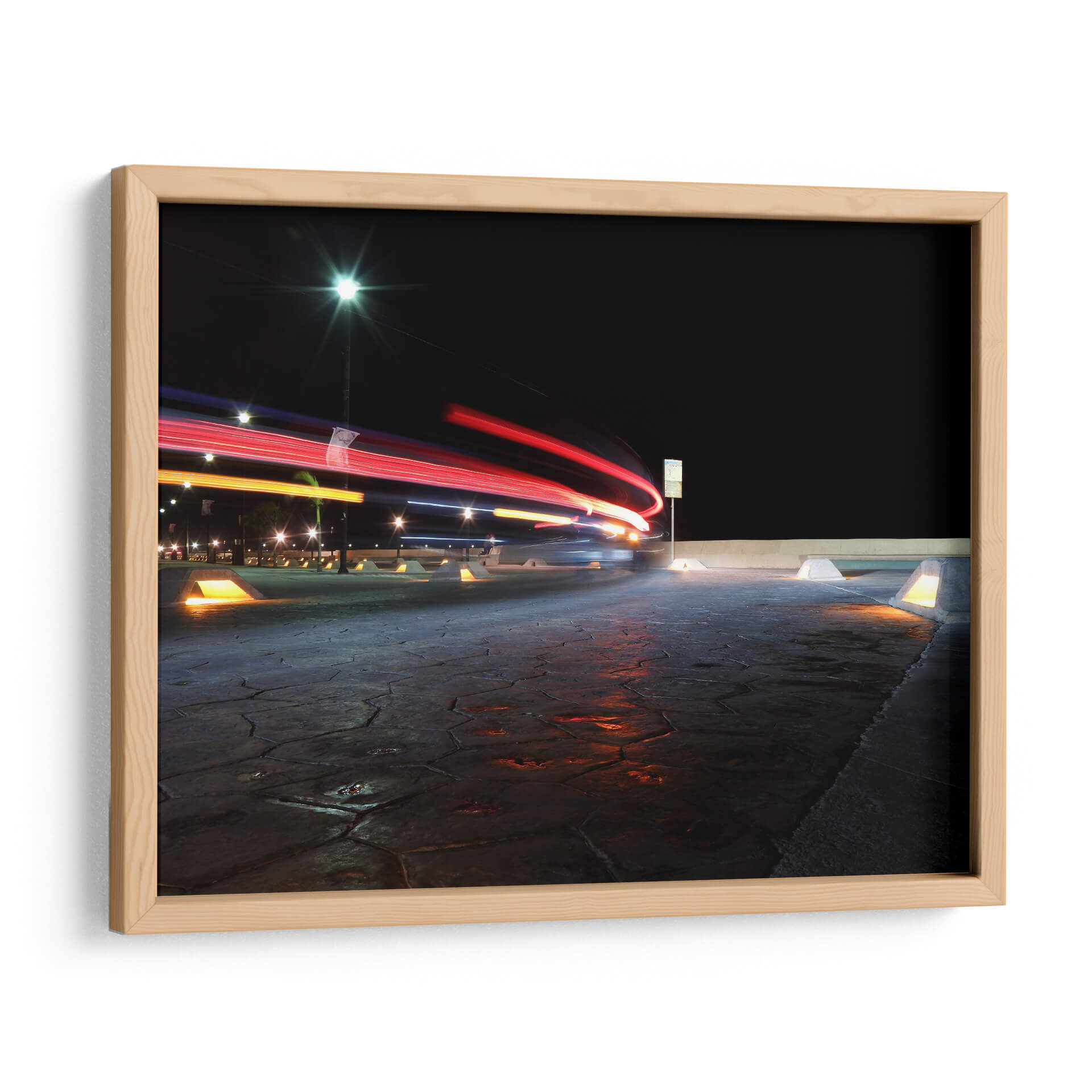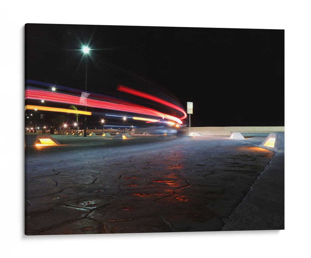 Captura la esencia dinámica de la noche urbana con "Instante", una obra de arte que transforma el movimiento en pura energía visual. Este cuadro decorativo presenta un juego cautivador de luces de vehículos capturadas con larga exposición, creando estelas de color rojo y naranja que se deslizan sobre un fondo de cielo nocturno profundo y texturizado. La iluminación artificial, con sus destellos fríos y cálidos, se refleja en el pavimento detallado, dotando a la escena de una profundidad y un realismo impactantes. El estilo fotográfico, con un enfoque en el rastro de luz, evoca una sensación de velocidad, de momentos fugaces y de la vitalidad de la ciudad en plena actividad. "Instante" es ideal para espacios que buscan un toque moderno y enérgico, como una sala de estar contemporánea, un estudio o una oficina. Transforma tu pared en una ventana a la poesía de la noche, donde la tecnología y la estética se fusionan para crear una atmósfera vibrante y llena de misterio. Una pieza que invita a la reflexión sobre el tiempo y el movimiento en nuestro entorno.