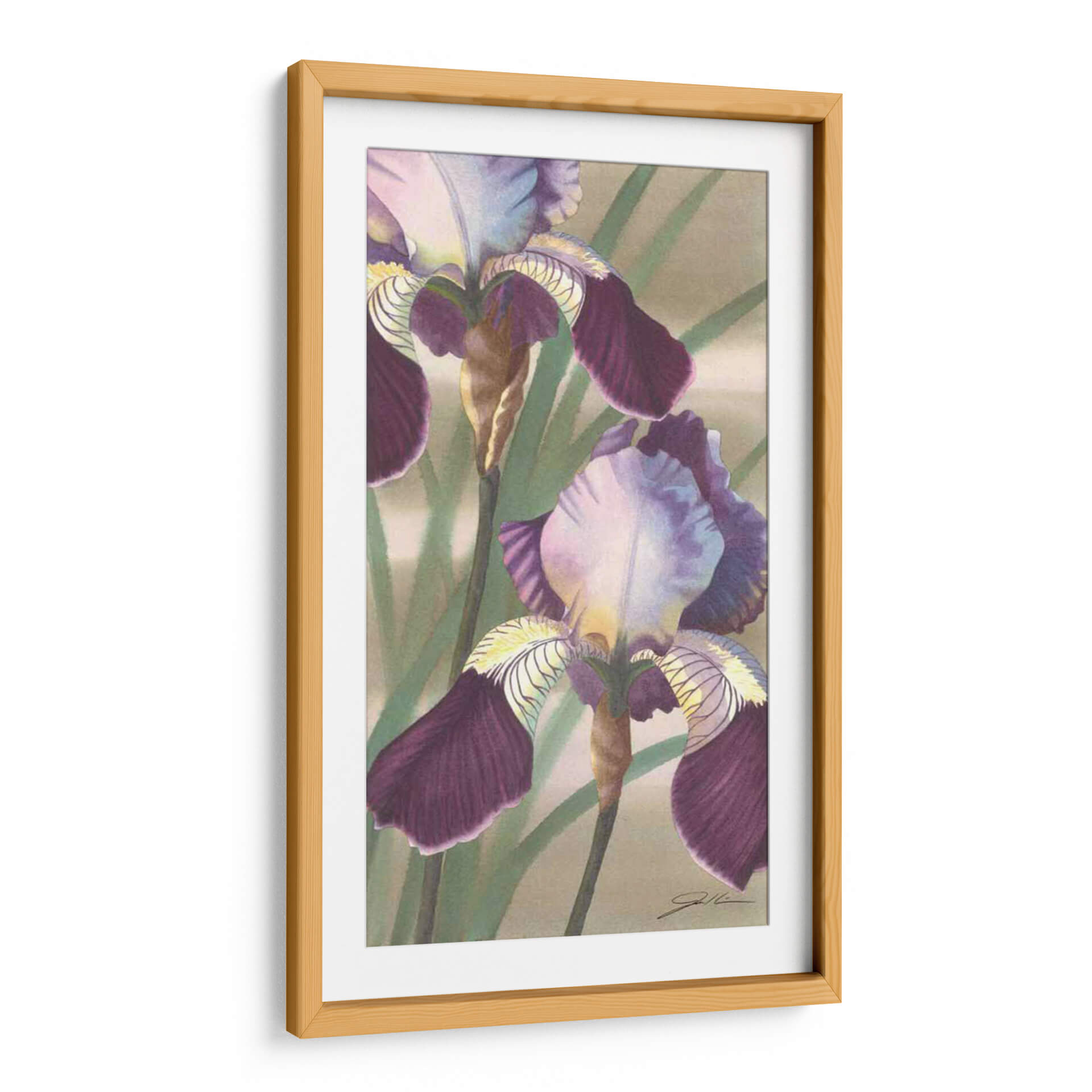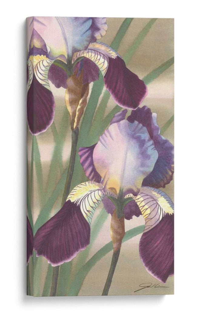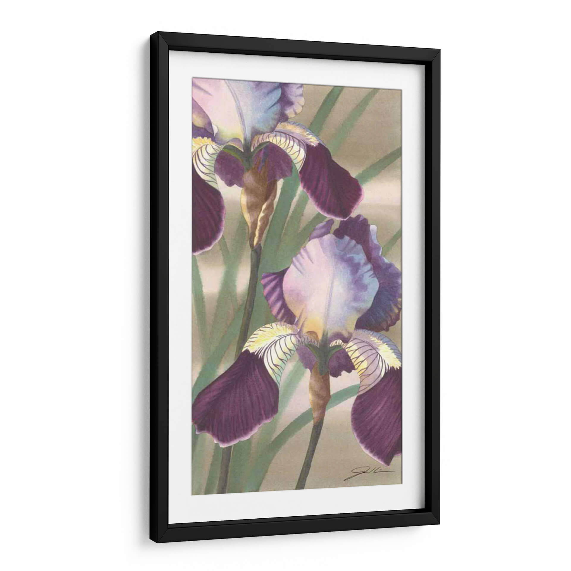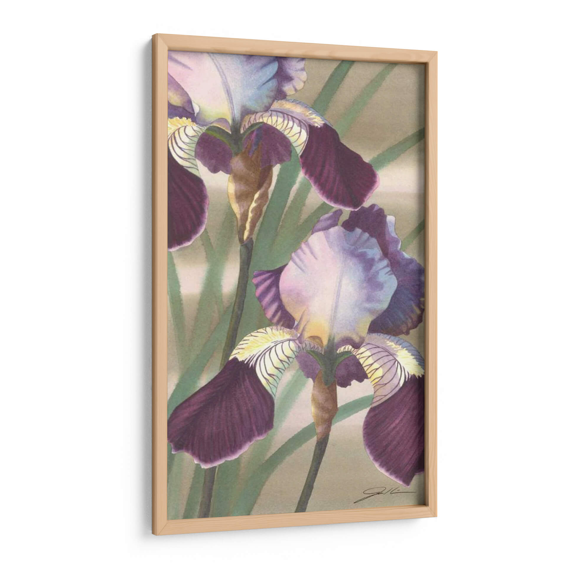 Sumérgete en la delicada belleza de 'Iris Asiático II', una obra de arte que captura la elegancia de estas flores icónicas con una paleta de colores sofisticada y detalles exquisitos. Este cuadro decorativo, inspirado en la sutileza de la acuarela, presenta dos iris en tonos profundos de púrpura y violeta, contrastando con delicados matices de blanco, amarillo y azul en sus pétalos. Las hojas verdes, representadas con trazos suaves, crean un fondo sutil que realza la majestuosidad de las flores. La composición vertical y el enfoque en la forma intrincada de los iris invitan a la contemplación, transmitiendo una sensación de calma, serenidad y admiración por la naturaleza. Ideal para quienes buscan añadir un toque de refinamiento y color a su hogar u oficina, este lienzo es perfecto para espacios que buscan un punto focal natural y elegante. Su estilo se adapta a decoraciones clásicas, contemporáneas o eclécticas, aportando una atmósfera de paz y belleza atemporal. Descubre la poesía visual de Jason Higby y transforma tu ambiente con esta pieza floral excepcional.