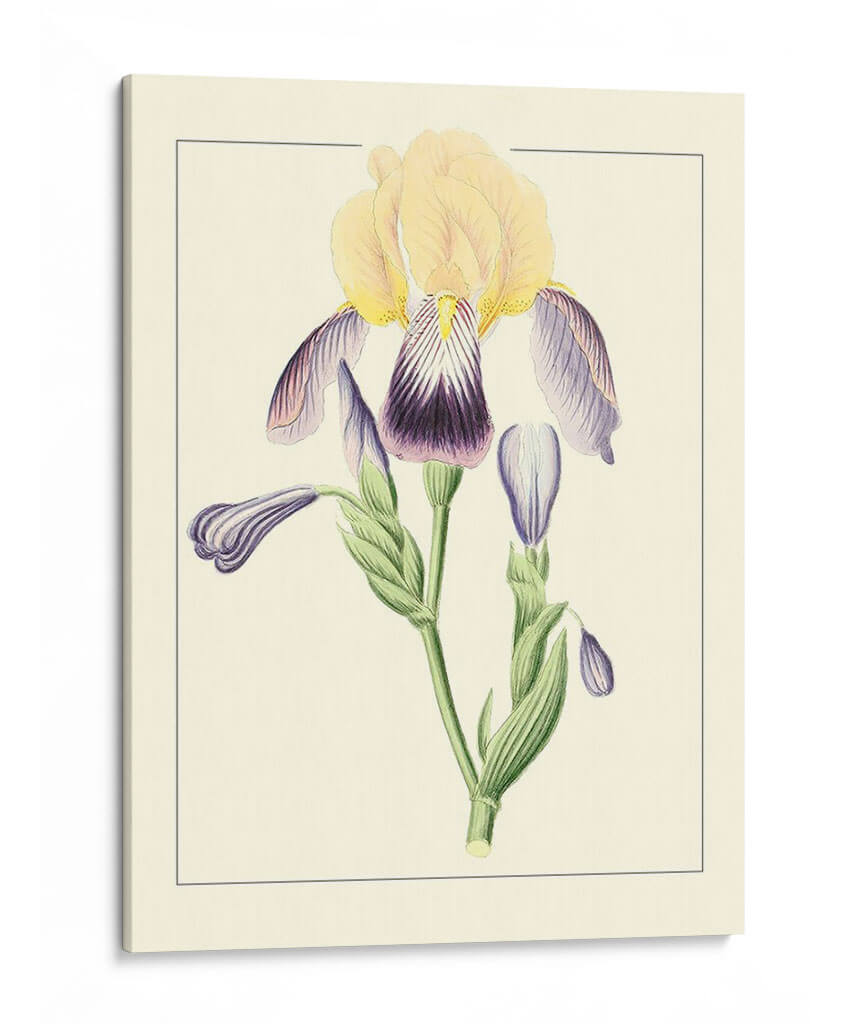 Embellece tu espacio con la delicadeza botánica de 'Iris Purple II', una obra de arte que captura la elegancia atemporal de esta flor icónica. Este cuadro decorativo presenta una detallada ilustración de un iris en plena floración, destacando sus pétalos suaves en tonos amarillos y pálidos contrastados con vibrantes matices de púrpura y violeta en su centro. Las hojas verdes y el tallo robusto añaden un toque de realismo y vitalidad, creando una composición armoniosa que evoca serenidad y admiración por la naturaleza. El estilo, reminiscentes de ilustraciones botánicas clásicas, aporta un aire de sofisticación y un encanto vintage a cualquier habitación. Ideal para quienes buscan añadir un acento natural y refinado a su hogar u oficina, este cuadro es perfecto para salones, dormitorios o estudios, aportando un toque de color sutil pero impactante. Su paleta de colores suaves y detallado diseño lo convierten en una pieza versátil que complementa una amplia gama de estilos decorativos, desde el clásico hasta el contemporáneo, invitando a la contemplación y realzando la belleza de tu entorno con un toque de arte floral.