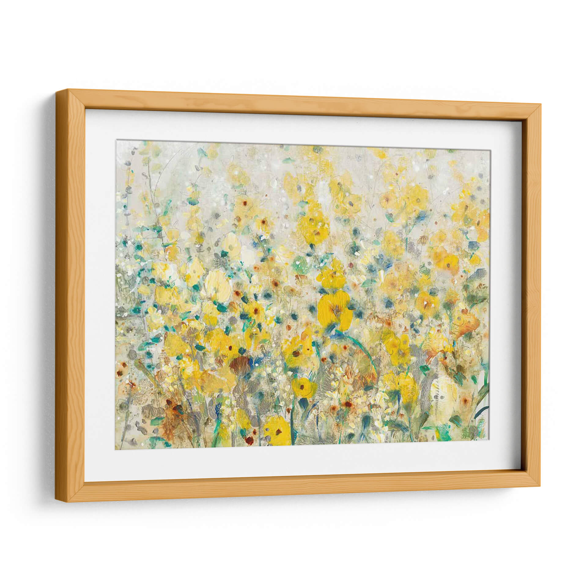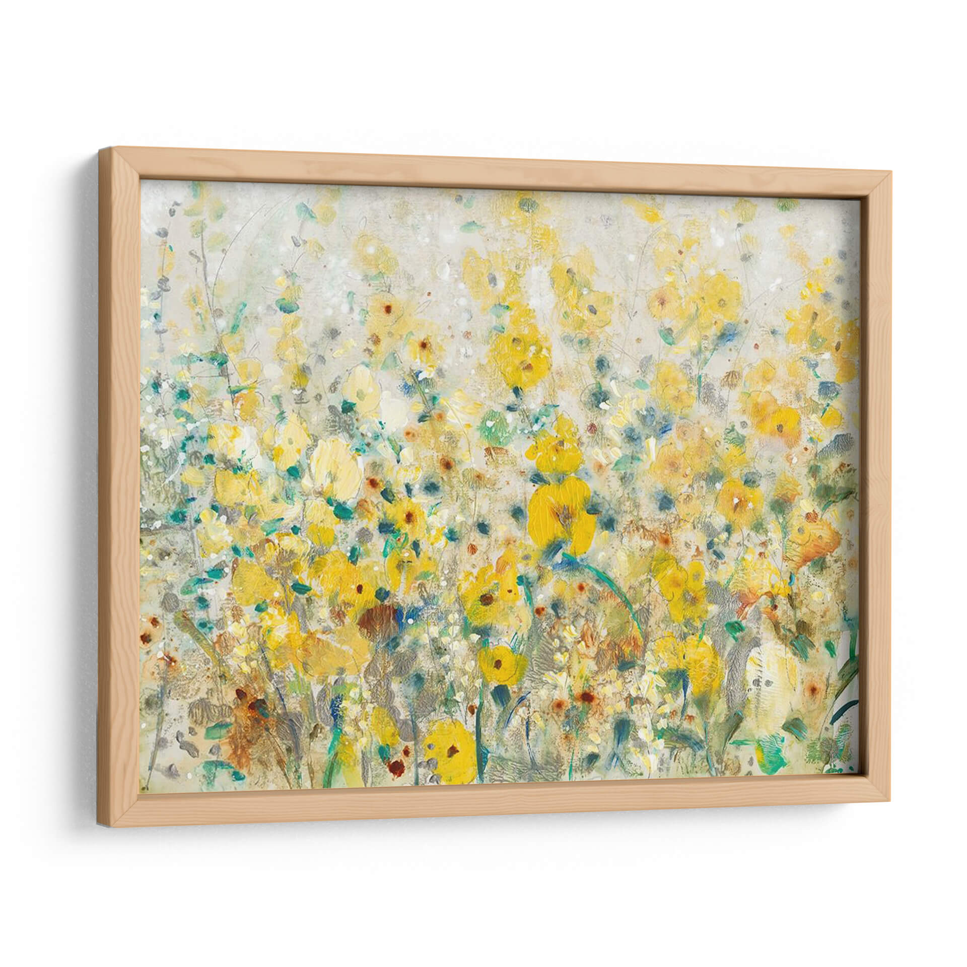 Sumérgete en la vibrante y alegre atmósfera de "Jardín Alegre II", una cautivadora obra de arte de Tim O'Toole que irradia positividad y belleza natural. Este cuadro decorativo presenta una exuberante composición floral, dominada por tonos amarillos brillantes y dorados que evocan la calidez del sol y la vitalidad de la primavera. Las pinceladas sueltas y texturizadas crean una sensación de movimiento y profundidad, invitando al espectador a perderse en un campo de flores pintado con un estilo que recuerda al impresionismo moderno, con toques de verde esmeralda y azul cobalto que añaden complejidad y frescura a la paleta. La obra transmite una profunda sensación de alegría y serenidad, convirtiéndola en una elección perfecta para quienes buscan infundir optimismo y luz en sus espacios. Imagina este vibrante cuadro decorativo como el punto focal de tu sala de estar, aportando una explosión de color y energía, o como un toque de naturaleza y tranquilidad en tu dormitorio o estudio. "Jardín Alegre II" es más que una simple decoración; es una invitación a celebrar la belleza efímera de la naturaleza y a llevar la luz del sol a tu hogar, creando un ambiente acogedor y lleno de vida.