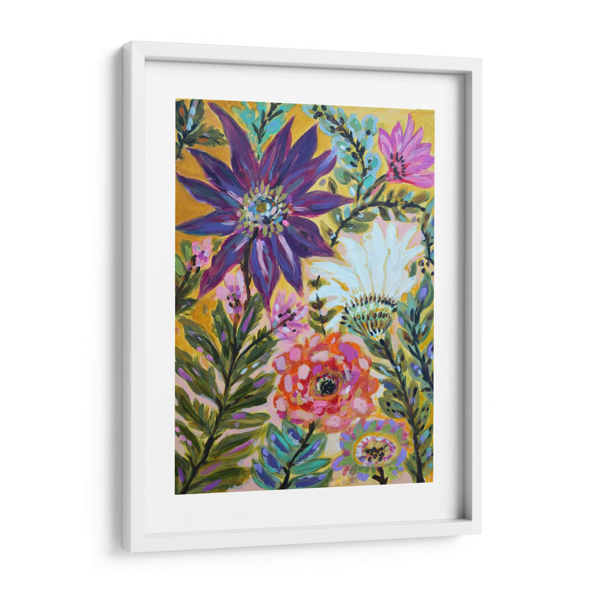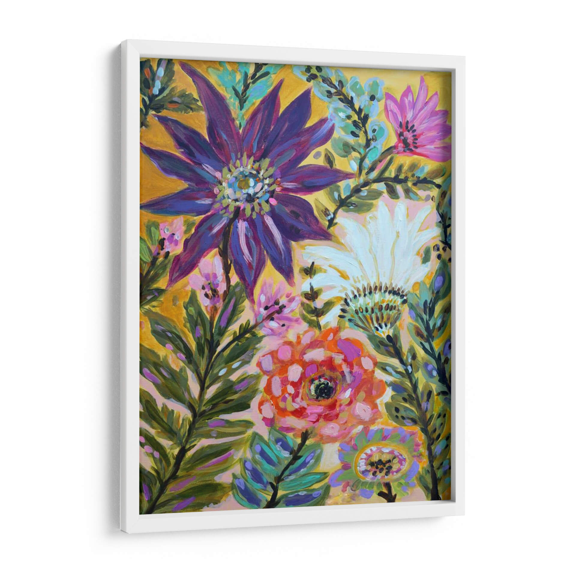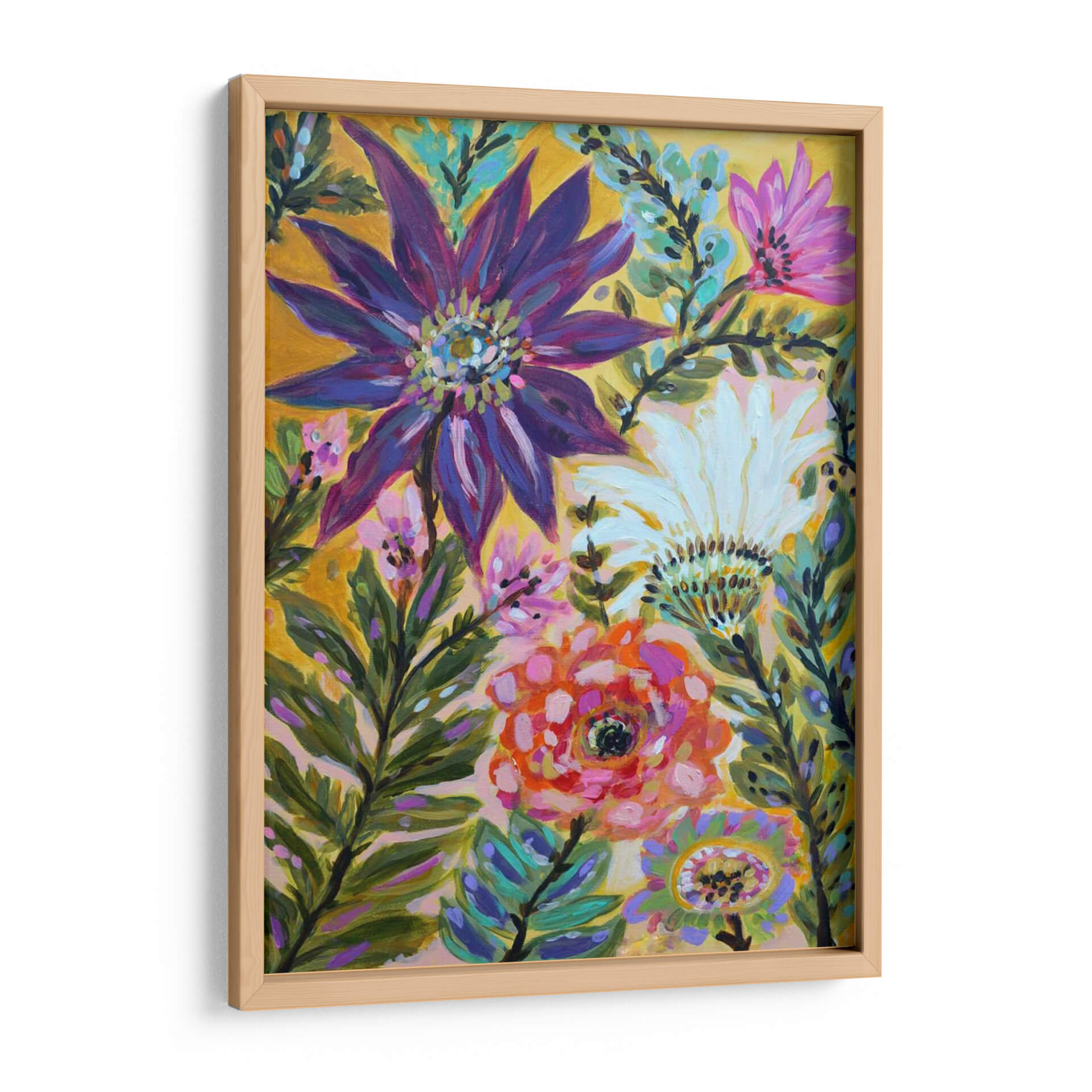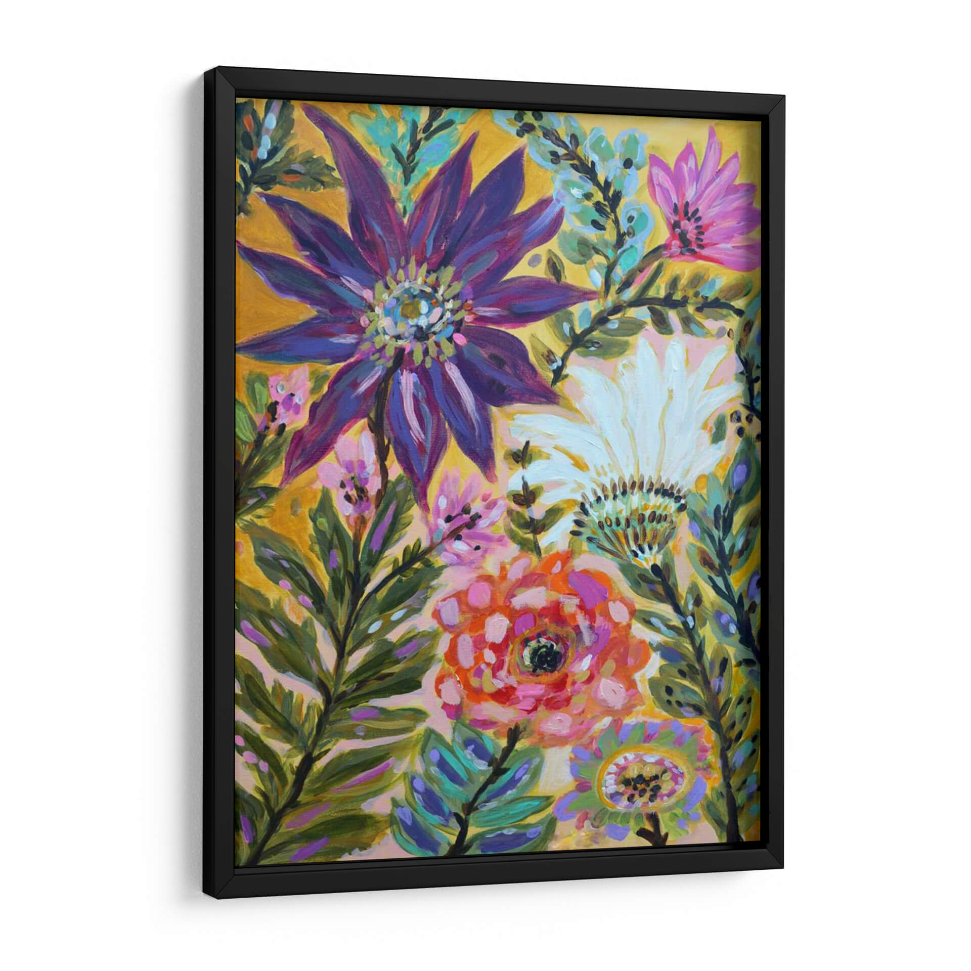 Sumérgete en la exuberante vitalidad de "Jardín de Whimsy I", una obra de arte contemporánea que captura la esencia de la naturaleza con un toque de fantasía. El artista Karen Fields nos transporta a un edén vibrante, donde flores exóticas y follaje exuberante se entrelazan en una sinfonía de colores alegres. Dominado por un vibrante fondo amarillo, la obra presenta una explosión de vida con una gran flor púrpura en primer plano, contrastando maravillosamente con delicadas flores rosadas, un cautivador arreglo blanco y toques de naranja y fucsia. Las pinceladas audaces y expresivas dan a la pieza una textura dinámica y un aire de espontaneidad, invitando al espectador a perderse en su belleza. Este cuadro decorativo es perfecto para infundir alegría y color en cualquier espacio, ya sea una sala de estar moderna, un dormitorio acogedor o una oficina inspiradora. Añade un toque de optimismo y encanto floral a tu hogar con esta pieza única que celebra la belleza de lo caprichoso y lo natural, creando un punto focal que irradia energía positiva y frescura.
