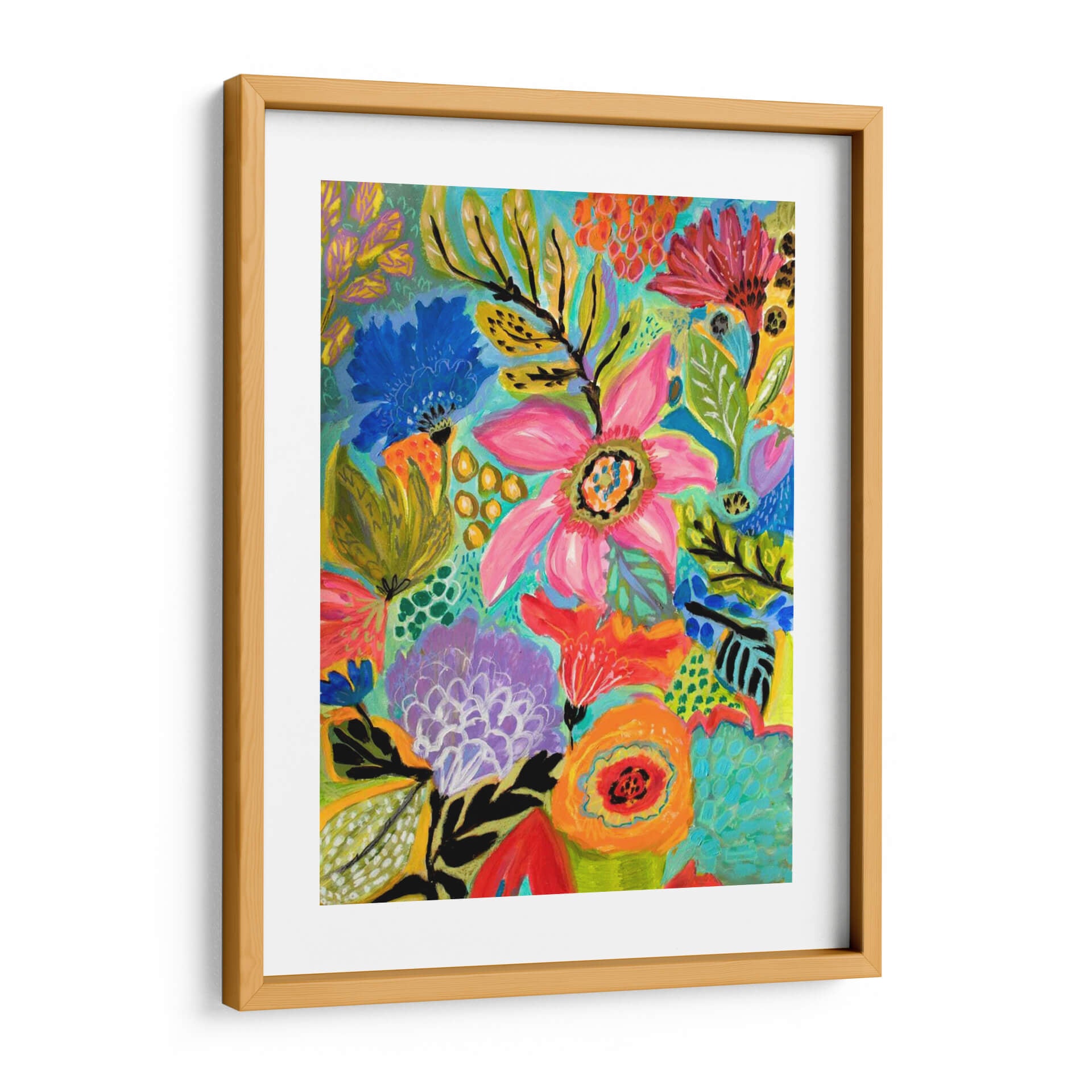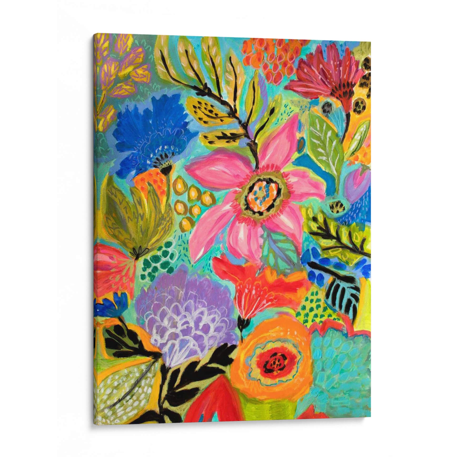 Sumérgete en la exuberancia y el color con "Jardín Secreto Floral II", una obra de arte contemporáneo de Karen Fields que transforma cualquier espacio en un oasis vibrante. Este cuadro decorativo despliega un tapiz de flores y follaje en una explosión de tonos alegres y energéticos. Predominan los rosas intensos, azules profundos, naranjas radiantes y morados vibrantes, contrastando con toques de verde lima y amarillo sol, creando una atmósfera llena de vida y optimismo. El estilo de Fields, que combina elementos expresionistas con una pincelada audaz y texturizada, confiere a la pieza una sensación de movimiento y vitalidad orgánica. Las formas florales, aunque reconocibles, se presentan de manera estilizada y abstracta, invitando a la interpretación personal y añadiendo profundidad visual. "Jardín Secreto Floral II" es ideal para quienes buscan infundir alegría y personalidad en sus hogares u oficinas. Colócalo en una sala de estar moderna para un punto focal lleno de color, o en un dormitorio para añadir un toque de energía positiva y frescura. Esta pieza es una celebración de la naturaleza en su máxima expresión, capturando la esencia de un jardín secreto rebosante de belleza y misterio, perfecta para añadir un toque artístico y distintivo a tu decoración. Su composición dinámica y su paleta de colores audaz aseguran que esta obra será un tema de conversación y una fuente de inspiración diaria.