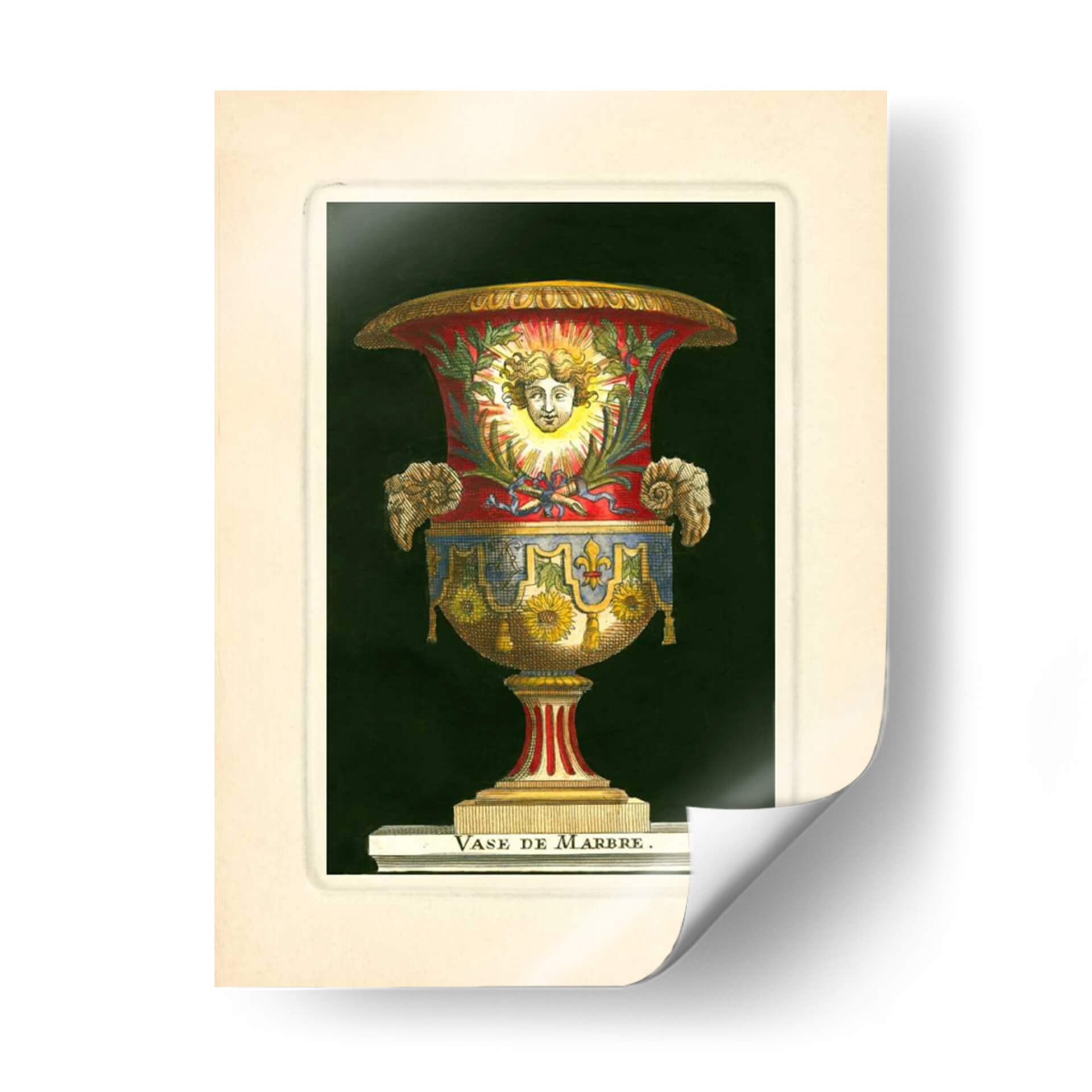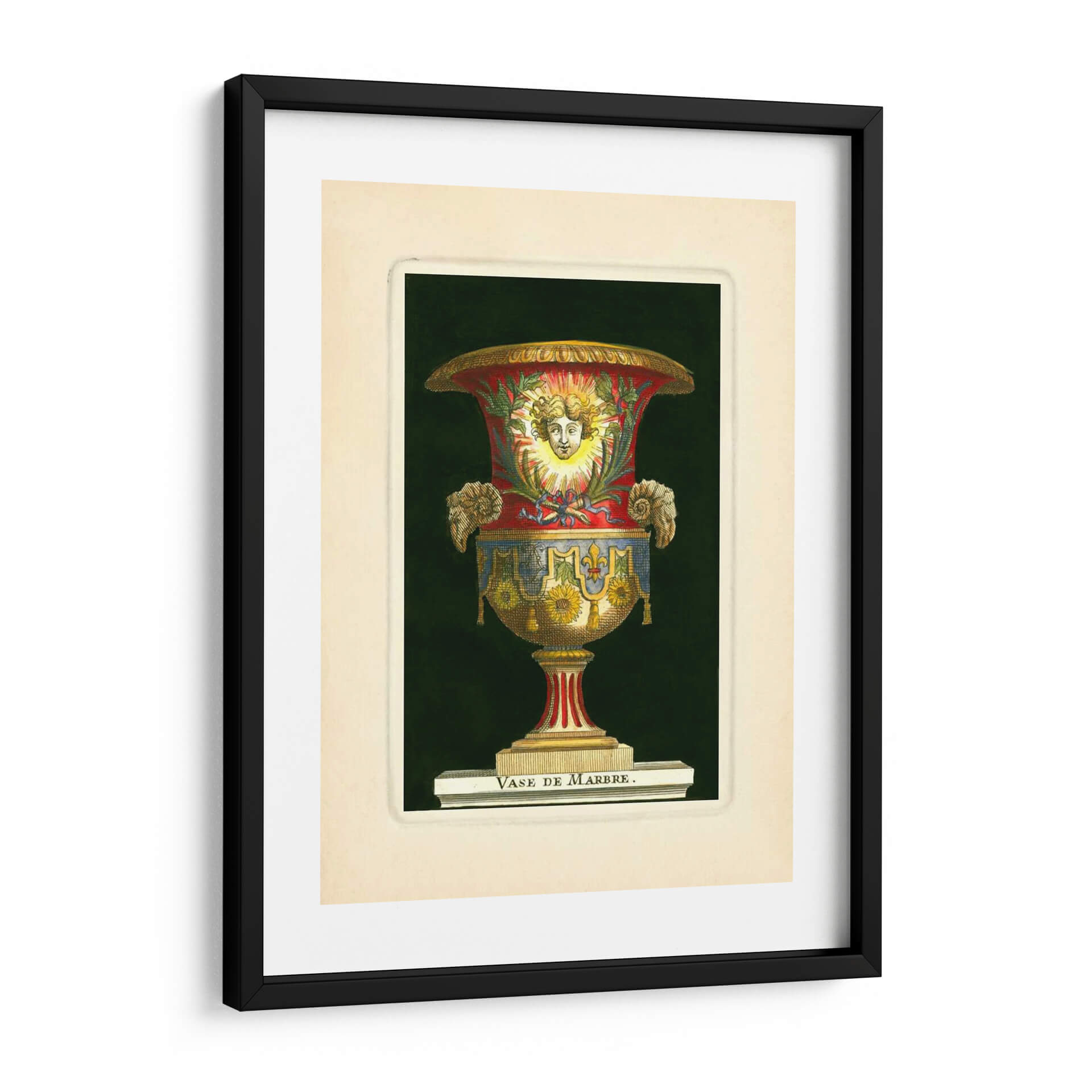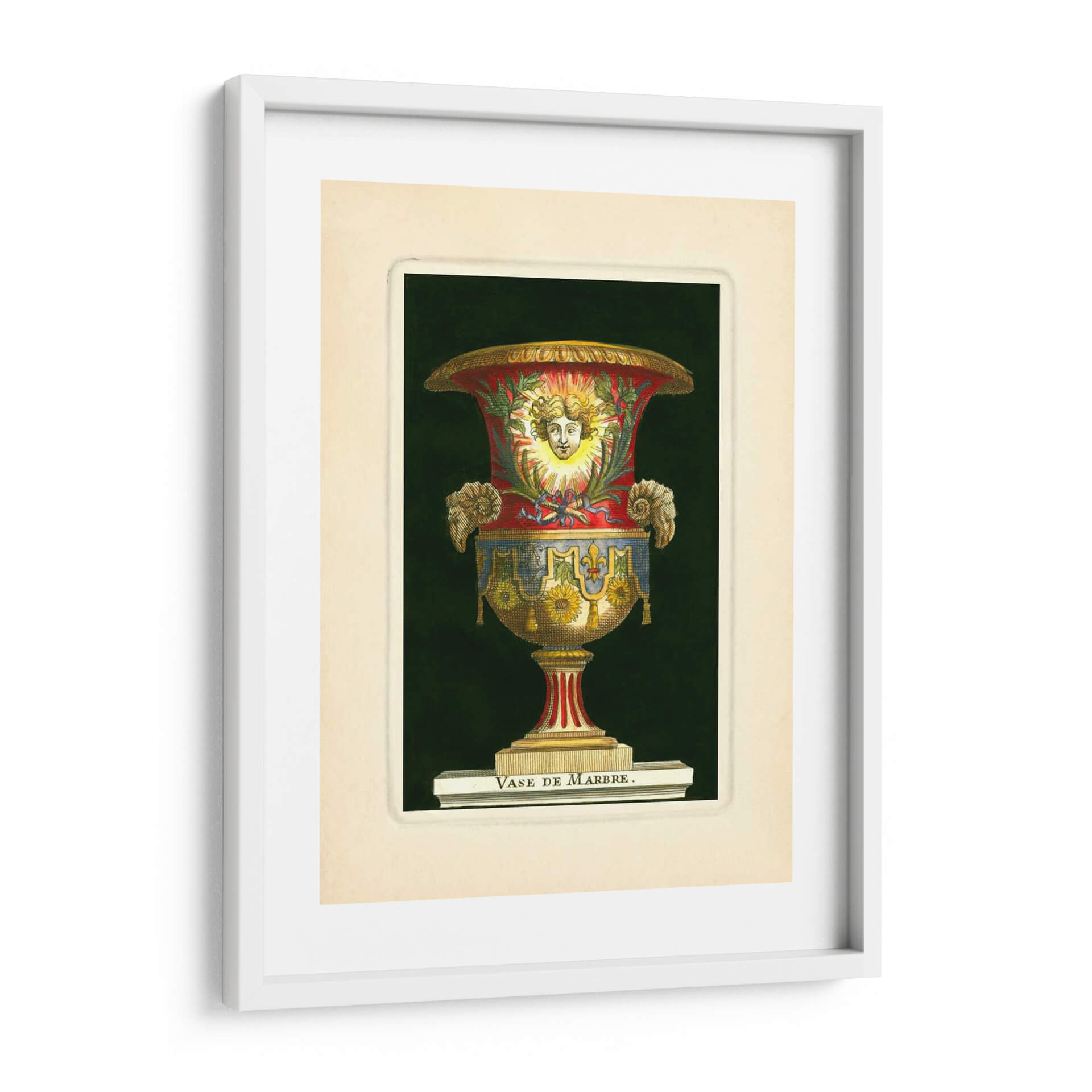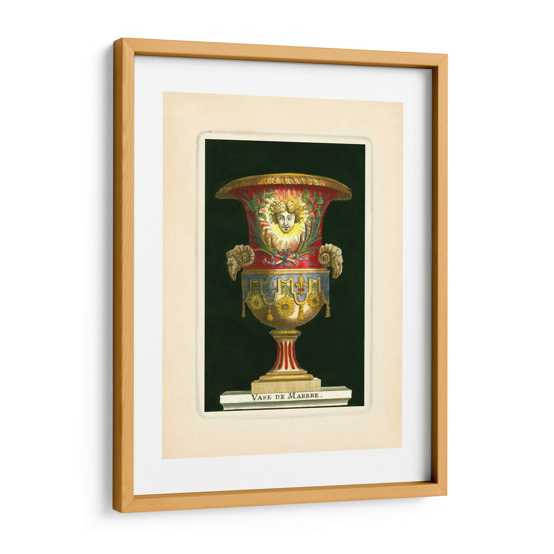 Emb uevo en un viaje visual al Renacimiento con nuestro impresionante cuadro decorativo "Jarrón Con Girasoles" del artista S. Thomassin. Esta obra maestra captura la opulencia y el detalle de un jarrón ornamentado, cuya forma se realza con una paleta de colores rica y vibrante. Los tonos rojos profundos se entrelazan con azules intensos y dorados resplandecientes, creando un contraste cautivador sobre un fondo oscuro y misterioso. El jarrón en sí está adornado con motivos florales, destacando la presencia de girasoles, que aportan un toque de calidez y vitalidad. La figura central, un rostro sereno enmarcado por rayos solares, evoca una sensación de divinidad y luz, mientras que los detalles intrincados, como las volutas y los adornos laterales, añaden una dimensión de riqueza y sofisticación. Este cuadro es una pieza que no solo decora, sino que también cuenta una historia de arte y cultura. Ideal para aquellos que buscan añadir un punto de interés clásico pero audaz a su sala de estar, estudio u oficina, este cuadro decorativo "Jarrón Con Girasoles" es una invitación a la contemplación y al disfrute de la belleza atemporal.