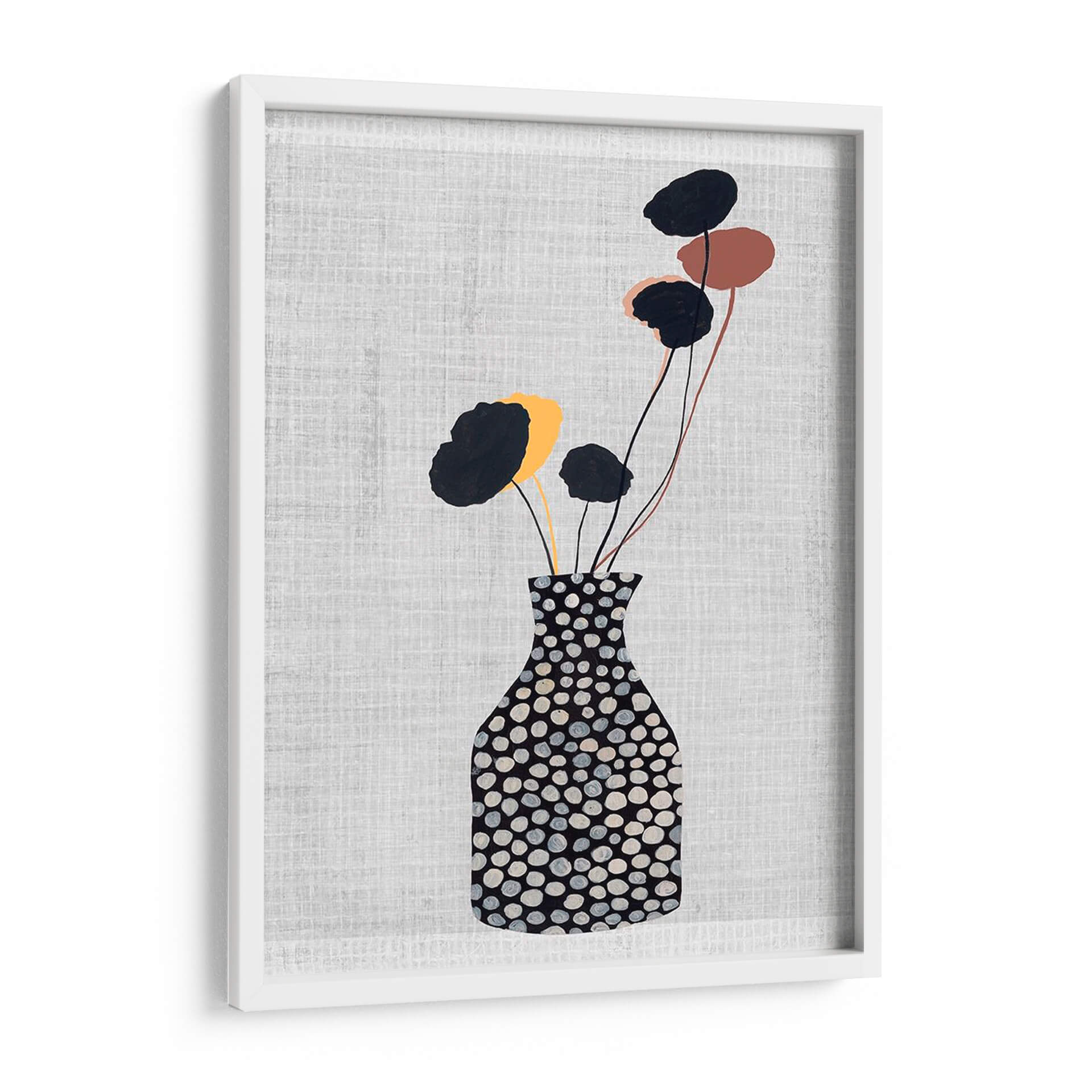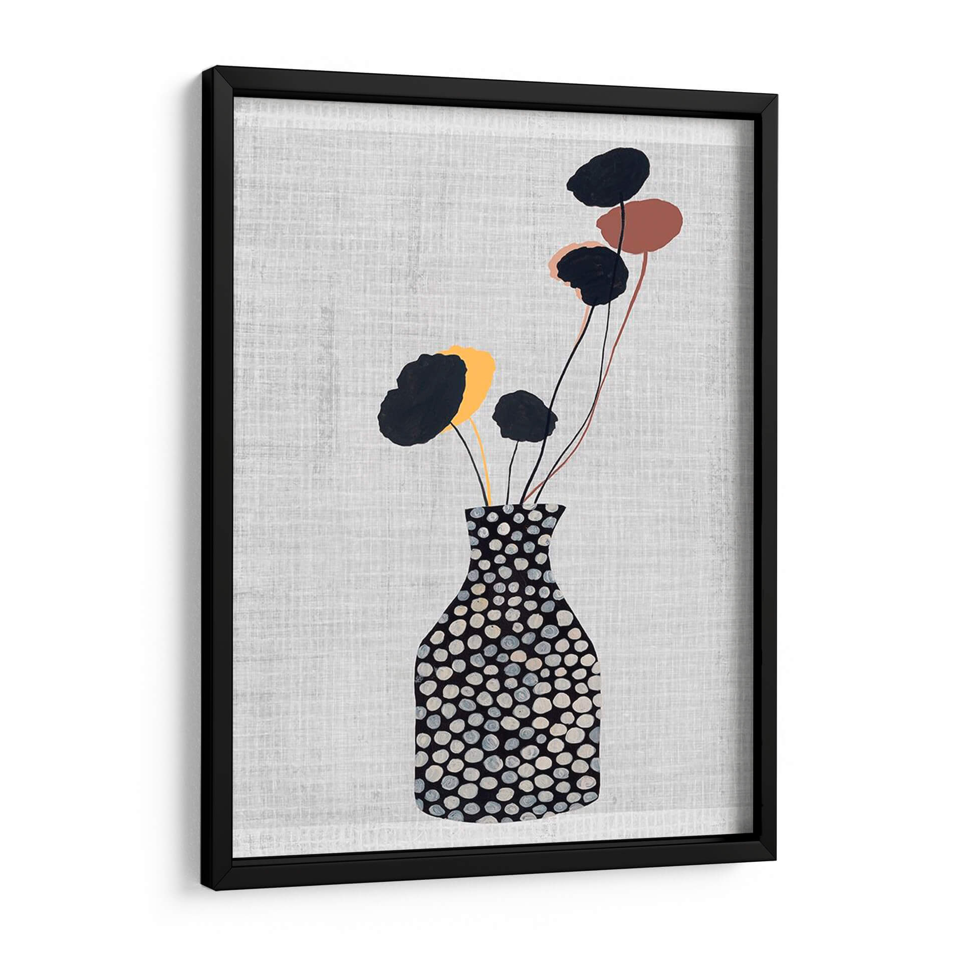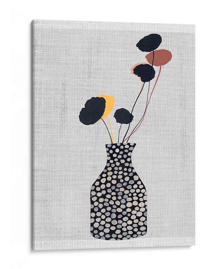 Aporta un toque de elegancia contemporánea y natural a tu hogar con este cautivador cuadro decorativo 'Jarrón Decorado Con Planta Ii' de Melissa Wang. La obra presenta un diseño estilizado y minimalista de un jarrón decorado con un patrón de puntos orgánicos en tonos grises, blancos y negros, que alberga un delicado arreglo de flores abstractas. Las formas redondeadas y los pétalos en negro, ocre y amarillo, se elevan graciosamente sobre tallos finos, creando una composición equilibrada y serena. El fondo texturizado en tono gris claro proporciona una base sutil que permite que la pieza central destaque, añadiendo profundidad y carácter. Ideal para espacios modernos, minimalistas o bohemios, este cuadro es perfecto para dar vida a salones, dormitorios, oficinas o cualquier rincón que necesite una inyección de arte sofisticado y natural. Su paleta de colores neutros y acentos vibrantes lo convierte en una adición versátil que complementa una amplia gama de estilos decorativos, invitando a la contemplación y aportando una atmósfera de calma y refinamiento.