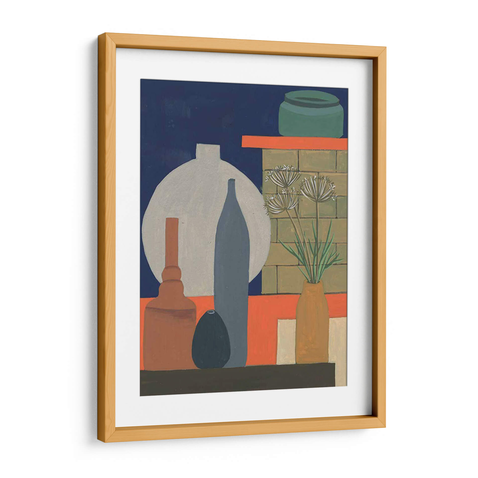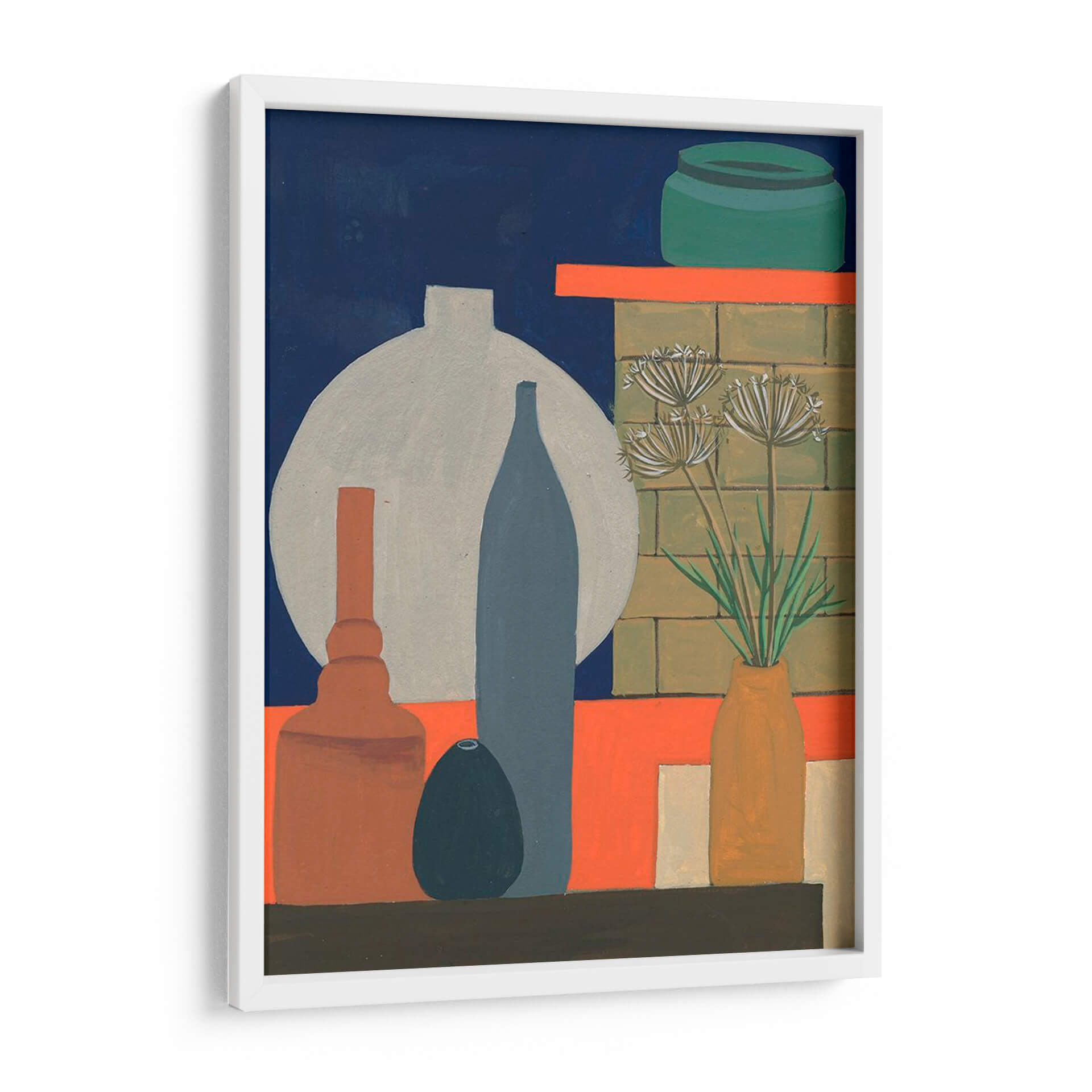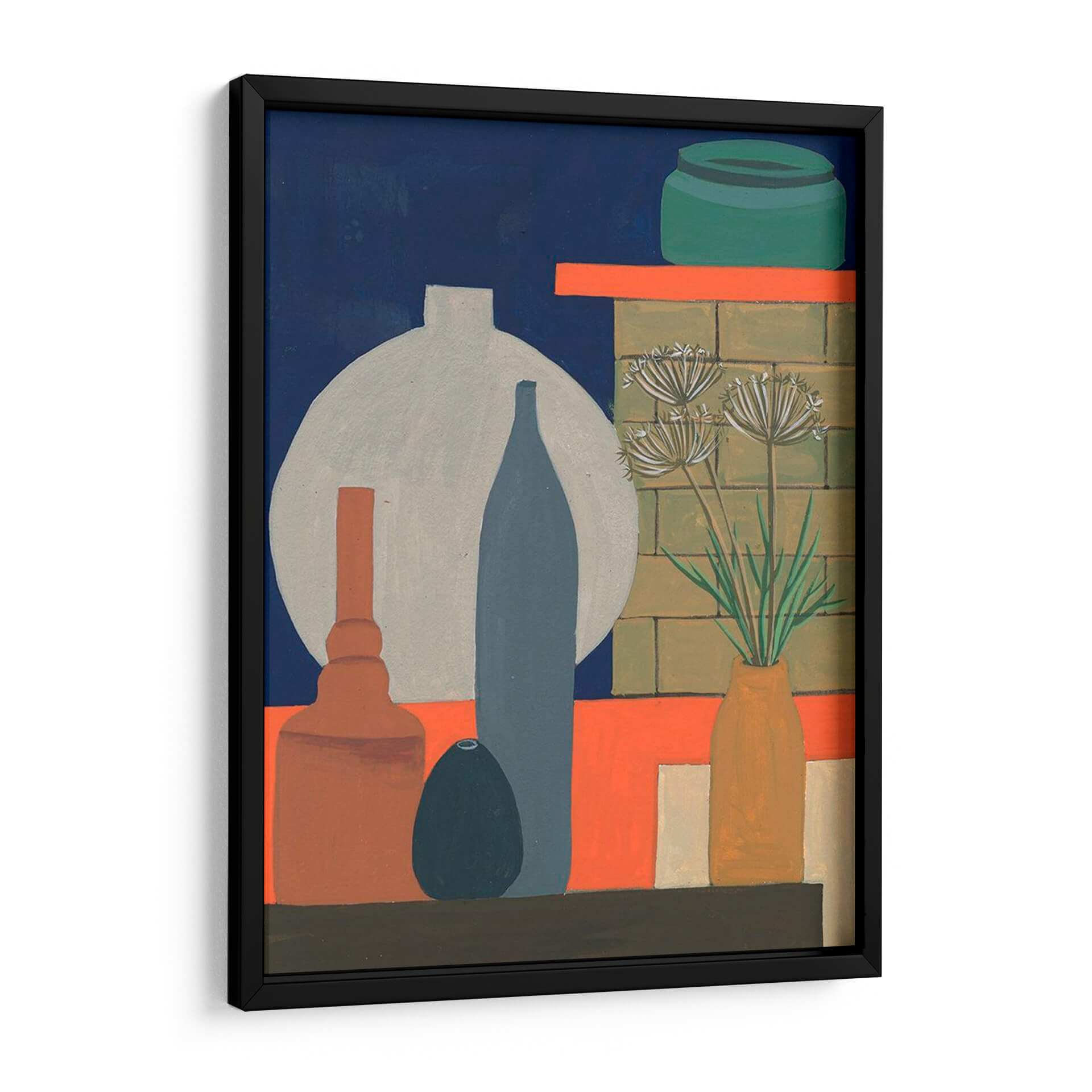 Embárcate en un viaje visual con "Jarrones En Un Estante Iv", una cautivadora obra de arte de Melissa Wang que redefine la naturaleza muerta contemporánea. Esta pieza se caracteriza por su audaz uso del color y las formas geométricas simplificadas, creando una composición armoniosa que invita a la contemplación. Los tonos vibrantes de naranja se combinan con un profundo azul noche y toques de verde esmeralda, estableciendo un ambiente moderno y sofisticado. La disposición de los jarrones, cada uno con su silueta única, evoca una sensación de orden y serenidad, mientras que los detalles sutiles, como las delicadas flores secas, añaden una textura orgánica y un toque de calidez. Este cuadro decorativo es perfecto para infundir vida y personalidad a cualquier sala de estar, comedor o estudio. Su estilo abstracto-geométrico lo convierte en una adición versátil que complementa tanto decoraciones minimalistas como eclécticas, ofreciendo un punto focal de interés visual que estimula la conversación y refleja un gusto estético refinado. Transforma tu espacio con la expresividad única de Melissa Wang y añade una pieza que resuena con energía y elegancia.