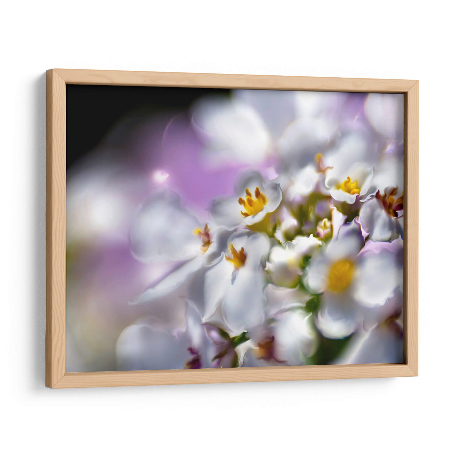 Sumérgete en la delicadeza etérea de "Joyas Del Bosque Encantado II", una obra de arte que captura la esencia de la naturaleza en su máxima expresión floral. Este cuadro decorativo presenta un primer plano de pequeñas flores blancas con vibrantes centros amarillos, rodeadas por un suave y difuminado fondo en tonos lavanda y blanco. La composición, con un enfoque suave y una paleta de colores delicada, evoca una sensación de paz, pureza y serenidad, transportando al espectador a un jardín secreto bañado por la luz. La técnica utilizada resalta la textura sutil de los pétalos y la vitalidad de cada flor, creando una atmósfera de ensueño y encanto. Ideal para añadir un toque de frescura y elegancia a cualquier espacio, este cuadro decorativo es perfecto para dormitorios, salas de estar o estudios que busquen un ambiente de calma y sofisticación natural. Su belleza atemporal y su conexión con la naturaleza lo convierten en una pieza inspiradora y reconfortante, capaz de transformar cualquier pared en un rincón de tranquilidad y belleza.