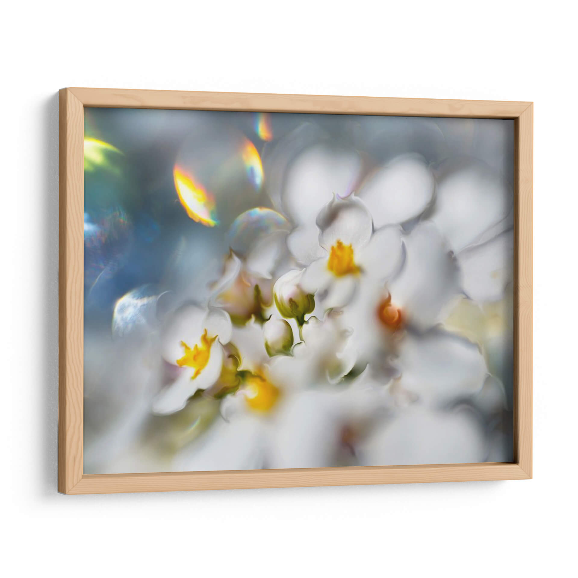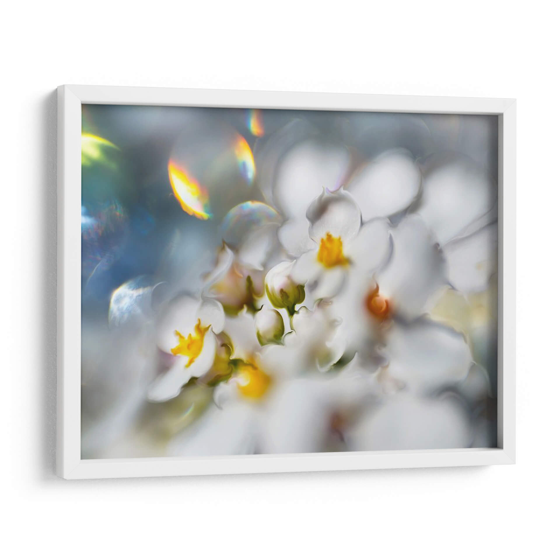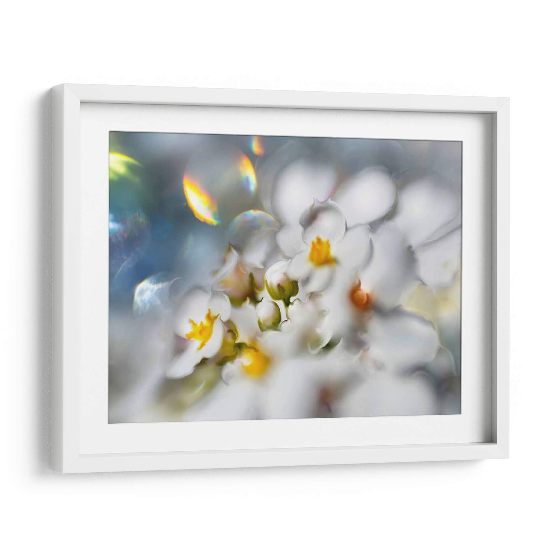 Embellece tu espacio con el cuadro decorativo "Joyas Del Bosque Encantado III" de Gillian Hunt. Esta obra maestra captura la delicadeza y la etérea belleza de las flores blancas en un entorno onírico. La paleta de colores suaves, dominada por blancos puros y toques vibrantes de amarillo en los centros florales, se complementa con sutiles destellos de luz iridiscente que añaden un toque de magia y fantasía. El estilo abstracto y la composición fluida invitan a la contemplación, creando una atmósfera de paz y serenidad. Ideal para quienes buscan infundir calma y elegancia en su hogar u oficina, este cuadro decorativo es una pieza central que transformará cualquier habitación. Las texturas visuales y los degradados de color invitan a perderse en su detalle, ofreciendo una experiencia estética única. Añade un toque de naturaleza encantada y sofisticación a tu decoración con esta impresionante obra de arte contemporáneo. Las luces refractadas y los pétalos suaves crean un efecto soñador que cautivará a todos tus invitados, aportando un aire de distinción y tranquilidad.