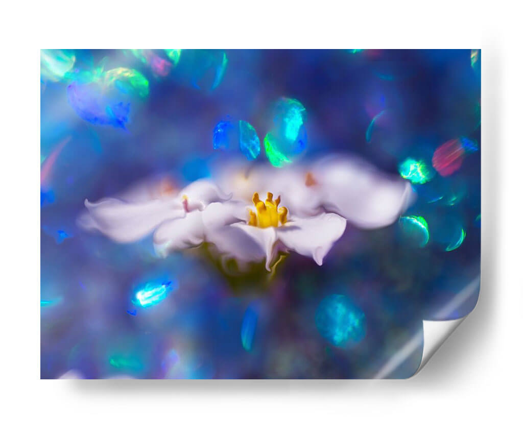 Adéntrate en la magia de la naturaleza con "Joyas Del Bosque Encantado VI", una obra de arte que captura la delicadeza de una flor blanca suspendida en un etéreo fondo azul. La pieza juega con luces y sombras, creando un efecto de bokeh vibrante y deslumbrante que evoca la sensación de un sueño o un recuerdo lejano. Los tonos profundos del azul se entrelazan con destellos de verde, turquesa y fucsia, añadiendo una dimensión de fantasía y misterio. La flor, de pétalos suaves y un centro amarillo luminoso, se convierte en el punto focal, irradiando una calma serena y una belleza efímera. Este cuadro decorativo es ideal para quienes buscan infundir sus espacios con una atmósfera de tranquilidad y encanto. Perfecto para añadir un toque de sofisticación a un dormitorio, un rincón de lectura o un recibidor, "Joyas Del Bosque Encantado VI" invita a la contemplación y transporta al espectador a un mundo de ensueño. Su estilo etéreo y sus colores cautivadores lo convierten en una pieza única para embellecer cualquier ambiente, atrayendo miradas y generando conversaciones. Descubre la delicadeza y el misterio que esta obra de Gillian Hunt puede aportar a tu hogar.