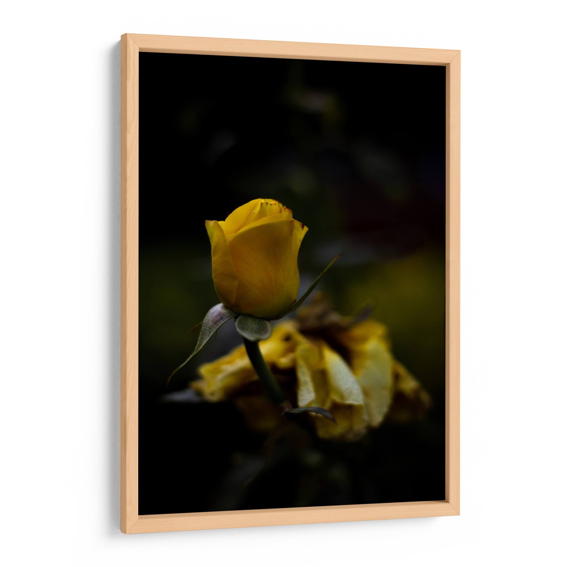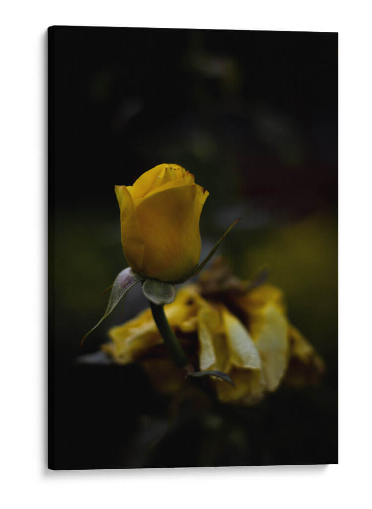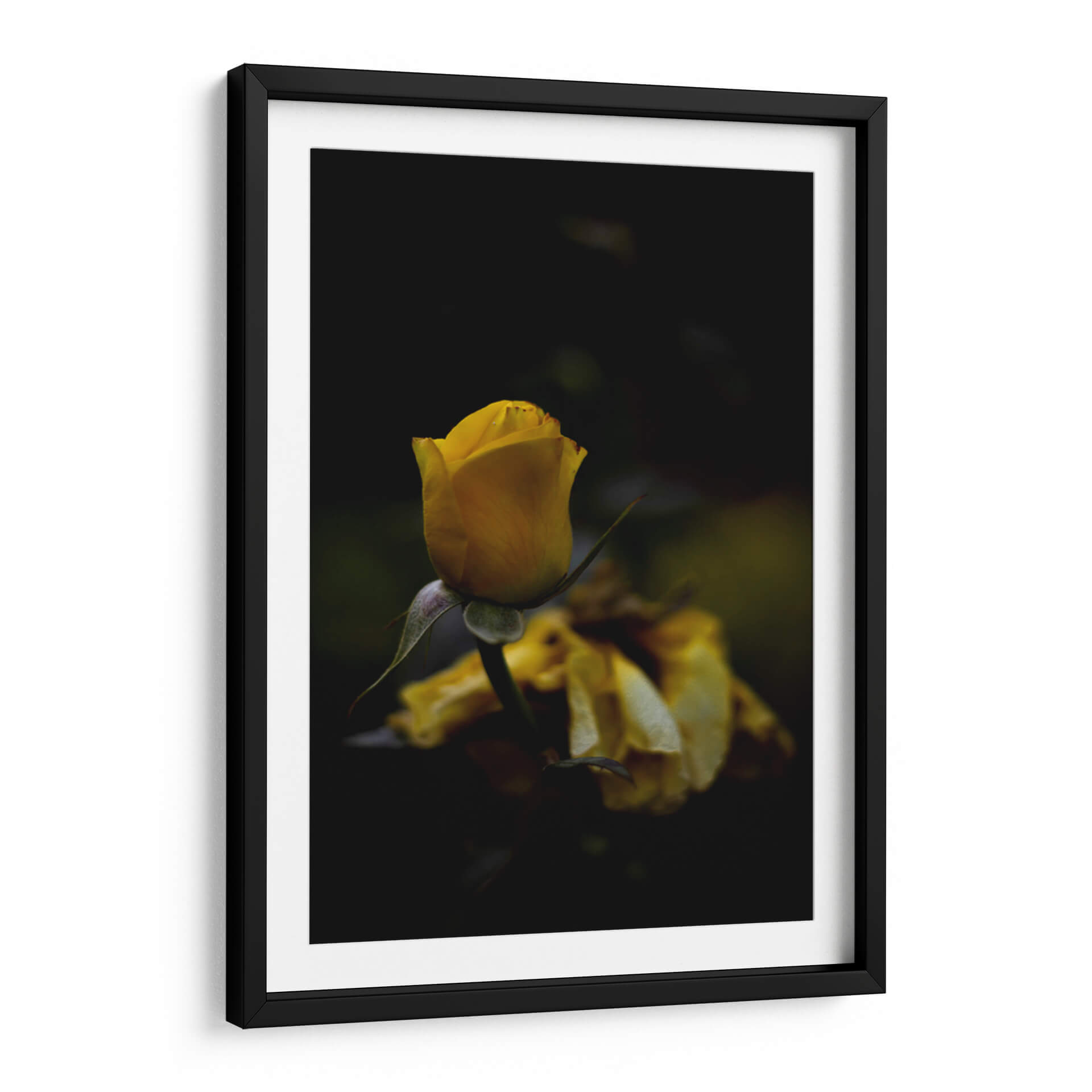 Adéntrate en la delicadeza y el paso del tiempo con "Juventud" de Alex Cerón, una obra de arte que captura la efímera belleza de una rosa amarilla. La composición se centra en un capullo vibrante, casi a punto de abrirse por completo, rodeado por el suave desenfoque de otras flores que, aunque marchitas, aún conservan destellos de su esplendor pasado. La paleta de colores se domina por el cálido amarillo de la rosa principal, contrastando con un fondo oscuro y profundo que resalta su forma y sus pétalos delicados. El estilo fotográfico y la iluminación dramática crean una atmósfera íntima y reflexiva, invitando a la contemplación sobre la naturaleza cíclica de la vida y la belleza. Este cuadro decorativo es perfecto para añadir un toque de sofisticación sutil y melancolía serena a cualquier espacio, ya sea una sala de estar, un dormitorio o un estudio. Su evocadora imagen dialoga con la transitoriedad, ofreciendo un punto de reflexión visual que enriquece el ambiente. "Juventud" es más que una imagen; es una invitación a apreciar la belleza en todas sus etapas, una pieza que aporta profundidad emocional y elegancia atemporal a tu decoración.