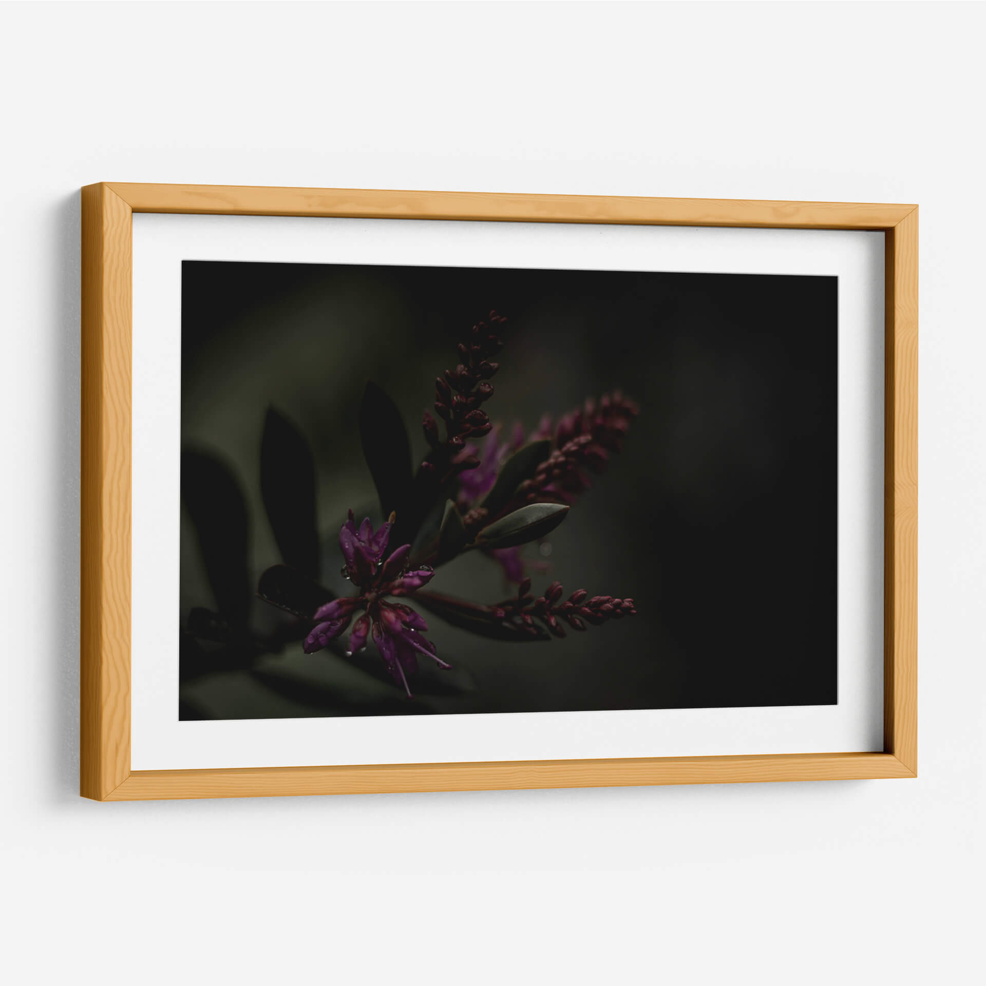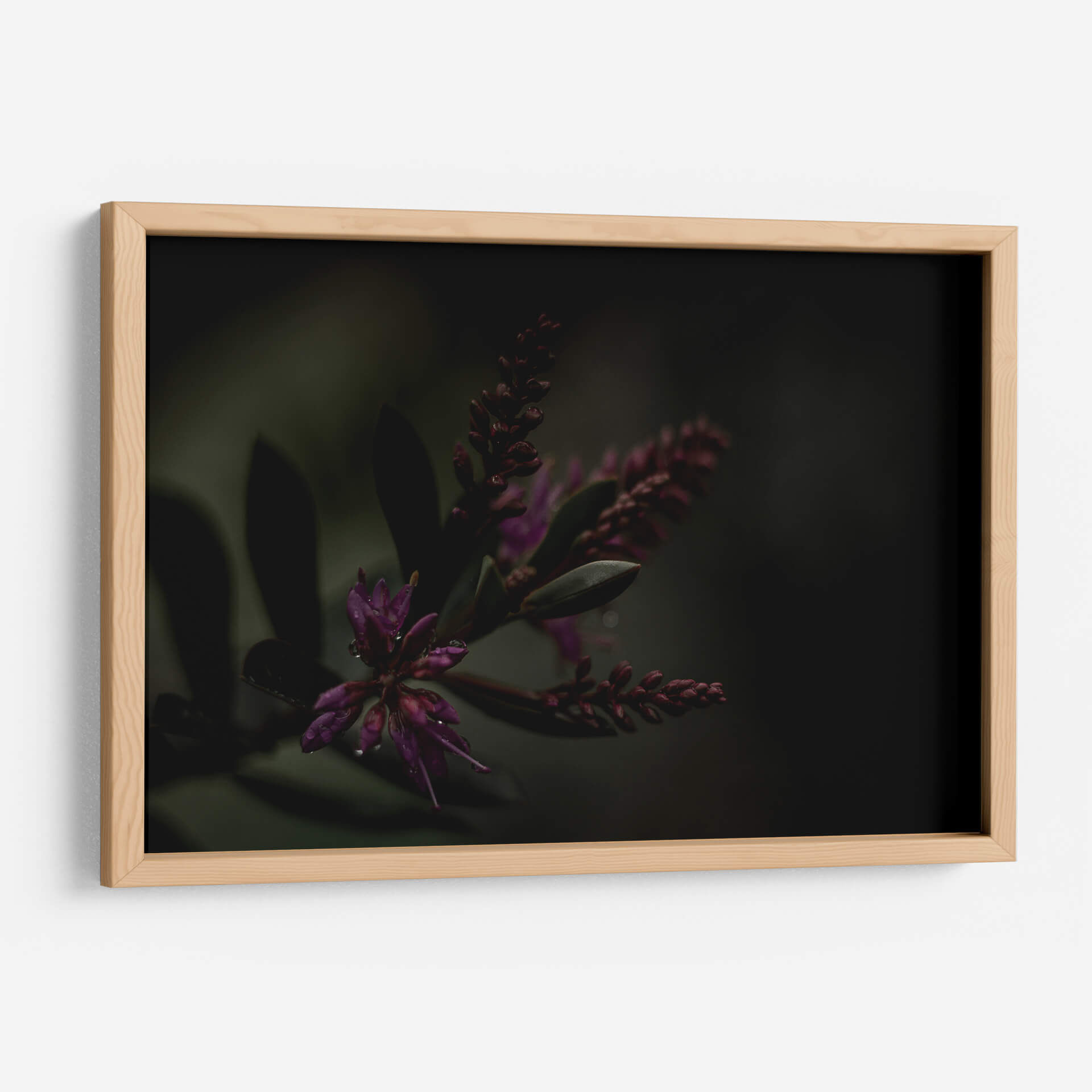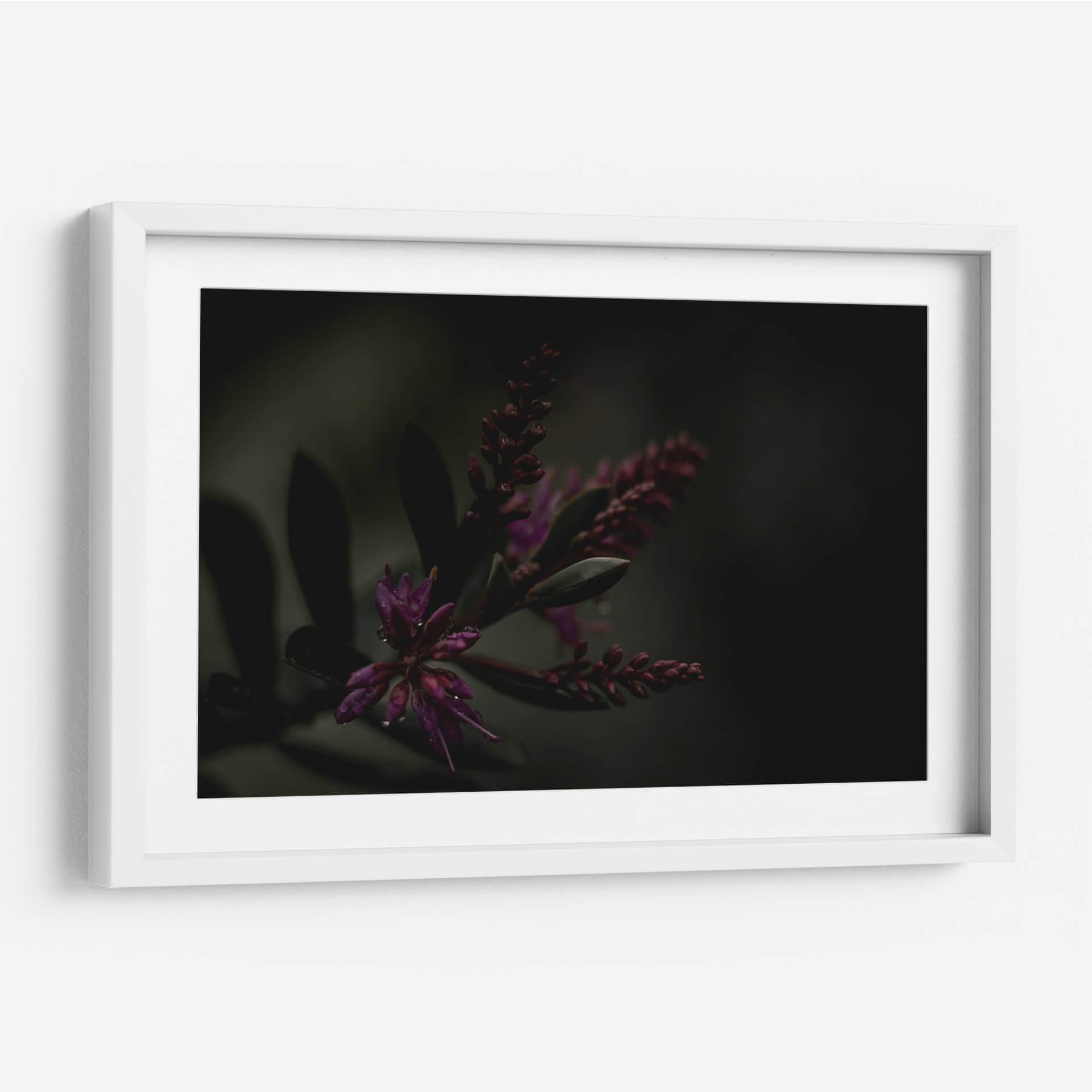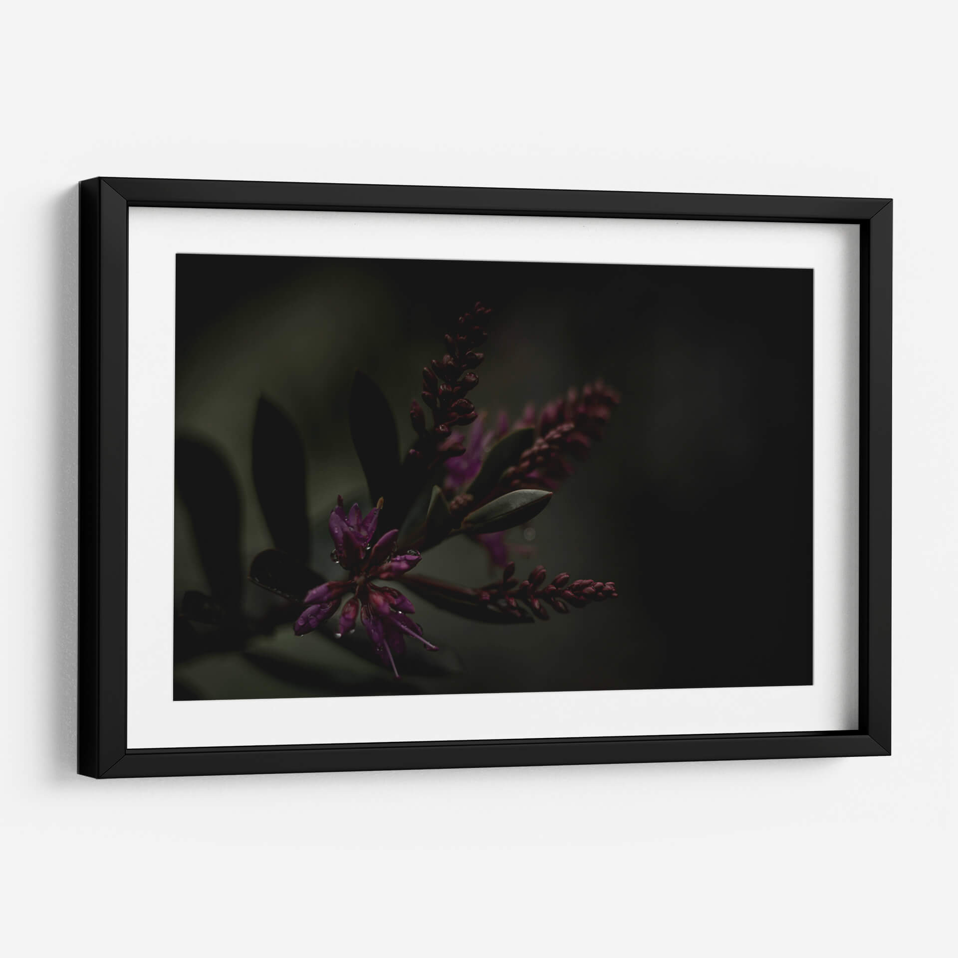 Sumérgete en la misteriosa belleza de 'Lágrimas Moradas', una obra de arte que captura la delicadeza de la naturaleza con un toque etéreo. Este cuadro decorativo presenta un primer plano íntimo de flores moradas vibrantes, sutilmente adornadas con gotas de agua que reflejan la luz, evocando una sensación de frescura y serenidad tras la lluvia. La paleta de colores, dominada por profundos tonos morados y verdes oscuros, crea una atmósfera envolvente y contemplativa, perfecta para espacios que buscan un toque de sofisticación y calma. El estilo fotográfico macro resalta las texturas y formas orgánicas, invitando al espectador a perderse en los detalles intrincados de la flora. Ideal para añadir un punto focal de elegancia natural a tu salón, dormitorio u oficina, este cuadro contemporáneo trasciende lo meramente decorativo para convertirse en una ventana a la tranquilidad del mundo natural. Su composición cuidada y la atmósfera melancólica pero hermosa lo convierten en una pieza única para coleccionistas y amantes del arte que aprecian la sutileza y la profundidad emocional en la decoración de interiores.