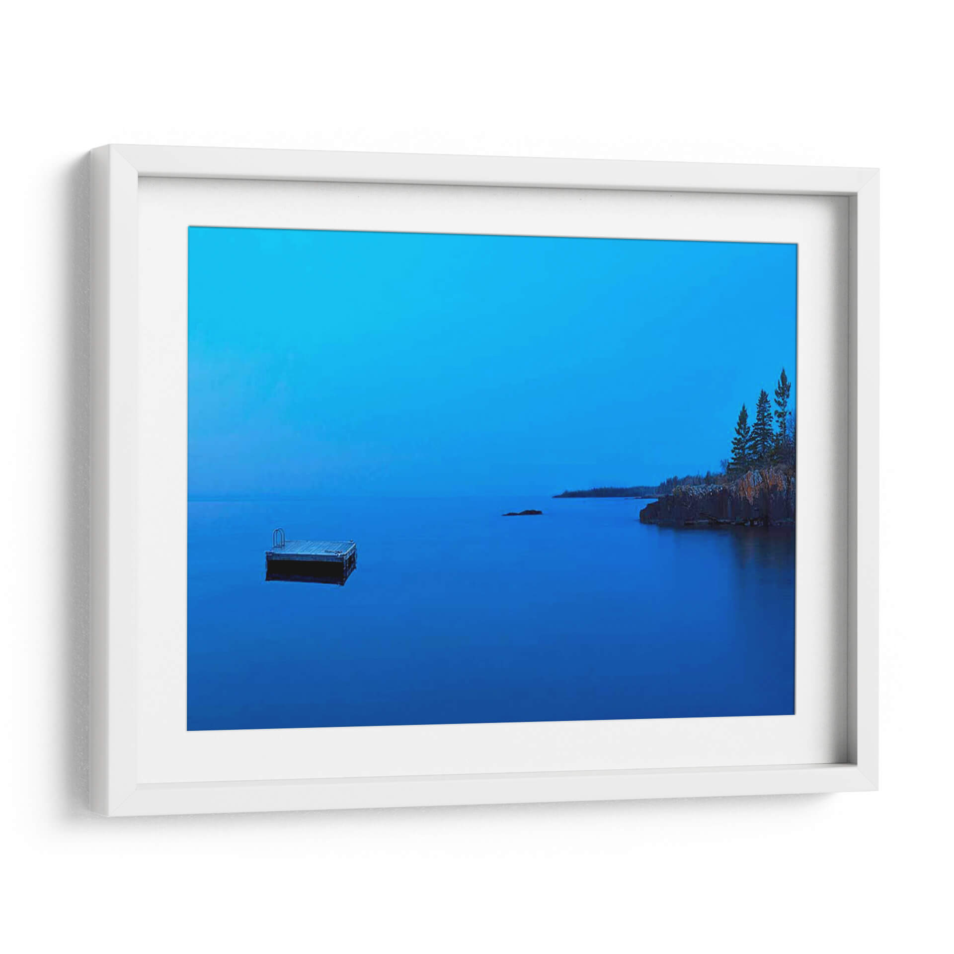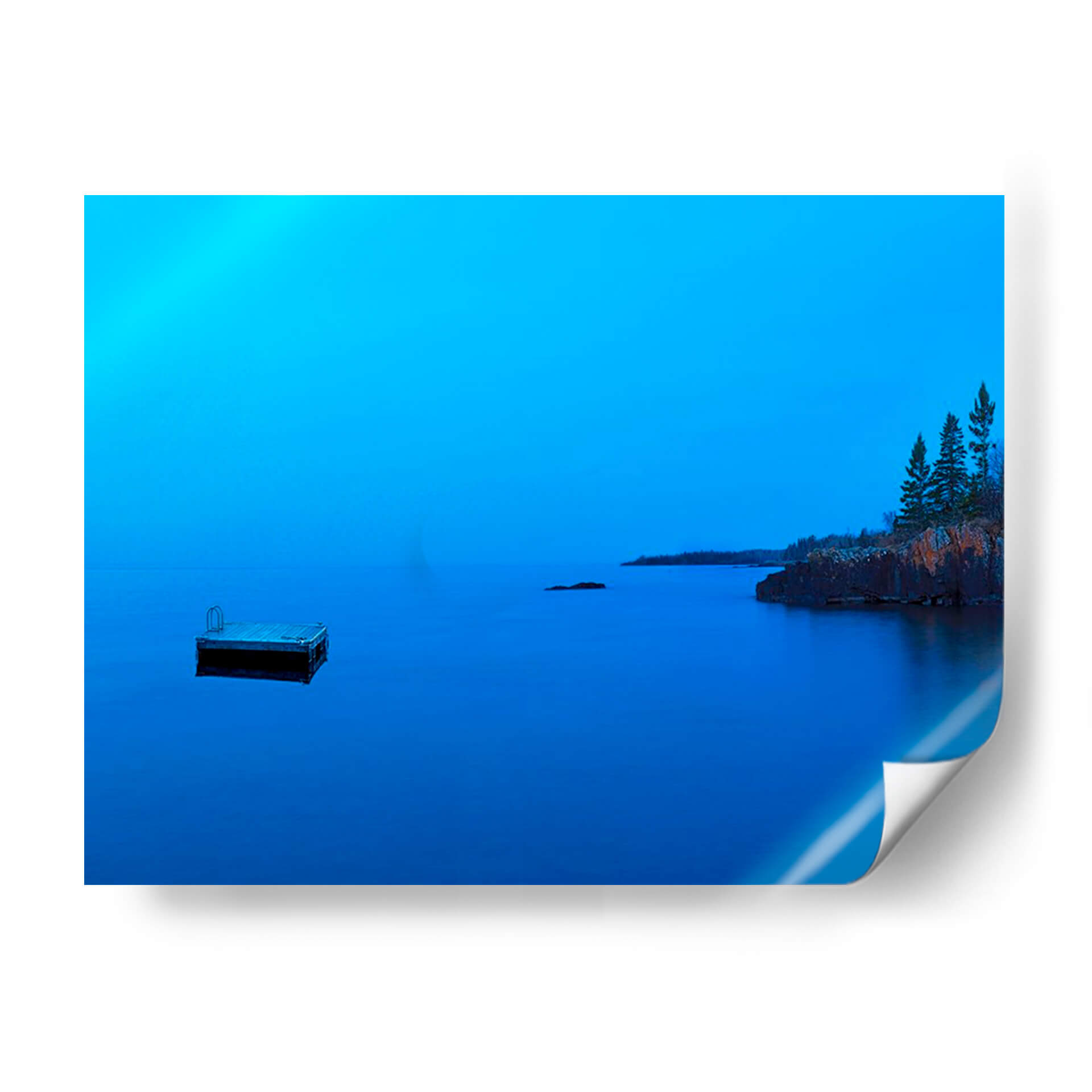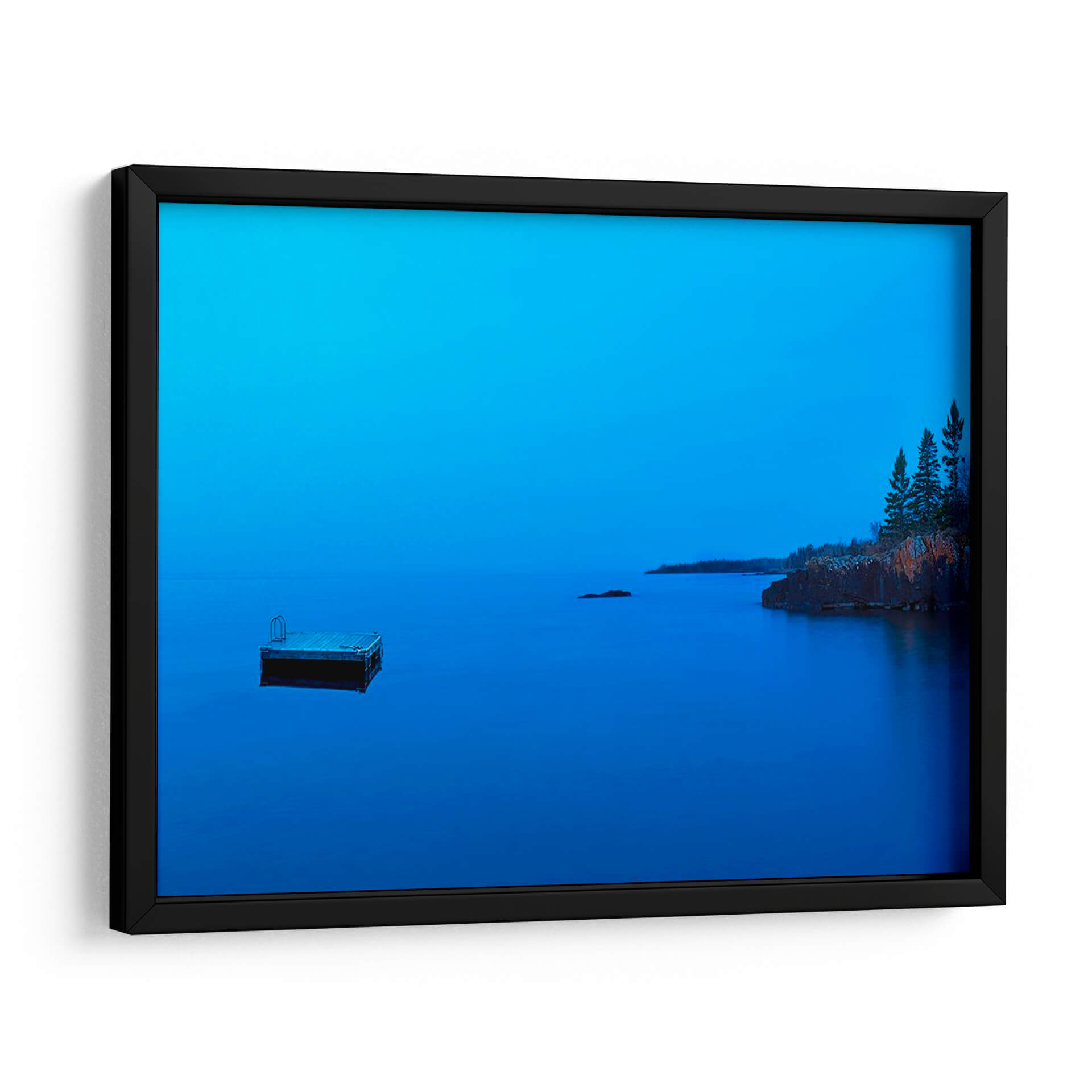Sumérgete en la serenidad de "Lakescape Xii", una obra de arte cautivadora de James McLoughlin que evoca la tranquilidad de un atardecer o amanecer sobre un lago sereno. La pieza se caracteriza por una paleta de azules profundos y vibrantes que dominan el cielo y el agua, creando una atmósfera de calma y contemplación. En el primer plano, un muelle solitario se adentra en las aguas tranquilas, invitando a la reflexión y sugiriendo un momento de paz apartada. Al fondo, la costa rocosa se alza con árboles esbeltos, añadiendo textura y un contraste natural a la vastedad acuática. La composición minimalista, con líneas limpias y un enfoque en la luz y el color, hace de este cuadro decorativo una adición perfecta para espacios que buscan transmitir serenidad y sofisticación, como dormitorios, salas de estar o estudios. "Lakescape Xii" no es solo una imagen, sino una invitación a pausar y conectar con la belleza serena de la naturaleza, transformando cualquier ambiente en un refugio de paz.