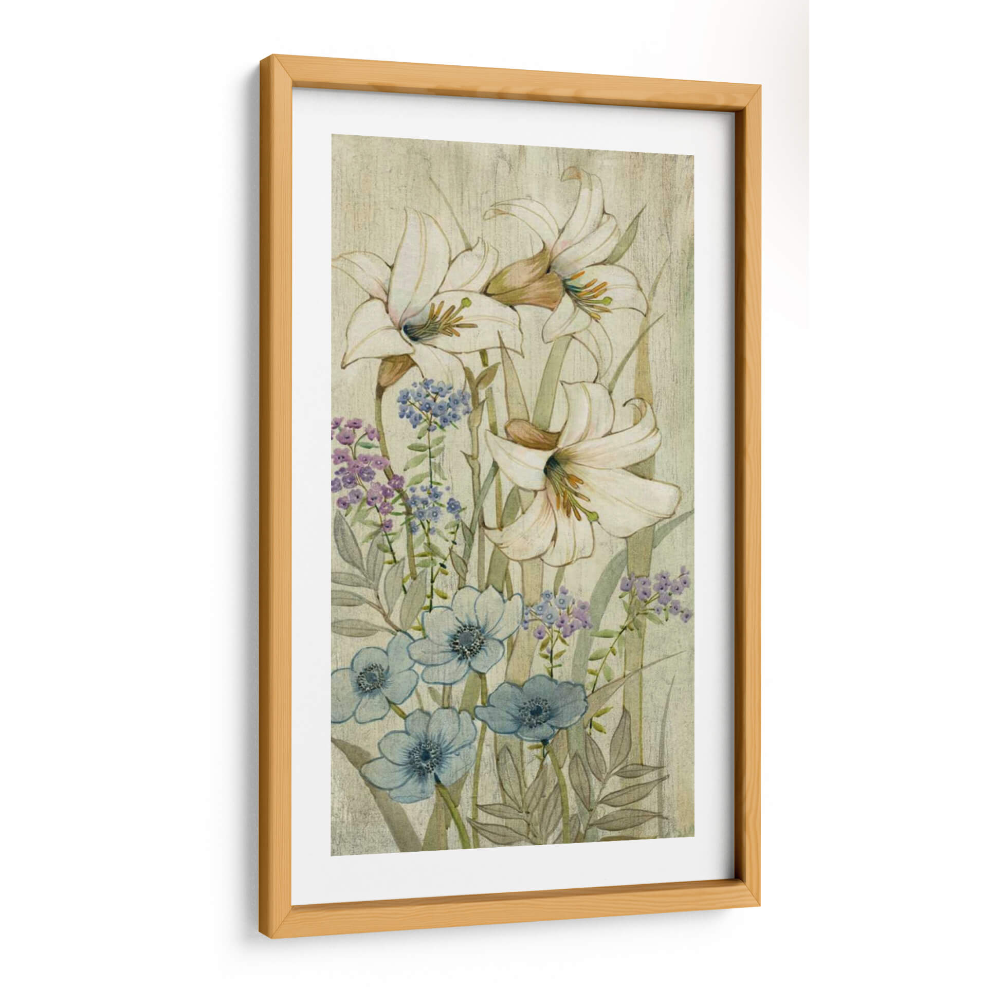 Embellece tu espacio con el encanto atemporal del cuadro decorativo 'Lily Chinoiserie II' de Tim O'Toole. Esta obra de arte captura la delicadeza de la naturaleza con un estilo que evoca la serenidad de los jardines asiáticos y la elegancia del arte chinoiserie. La composición presenta lirios blancos de gran tamaño, enmarcados por un follaje sutil y delicadas flores en tonos azules y púrpuras, todo ello sobre un fondo texturizado que aporta profundidad y un aire vintage. La paleta de colores, dominada por tonos suaves de verde, blanco, azul y toques de lavanda, crea una atmósfera de calma y sofisticación. Ideal para quienes buscan añadir un toque de refinamiento y tranquilidad a su hogar u oficina, este cuadro decorativo es perfecto para salas de estar, dormitorios o pasillos. Su estilo artístico detallado y su temática floral lo convierten en una pieza versátil que complementa tanto decoraciones clásicas como contemporáneas, aportando un punto de interés visual y una sensación de paz. Transforma tu pared en una ventana a un jardín sereno con esta exquisita obra de Tim O'Toole.