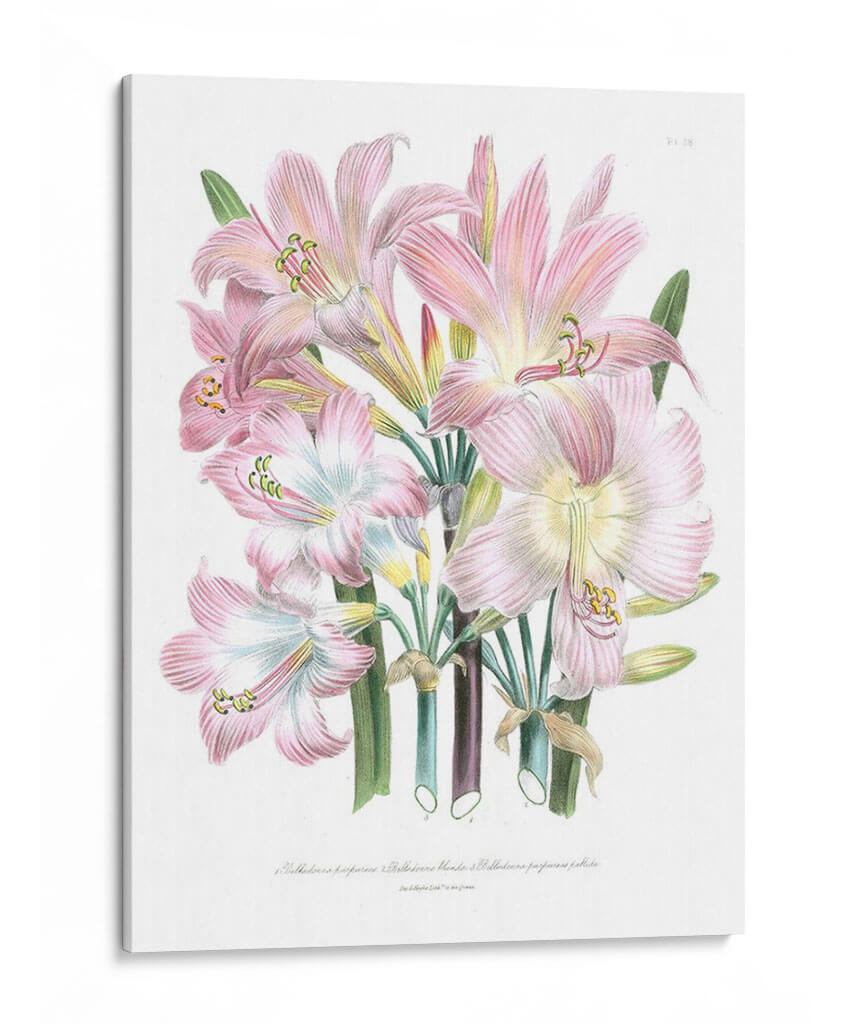 Sumérgete en la delicadeza y elegancia de "Lily Garden Iv", una obra maestra botánica de Jane Loudon que captura la belleza efímera de los lirios en plena floración. Este cuadro decorativo presenta un vibrante ramo de lirios de un suave tono rosado, con pétalos que se despliegan en delicados pliegues y centros de un blanco cremoso con toques amarillos y estambres pronunciados. La paleta de colores, dominada por los rosas pálidos, blancos y verdes intensos de los tallos y hojas, evoca una sensación de serenidad y frescura, transportándote a un jardín idílico en una mañana tranquila. El estilo de ilustración botánica, con su atención meticulosa al detalle y sus líneas precisas, añade un toque de sofisticación clásica a la pieza. "Lily Garden Iv" es ideal para infundir calma y belleza natural en cualquier espacio, desde un dormitorio sereno hasta una sala de estar luminosa o un estudio donde se busca inspiración. Este cuadro decorativo es perfecto para amantes de la naturaleza, la botánica y el arte floral, aportando un toque de sofisticación atemporal y color suave a tu decoración.