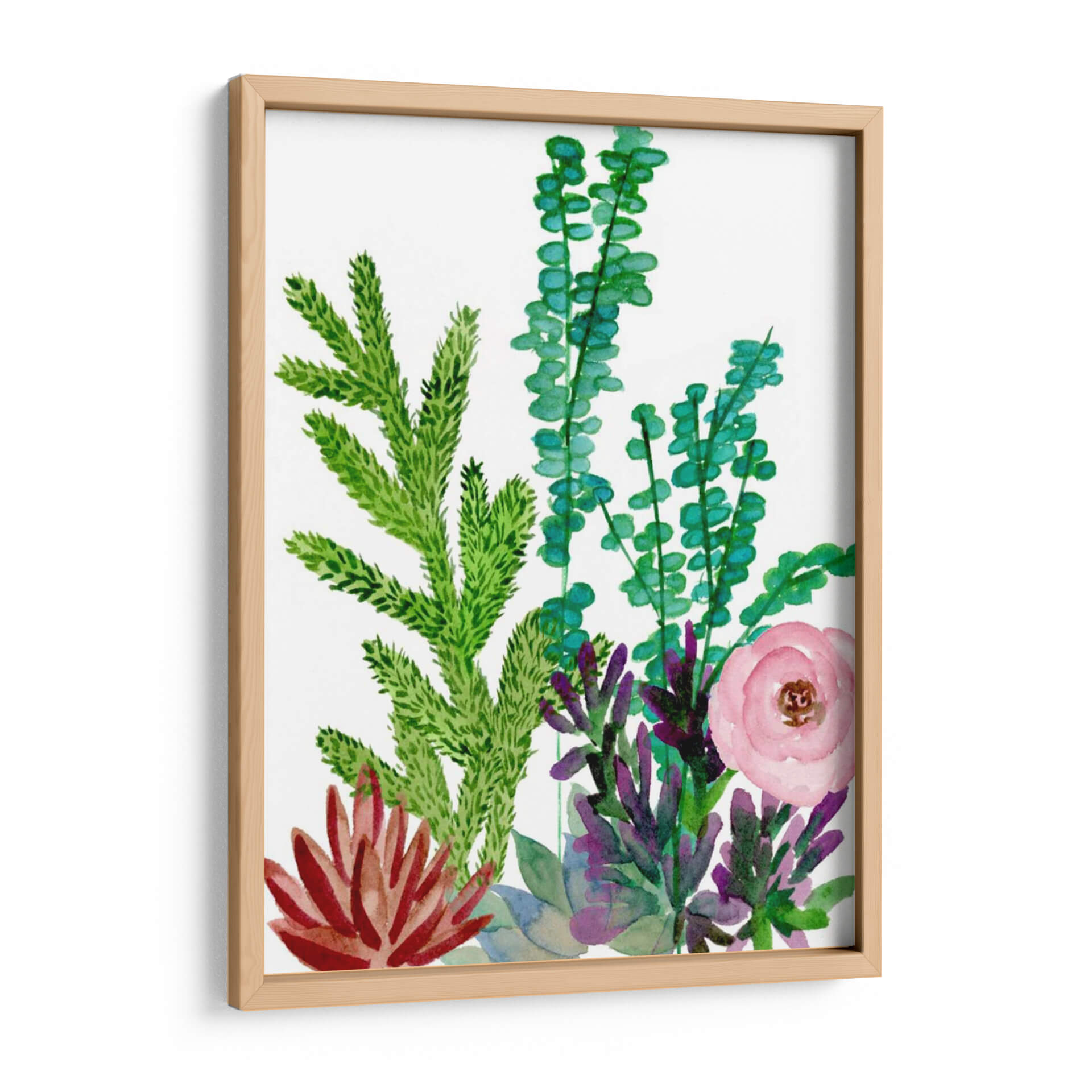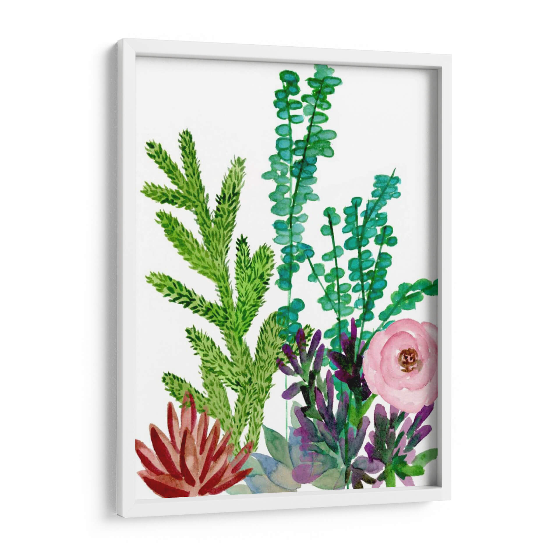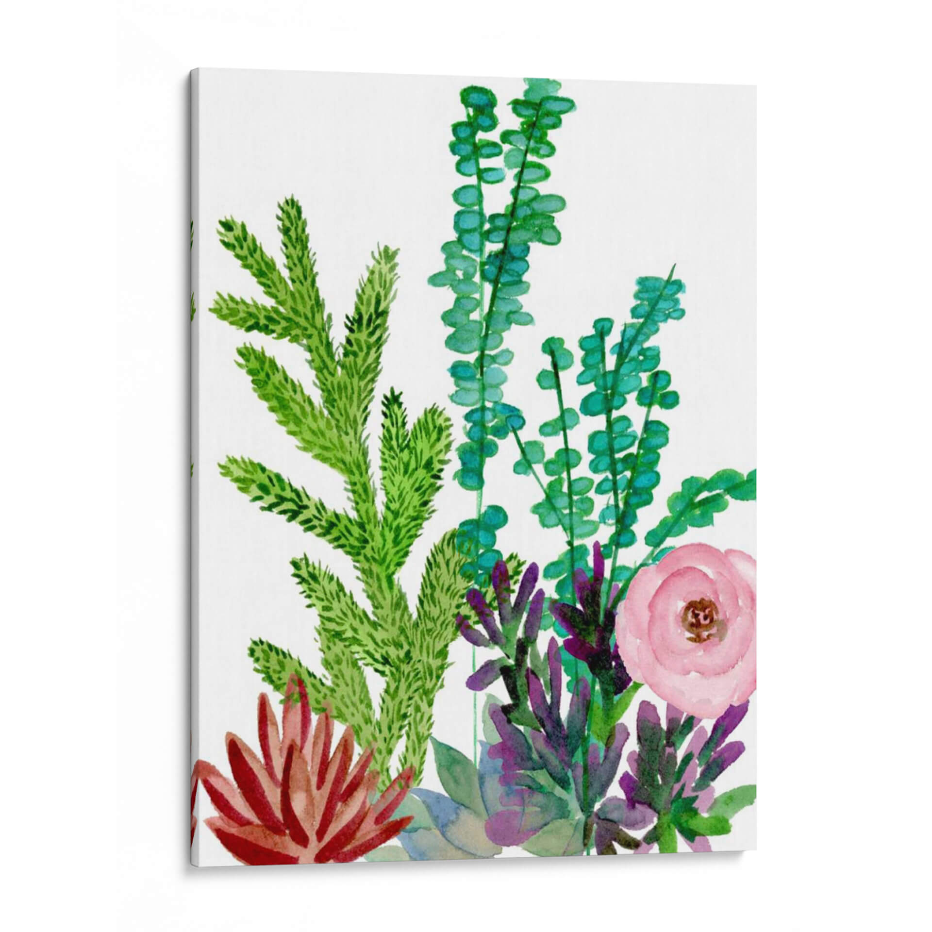 Sumérgete en la frescura y vitalidad de "Little Garden II", una obra de arte contemporáneo de Melissa Wang que captura la esencia de un jardín en plena eclosión. Esta pieza, realizada con delicadeza acuarelada, presenta una vibrante composición de suculentas y flores en tonos verdes, azules, púrpuras y un delicado rosa. Las texturas y la fluidez de la acuarela crean un efecto visual cautivador, invitando a la contemplación y aportando una atmósfera de serenidad y alegría a cualquier espacio. El contraste entre las formas detalladas de las plantas y el fondo blanco crea un efecto de profundidad y ligereza, perfecto para espacios modernos o de inspiración natural. "Little Garden II" es ideal para añadir un toque de color y vida a salones, dormitorios, estudios u oficinas, transformando ambientes cotidianos en oasis de calma y belleza. Cada pincelada evoca la naturaleza exuberante y la delicadeza floral, convirtiendo este cuadro decorativo en una pieza central que inspira tranquilidad y bienestar, celebrando la belleza efímera del mundo botánico a través de una interpretación artística única y contemporánea.