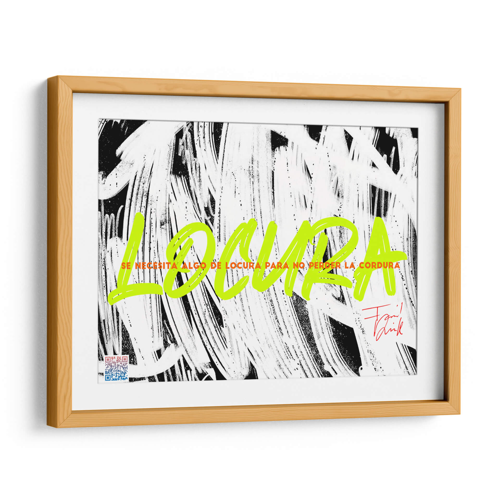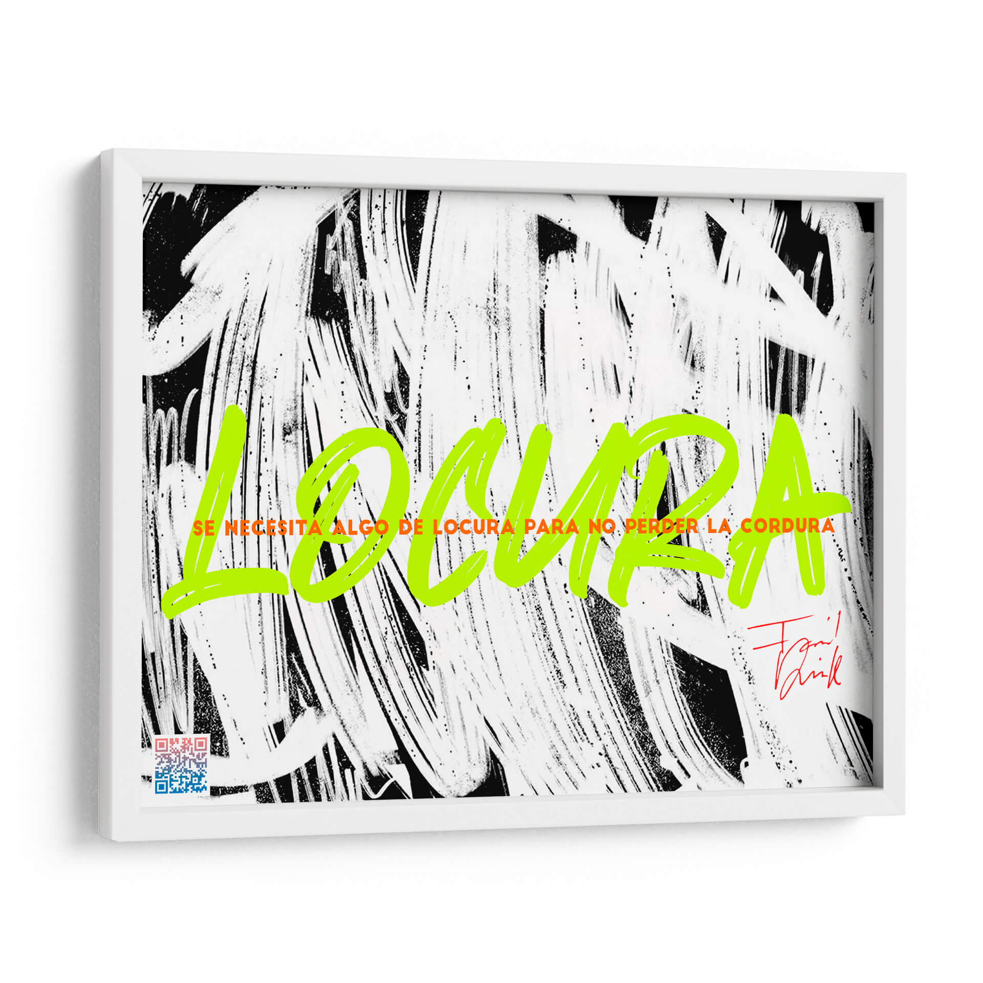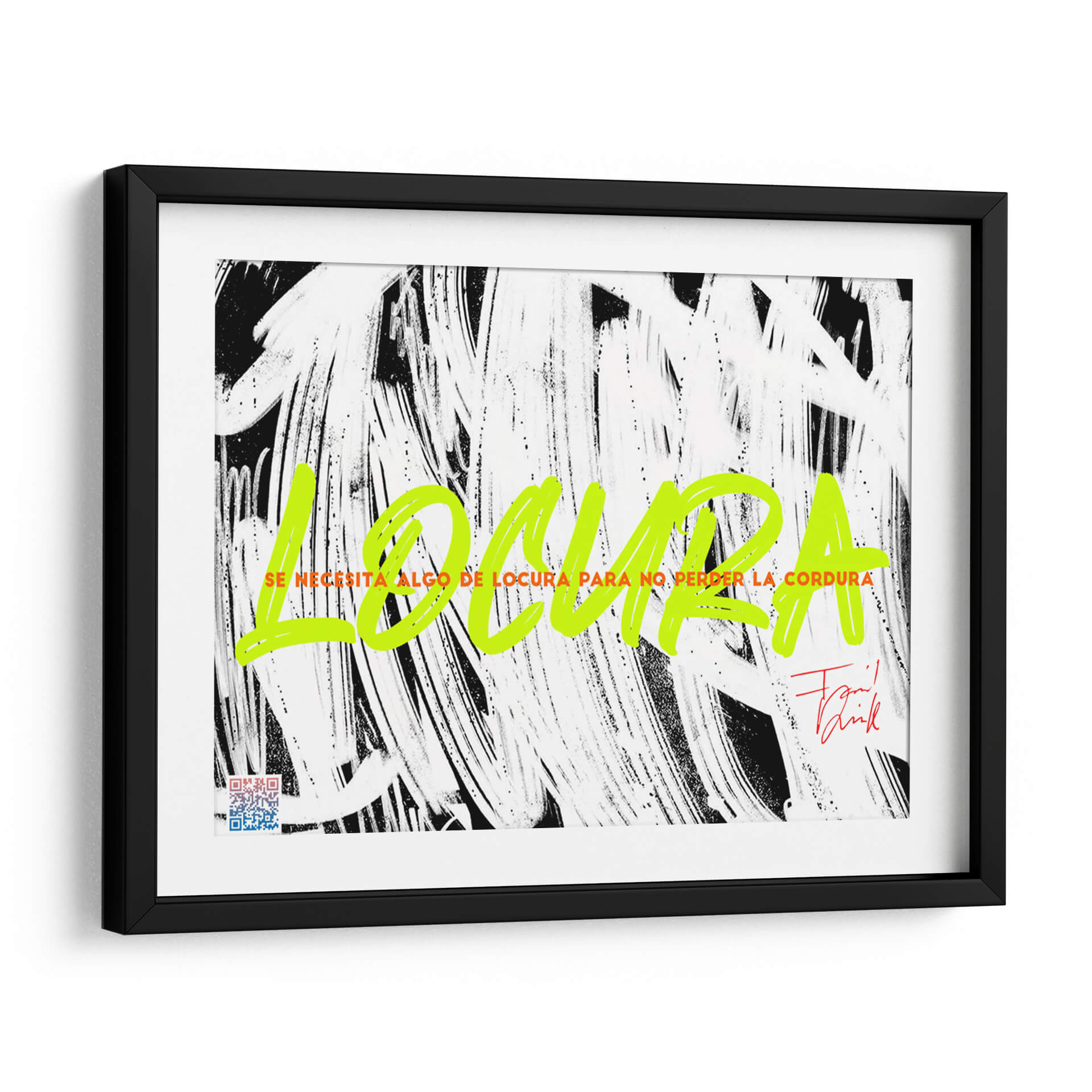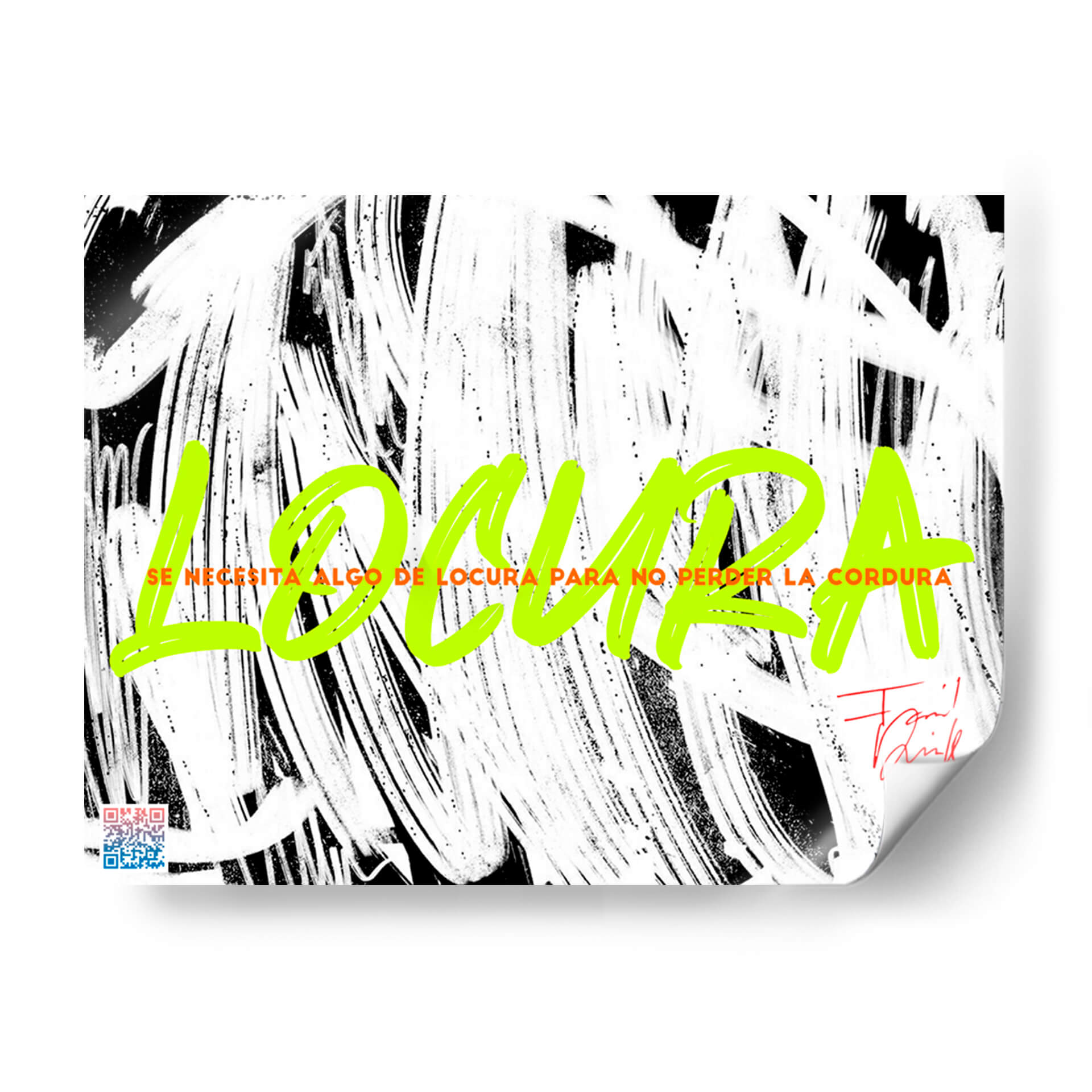 Transforma tu espacio con la audaz y enérgica obra de arte 'Locura 40-30' de Farid Dieck. Este cuadro decorativo presenta un vibrante contraste entre trazos enérgicos de pintura blanca y negra, creando un telón de fondo dinámico. Sobre este lienzo de caos controlado, resalta la palabra "LOCURA" en un llamativo color verde neón, acompañada de la frase "SE NECESITA ALGO DE LOCURA PARA NO PERDER LA CORDURA" en un tono naranja intenso. La composición abstracta y el estilo graffiti le otorgan una personalidad única, ideal para aquellos que buscan un toque contemporáneo y provocador en su decoración. Perfecta para salones modernos, oficinas creativas o cualquier ambiente que desee una inyección de carácter y originalidad. Esta pieza no es solo decoración, es una declaración de intenciones, un recordatorio visual de abrazar la individualidad y la espontaneidad. Añade un punto focal impactante que invite a la conversación y refleje un espíritu audaz en tu hogar u oficina. Su paleta de colores de alto contraste la hace versátil para integrarse en diversas decoraciones, aportando un toque de arte urbano y vanguardista.