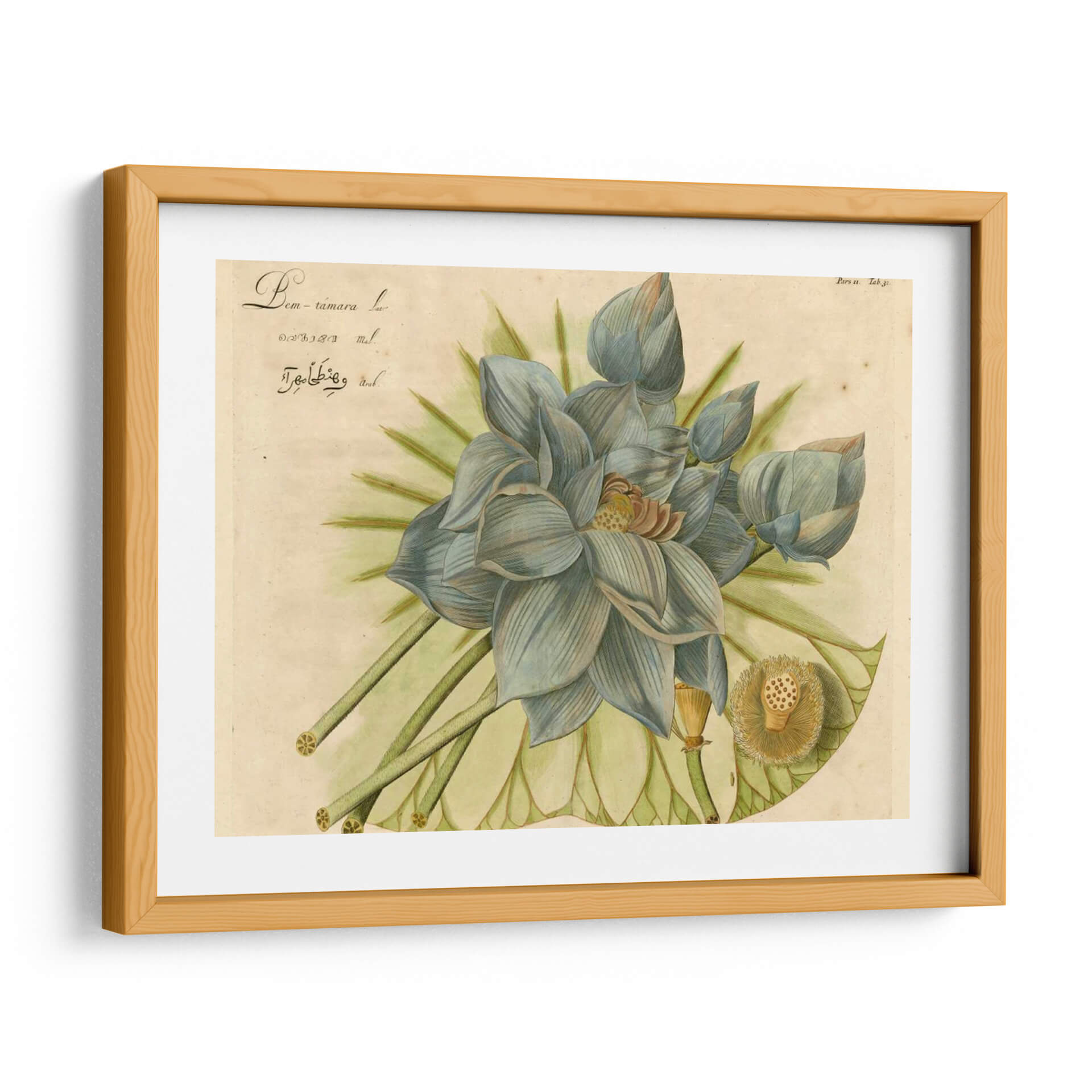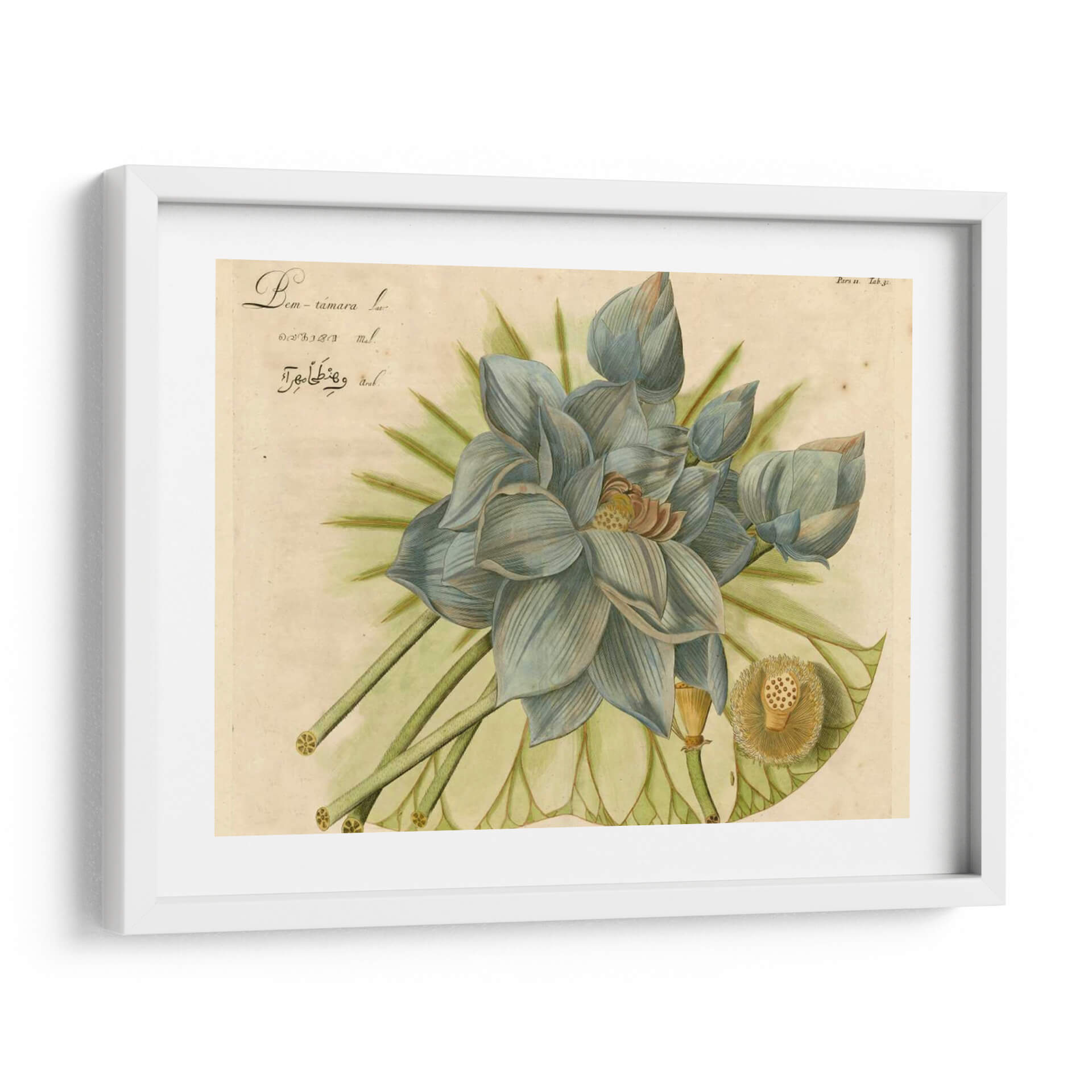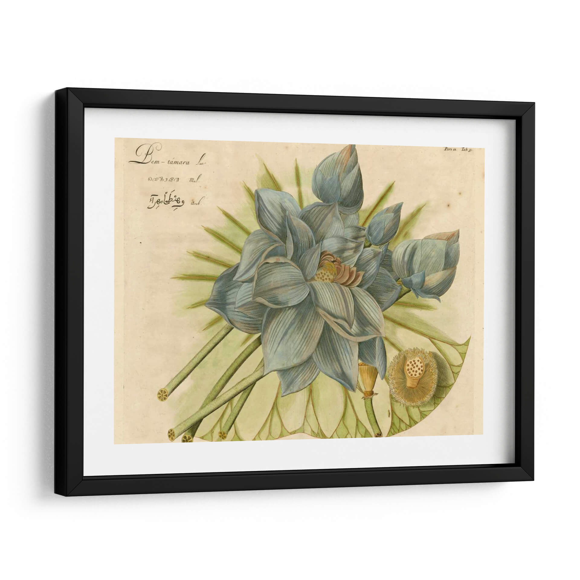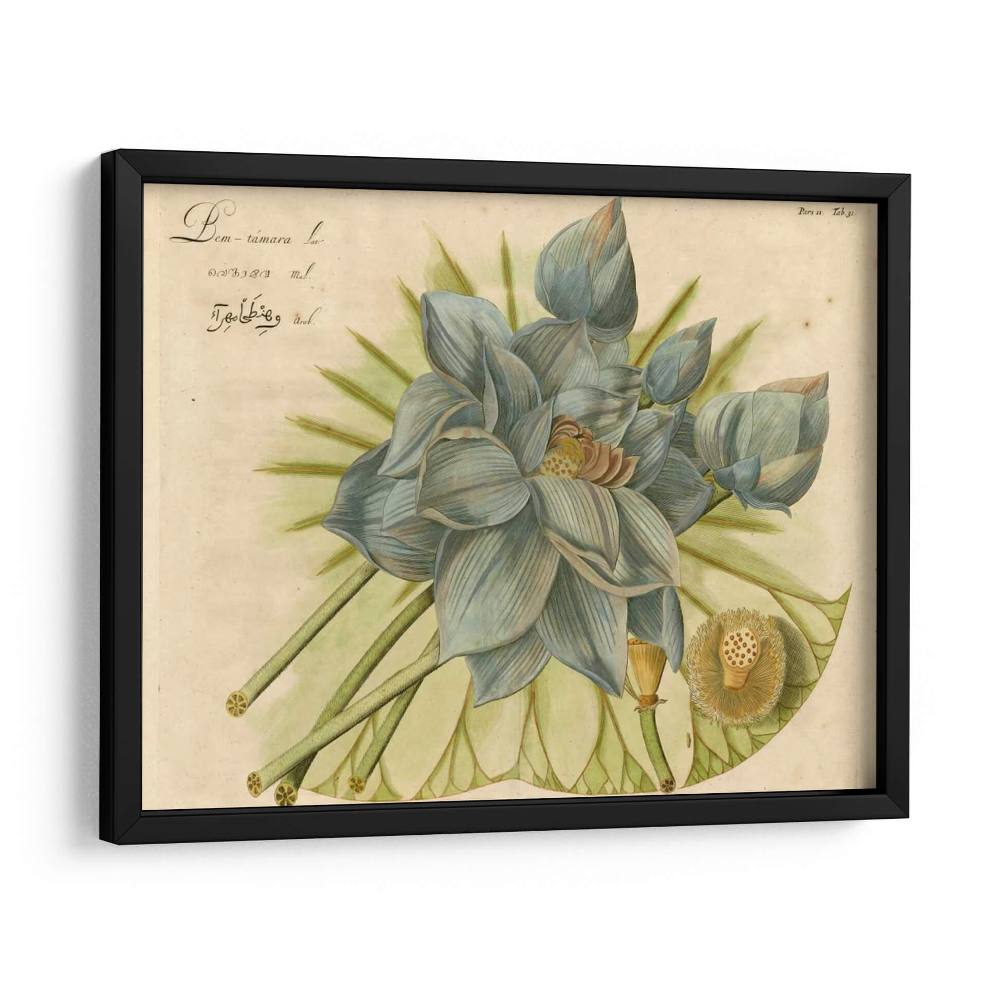 Sumérgete en la serena belleza de "Lotus Flor Azul II", una obra maestra de Vision Studio que captura la delicadeza y el misterio de la flor de loto. Esta pieza, con su paleta de suaves azules grisáceos, verdes etéreos y toques de beige y amarillo terroso, evoca una atmósfera de tranquilidad y contemplación. La composición detallada presenta varias etapas de la flor, desde capullos cerrados hasta una flor completamente abierta, junto con el distintivo receptáculo de semillas, todo ello renderizado con un estilo botánico que recuerda a las ilustraciones científicas clásicas, pero con un toque contemporáneo y artístico. Los pétalos se despliegan con gracia, creando un efecto visual hipnotizante que invita a la introspección. Este cuadro decorativo es perfecto para añadir un punto focal de calma y sofisticación a cualquier espacio, ya sea un dormitorio, una sala de estar, un estudio o una oficina. Su estilo versátil puede complementar tanto decoraciones modernas como clásicas, aportando una elegancia atemporal y un soplo de naturaleza a tu hogar. "Lotus Flor Azul II" no es solo una imagen; es una invitación a la paz interior y a la apreciación de la belleza efímera de la naturaleza, una adición excepcional a tu colección de arte de pared.
