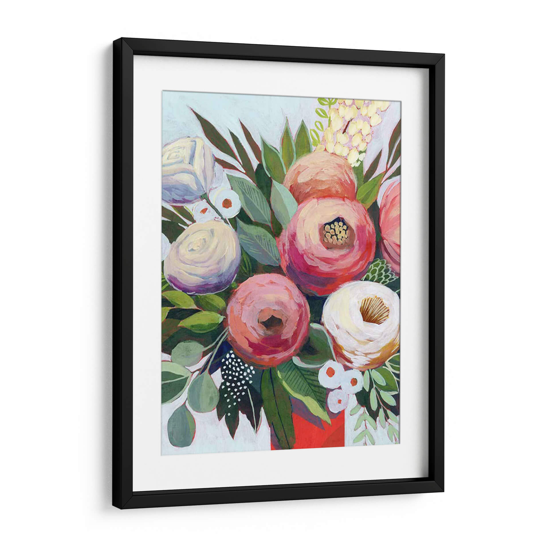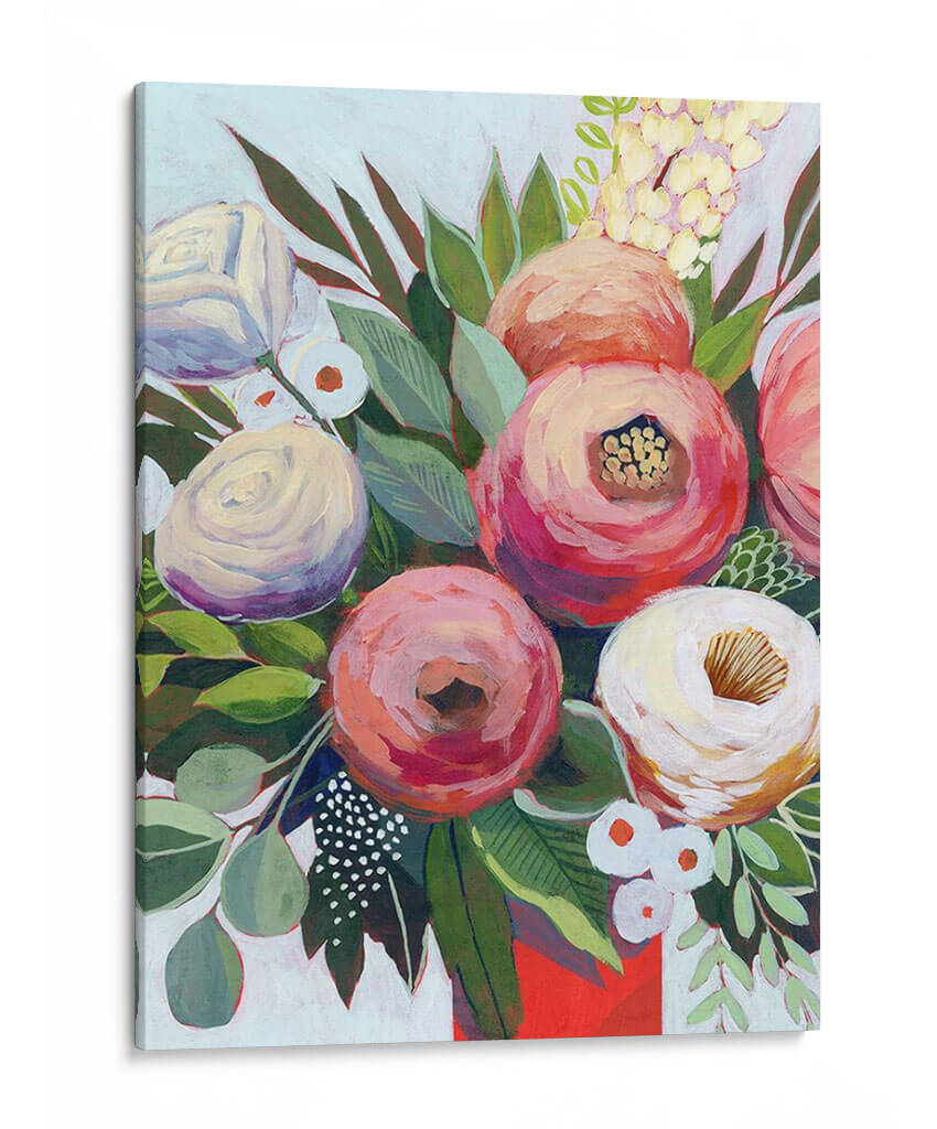 Embellece tu espacio con el vibrante cuadro decorativo 'Lustroso Bouquet II' de Grace Popp. Esta obra de arte captura la esencia de un ramillete exuberante con una explosión de colores y texturas. Las flores, representadas con pinceladas audaces y expresivas, evocan una sensación de vitalidad y alegría. La paleta de colores, que combina rosas intensos, blancos suaves, naranjas cálidos y verdes profundos, crea una composición armoniosa y llena de vida. Los detalles como las hojas estilizadas y los pequeños puntos blancos añaden un toque de intriga y modernidad a la pieza. El estilo, que se inclina hacia lo contemporáneo con influencias impresionistas, permite que la obra sea versátil, adaptándose a diversos entornos decorativos. Imagina este cuadro como el punto focal perfecto para tu sala de estar, aportando un toque de color y sofisticación, o como un elemento que infunda energía positiva en tu oficina. 'Lustroso Bouquet II' no es solo una decoración, es una invitación a la contemplación de la belleza efímera de la naturaleza, plasmada con una sensibilidad artística única. Ideal para quienes buscan añadir un toque de arte floral moderno y lleno de carácter a su hogar. Descubre la obra de Grace Popp y transforma tus paredes en un lienzo de expresión y estilo.