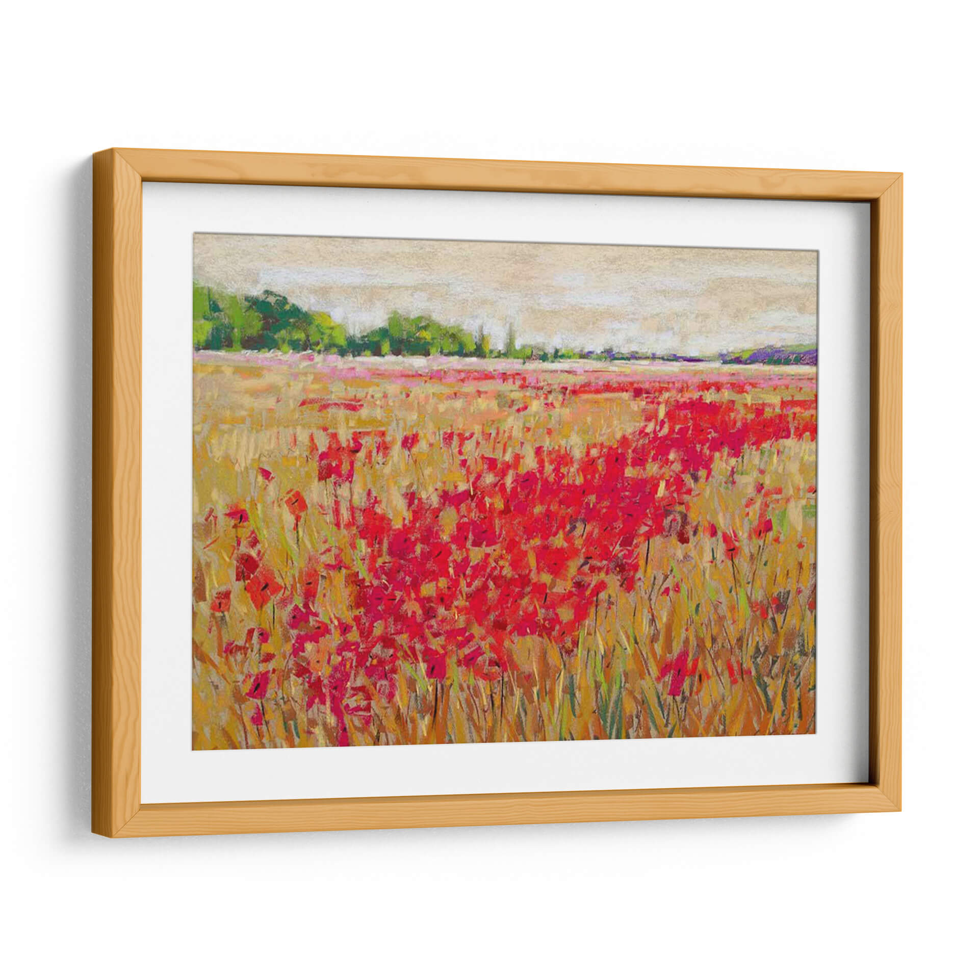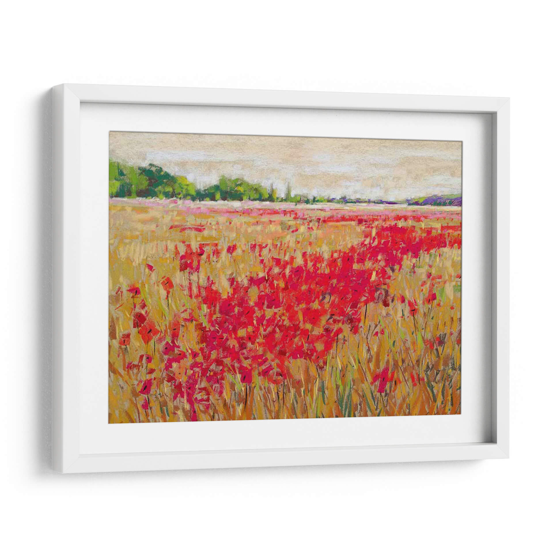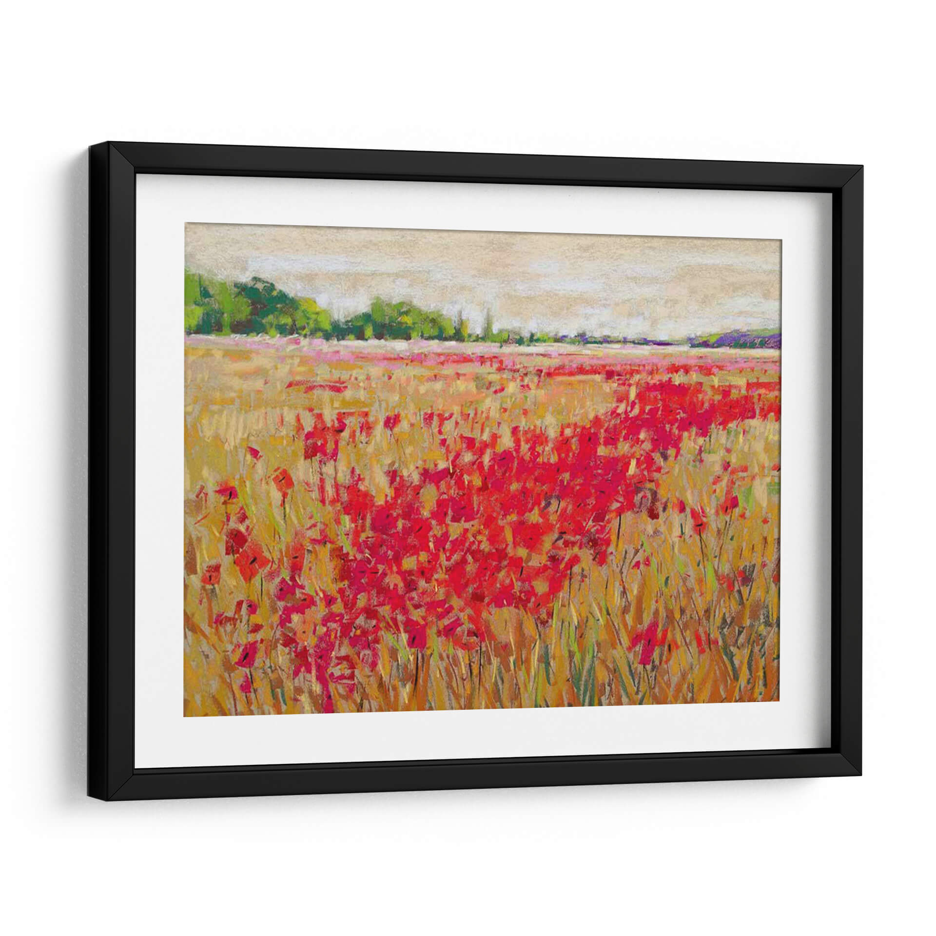 Sumérgete en la vibrante belleza de 'Luz de Noche de Amapolas II', una obra maestra impresionista de Jennifer Gardner que captura la esencia de un campo florido al atardecer. La pintura se caracteriza por su exuberante alfombra de amapolas rojas intensas, que contrastan maravillosamente con los tonos dorados y ocres de la hierba seca, evocando la calidez de un día de verano que se despide. El cielo, representado con pinceladas suaves y etéreas en tonos beige y crema, añade una capa de serenidad y profundidad a la composición. La técnica de Gardner, con su manejo expresivo del color y la textura, da vida a las flores, invitando al espectador a sentir la brisa y el aroma del campo. Este cuadro decorativo es ideal para añadir un toque de color y vitalidad a cualquier espacio, ya sea un salón moderno, un comedor acogedor o un dormitorio que busque un toque de naturaleza y tranquilidad. 'Luz de Noche de Amapolas II' no es solo una pieza de arte de pared, sino una ventana a un paisaje idílico que transformará tu hogar en un refugio de paz y belleza.