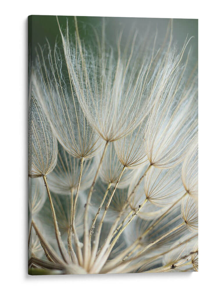 Captura la delicadeza y el movimiento etéreo con "Macro Dandelion II", una obra de arte que transforma un elemento natural en una pieza decorativa sofisticada. Esta fotografía macro de gran detalle revela la intrincada estructura de las semillas de diente de león, sus finos filamentos extendiéndose en un ballet silencioso. La paleta de colores, dominada por tonos suaves y naturales, con un fondo verde apagado que realza la ligereza de las semillas blancas y beige, crea una atmósfera de calma y serenidad. El estilo se inclina hacia lo macro y lo naturalista, con una composición que juega con la profundidad de campo para enfocar la atención en la belleza microscópica de la naturaleza. Es una invitación a la reflexión y a la contemplación, ideal para espacios que buscan transmitir paz y elegancia, como dormitorios, salas de estar o estudios. Este cuadro decorativo aporta un toque de sofisticación orgánica y una sensación de ligereza, perfecto para complementar decoraciones minimalistas, escandinavas o de inspiración natural. "Macro Dandelion II" no es solo una imagen, es una ventana a la poesía visual de lo pequeño, ofreciendo una experiencia estética única y relajante para tu hogar u oficina.