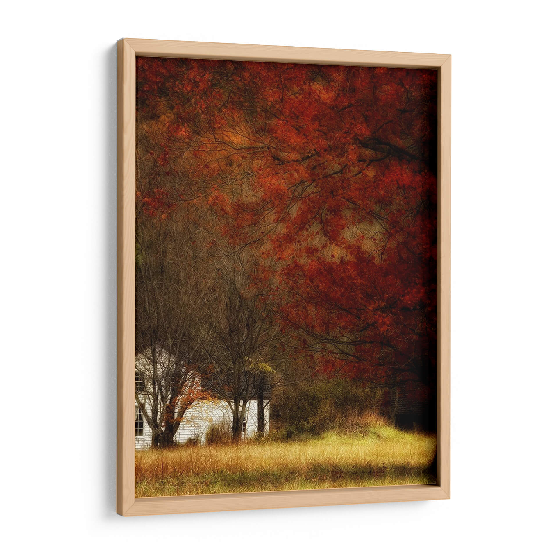 Sumérgete en la nostálgica belleza del otoño con "Más Allá De Octobers Maple", una obra de arte que captura la esencia de una cabaña rústica enmarcada por el vibrante follaje otoñal. Los intensos rojos, naranjas y dorados de las hojas crean un contraste cautivador con la sobria arquitectura de la casa blanca, evocando una sensación de calidez, hogar y la fugacidad de la estación. La luz parece filtrarse a través de las ramas, bañando la escena en una atmósfera etérea y serena. Esta pieza es ideal para aquellos que buscan infundir a sus espacios un toque de naturaleza, tranquilidad y un recordatorio de la belleza cíclica del año. Perfecta para salones, comedores o estudios, este cuadro decorativo añade profundidad y carácter, invitando a la contemplación y al disfrute de los momentos sencillos. Su estilo, que fusiona elementos de realismo con una atmósfera pictórica, lo convierte en un punto focal cautivador que complementa tanto decoraciones rústicas como modernas.