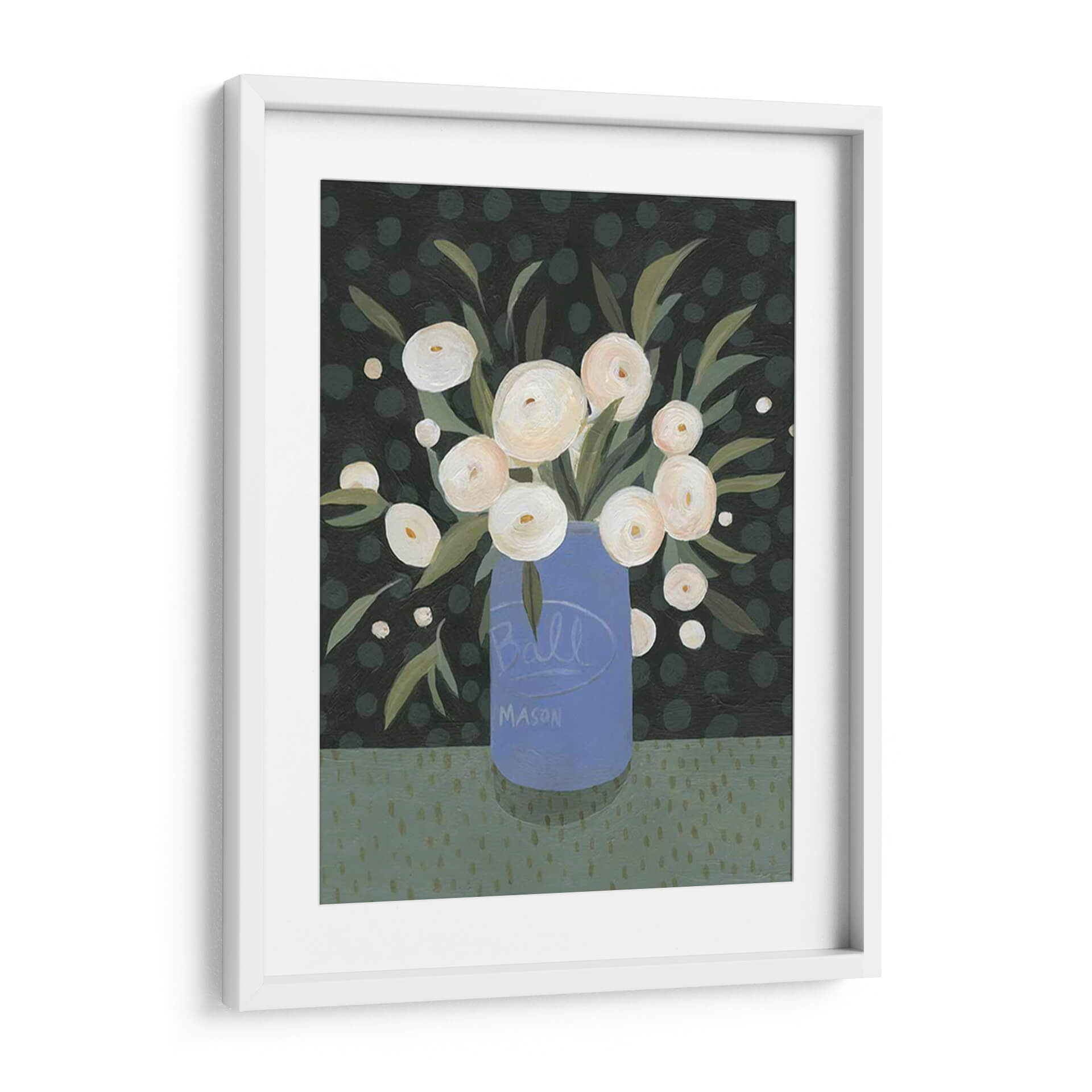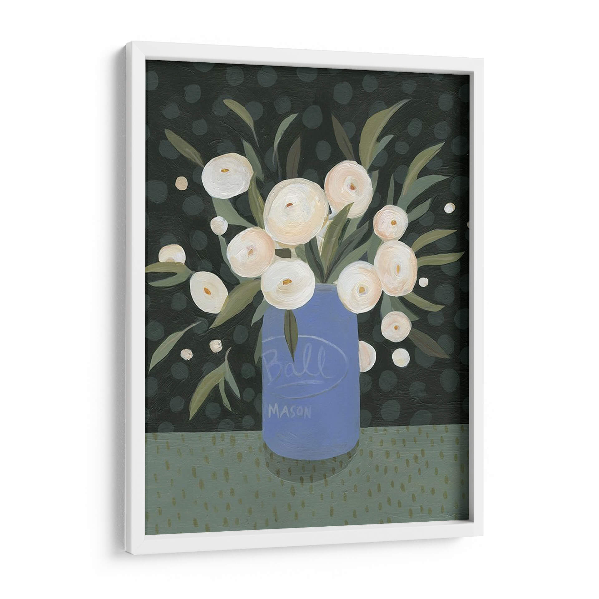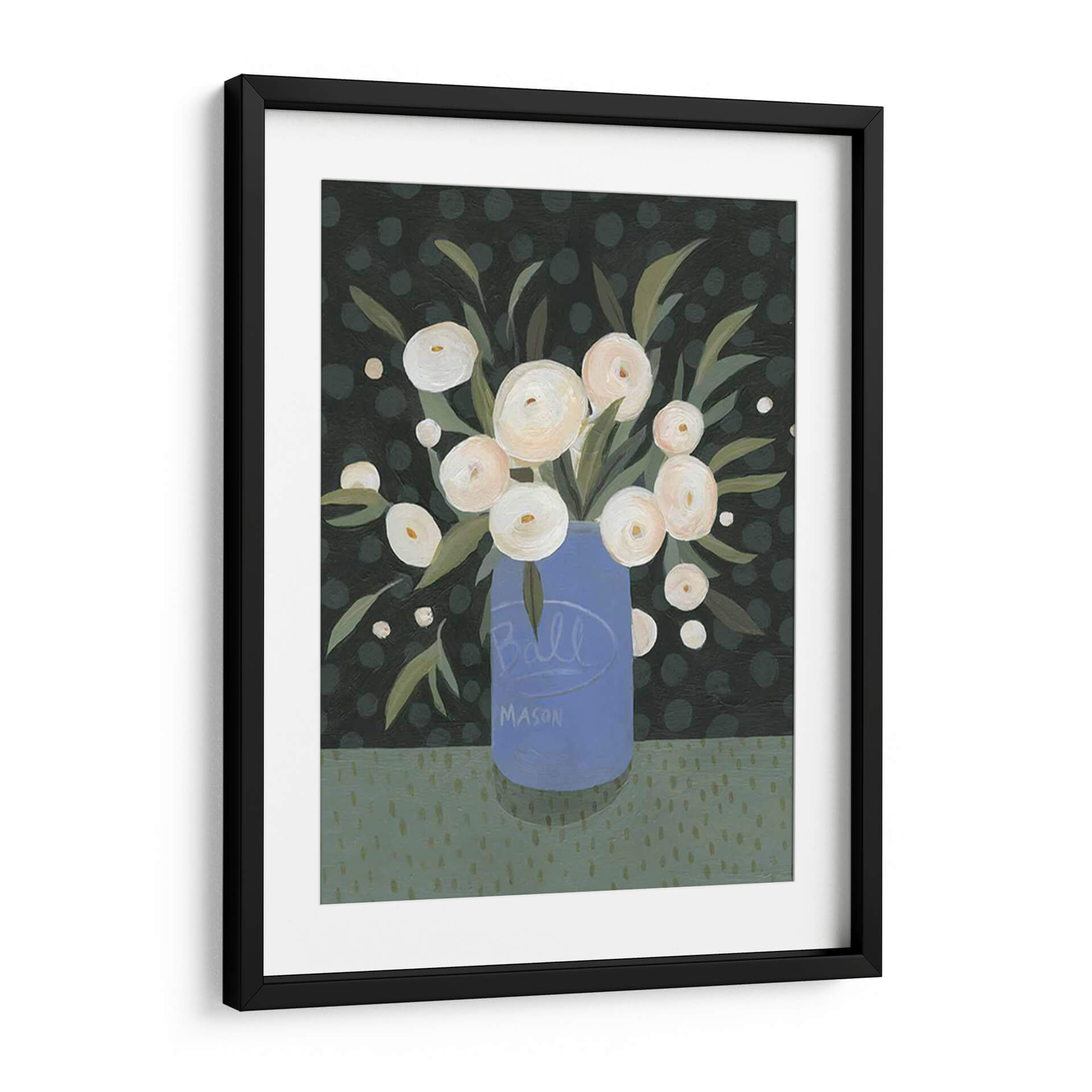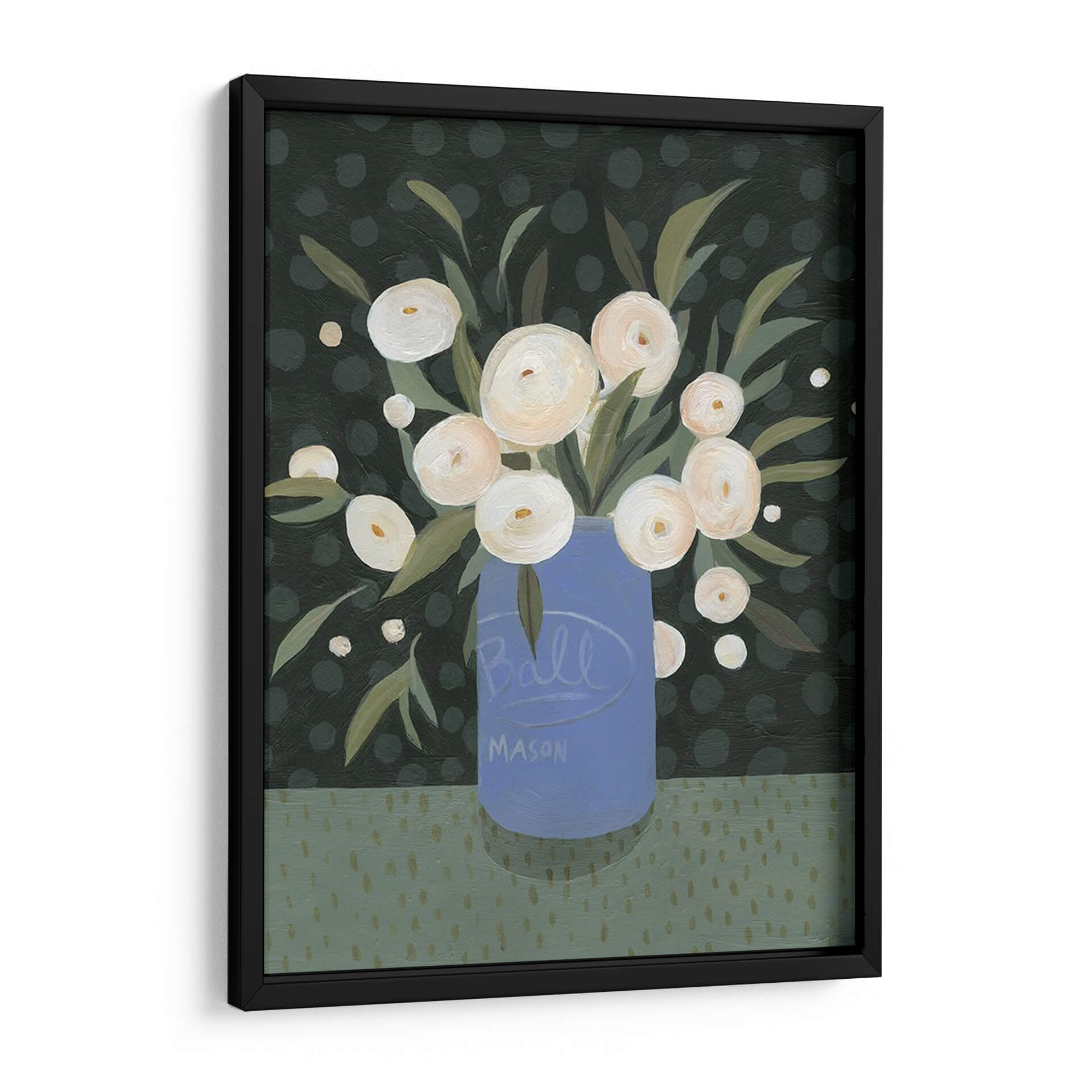 Embellece tu hogar con el encantador cuadro decorativo "Mason Jar Bouquet I" de Emma Scarvey. Esta obra de arte, que presenta un vibrante ramo de flores blancas dispuestas en un icónico tarro Mason azul, irradia una sensación de calidez rústica y elegancia sencilla. La paleta de colores, dominada por verdes profundos y toques de blanco cremoso sobre un fondo salpicado de topos, crea una atmósfera acogedora y serena. El estilo artístico, con sus pinceladas audaces y su composición encantadora, aporta un toque contemporáneo a la estética campestre. Cada flor parece capturar la luz, invitando a la contemplación y a la apreciación de la belleza natural. Este cuadro decorativo es perfecto para añadir un punto de interés visual a cualquier habitación, ya sea en la sala de estar, el comedor o incluso en un espacio de trabajo que necesite un toque de frescura y color. Su diseño atemporal y su evocadora temática lo convierten en una pieza versátil que complementa una amplia gama de estilos decorativos, desde el rústico moderno hasta el contemporáneo chic. Deja que "Mason Jar Bouquet I" transforme tu espacio en un refugio de tranquilidad y estilo, celebrando la sencillez y la alegría de las flores.
