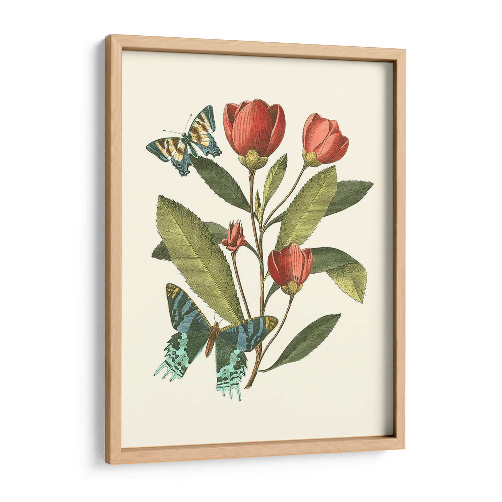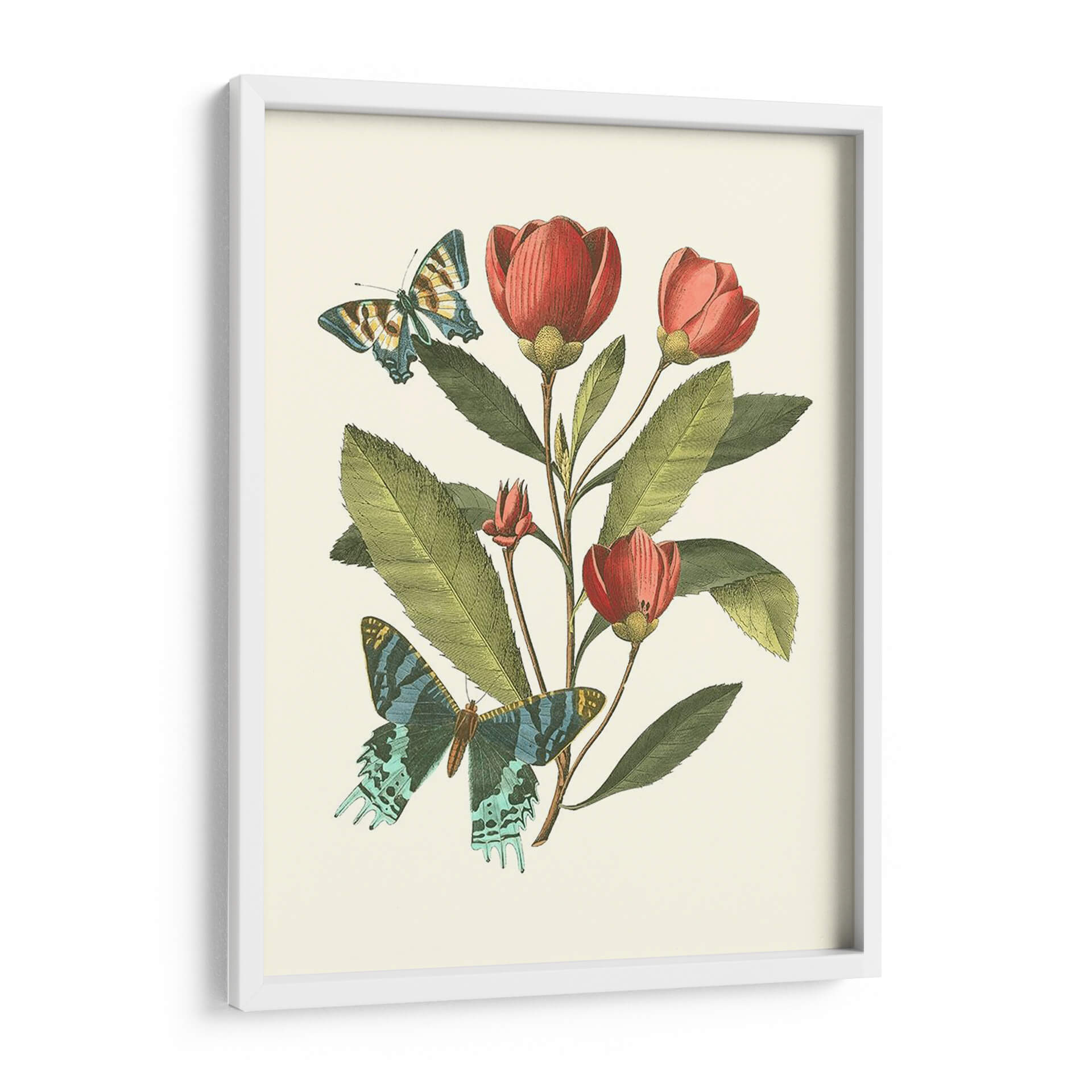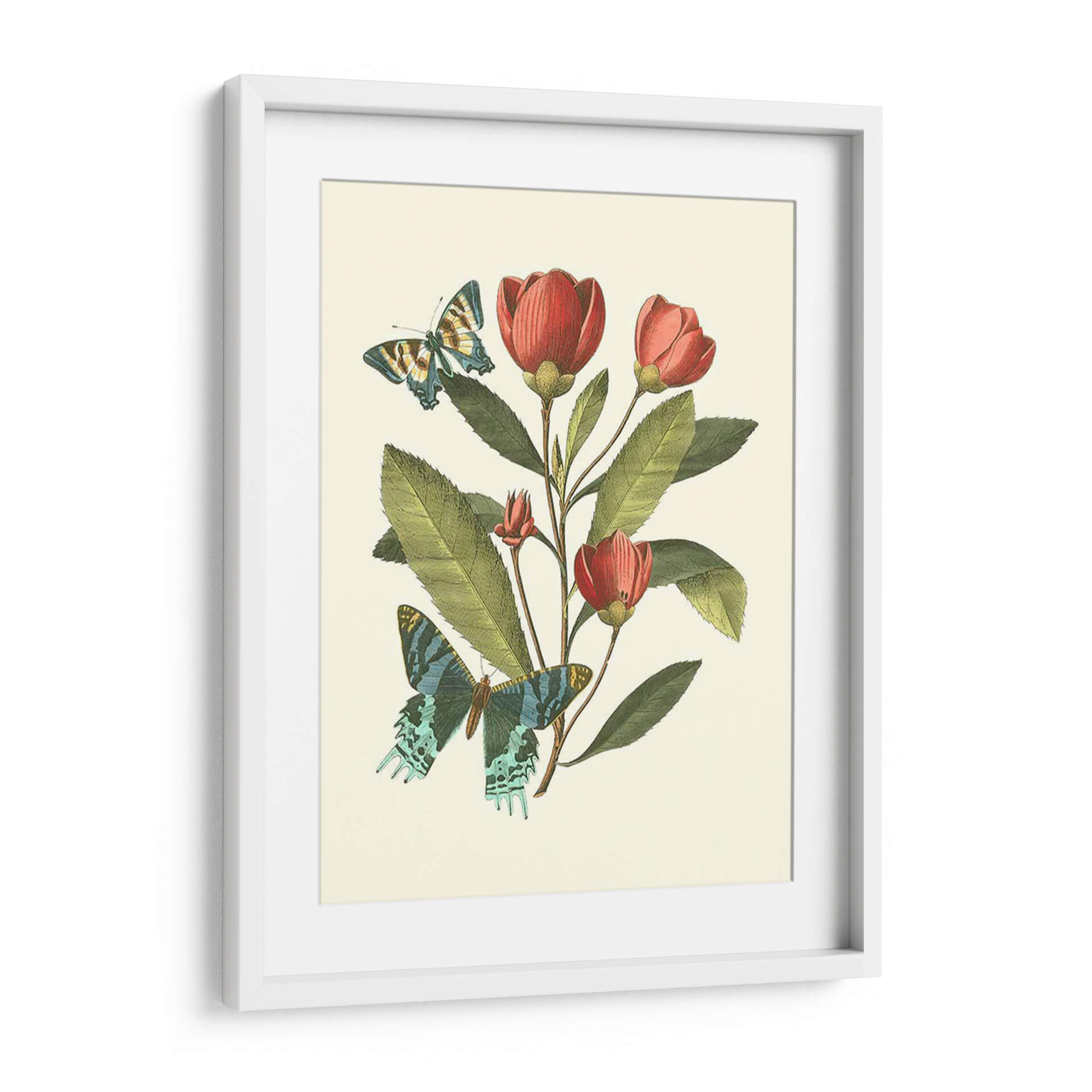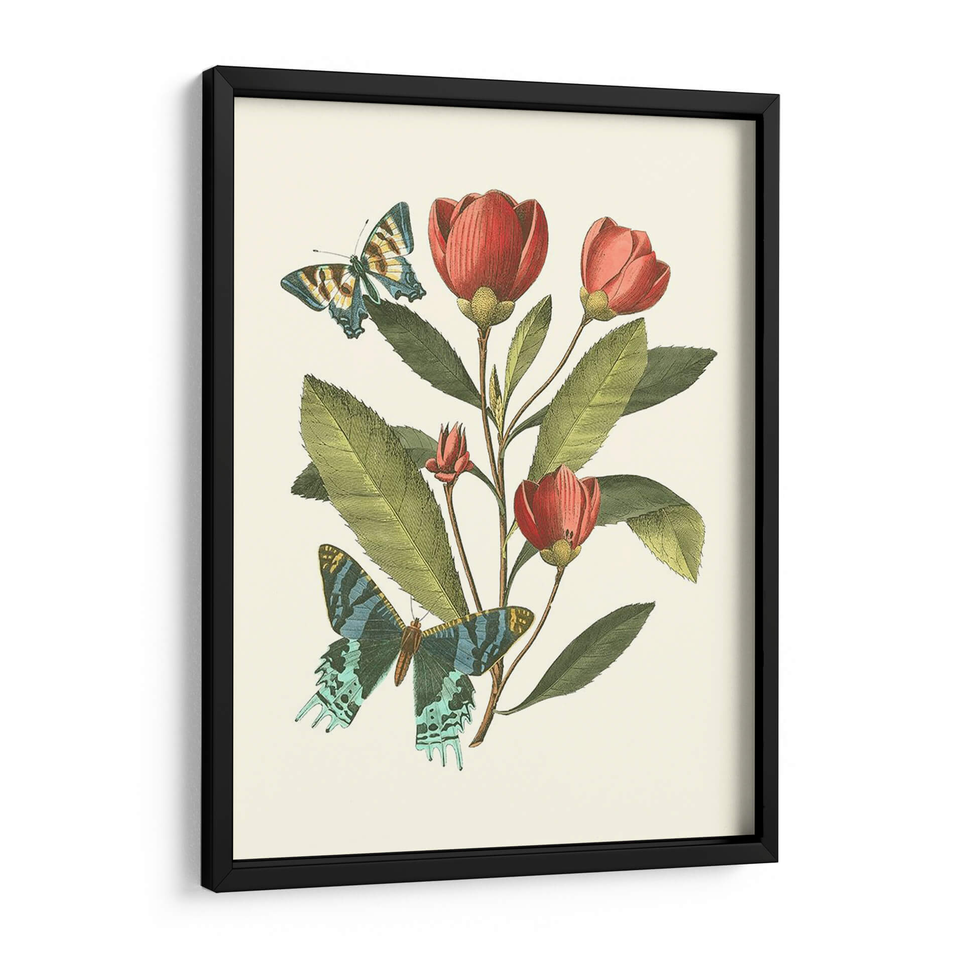 Sumérgete en la delicadeza y el encanto de "Midsummer Floral II", una obra de arte que captura la efímera belleza de la naturaleza. Este cuadro decorativo presenta un estudio botánico exquisito, donde vibrantes flores en tonos rojos y rosados emergen de un follaje verde exuberante, rodeadas por la etérea presencia de dos mariposas. La paleta de colores, rica y armoniosa, evoca una sensación de calma y serenidad, mientras que el detallado trabajo artístico recuerda a las ilustraciones científicas clásicas, aportando un toque de sofisticación atemporal. Ideal para quienes buscan infundir sus espacios con vida y color, esta pieza es perfecta para dar un acento natural y elegante a salones, dormitorios o estudios. Imagina cómo este cuadro transformará tu hogar, añadiendo un punto focal de belleza orgánica que inspira tranquilidad y conexión con el mundo natural. "Midsummer Floral II" no es solo decoración, es una ventana a un jardín idílico, un recordatorio constante de la maravilla que nos rodea. Añade esta obra maestra a tu colección y deja que su belleza florezca en tu vida.