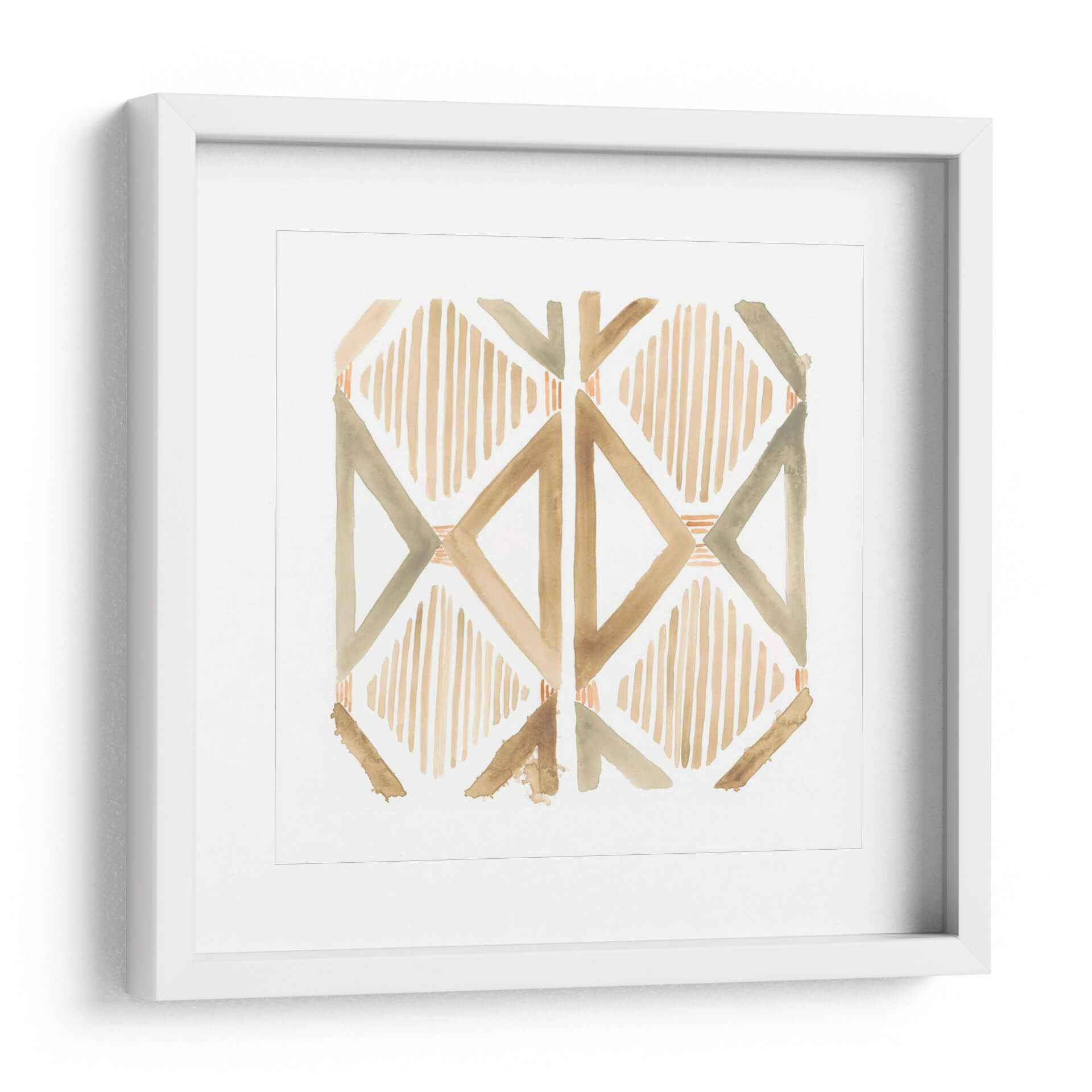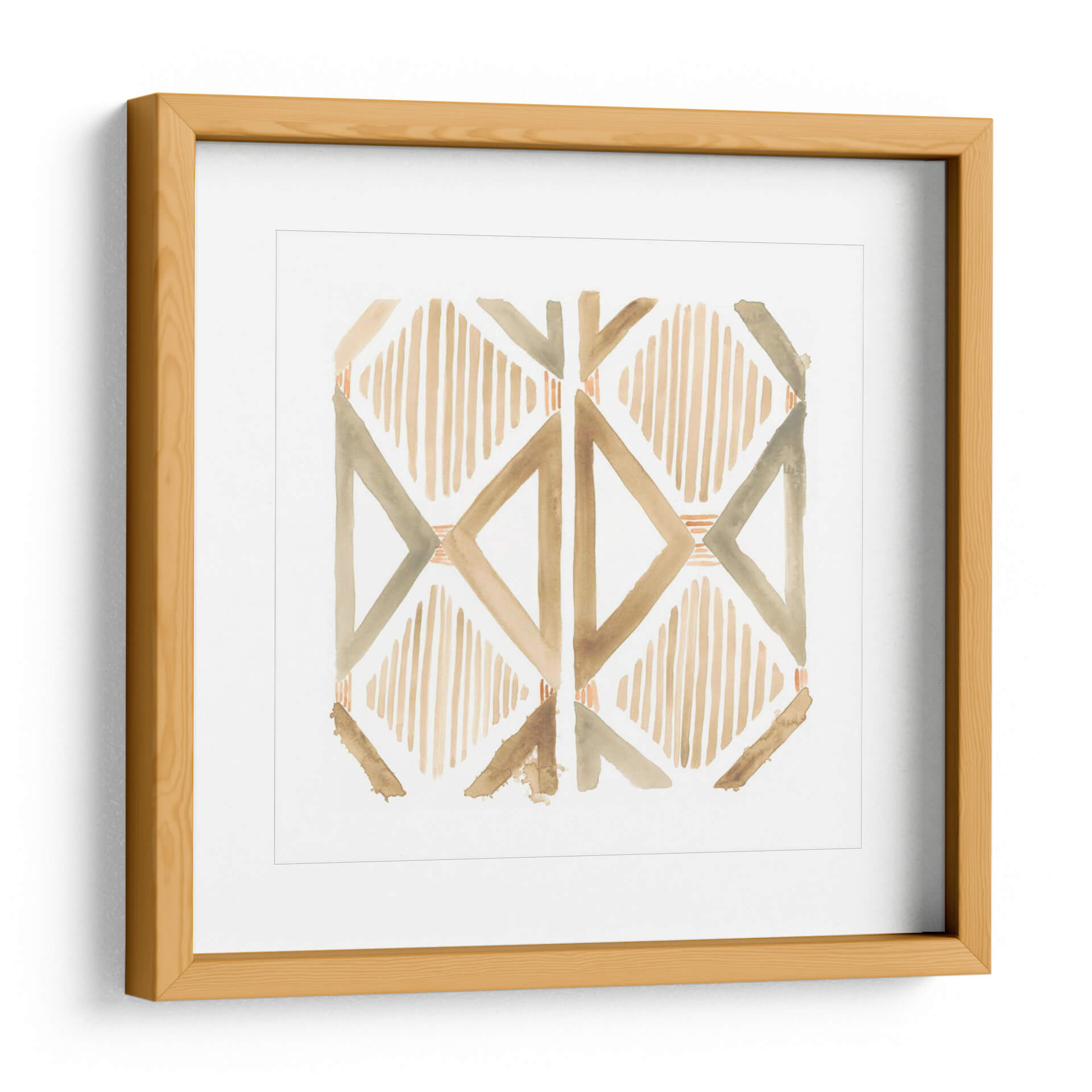 Sumérgete en la calidez y la textura de "Mombasa Mecorios Iv", una obra de arte contemporáneo de June Erica Vess que evoca la serenidad de la naturaleza y la sofisticación de los patrones geométricos. Esta pieza abstracta, dominada por una paleta de tonos tierra, beige y sutiles toques de ocre, crea una atmósfera de tranquilidad y equilibrio. Las líneas suaves y las formas geométricas interconectadas, ejecutadas con una técnica que recuerda a la acuarela, aportan una sensación de movimiento orgánico y profundidad. El diseño, inspirado en motivos tribales y elementos naturales, es lo suficientemente versátil como para complementar una amplia gama de estilos decorativos, desde el bohemio y rústico hasta el moderno y minimalista. "Mombasa Mecorios Iv" es ideal para transformar cualquier espacio, ya sea un salón acogedor, un estudio sereno o una oficina contemporánea, en un santuario de paz y estilo. Su composición equilibrada y su paleta de colores neutros la convierten en una elección perfecta para aquellos que buscan añadir una dimensión artística sutil pero impactante a su hogar u oficina. Este cuadro decorativo es una invitación a la contemplación y un testimonio del poder del arte abstracto para inspirar y armonizar ambientes.