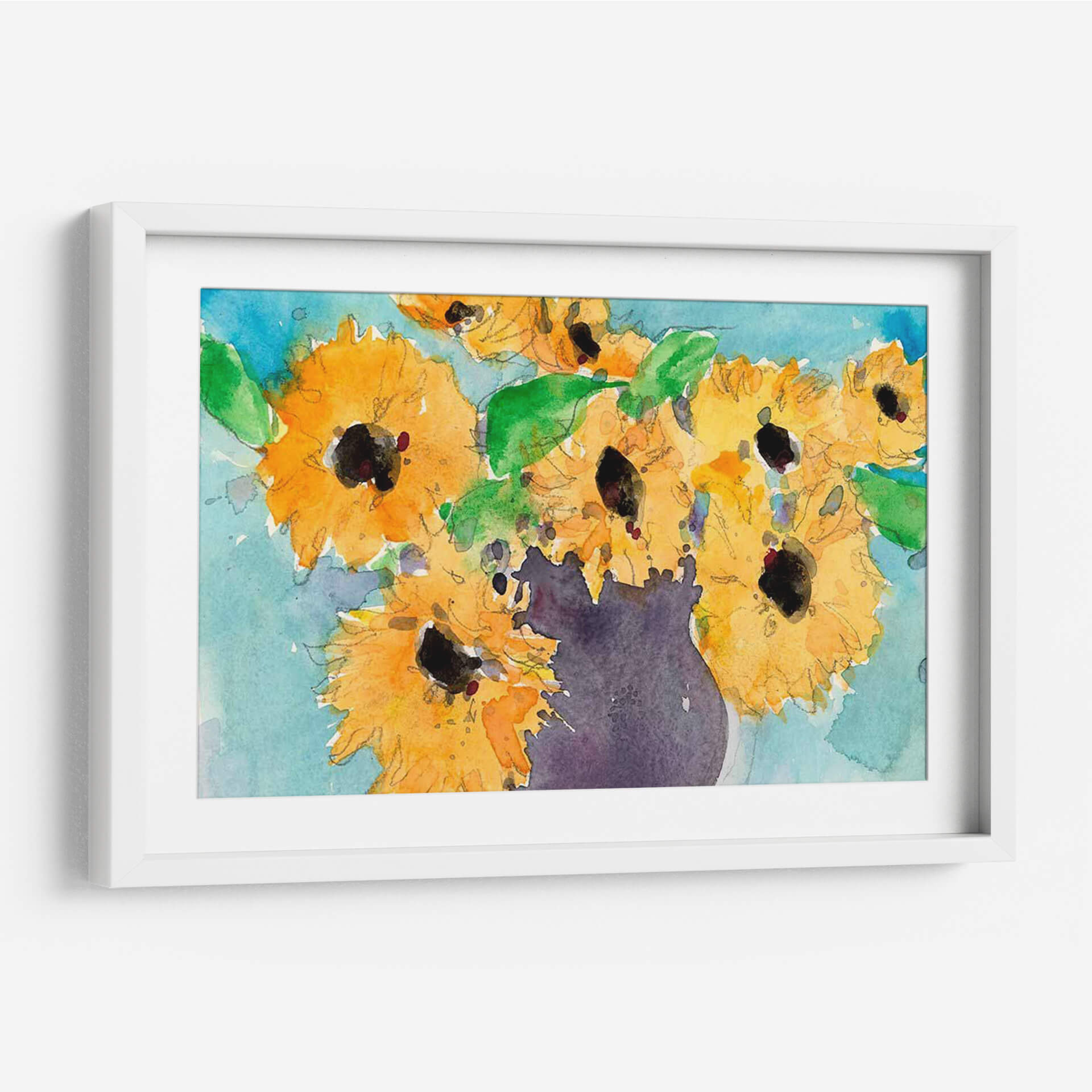 Captura la esencia vibrante de la naturaleza con "Momento De Girasol I", una obra de arte que irradia calidez y alegría. Este cuadro decorativo, pintado por Samuel Dixon, presenta una vívida interpretación de girasoles en plena floración, capturados con una técnica de acuarela que evoca ligereza y espontaneidad. Los intensos tonos amarillos de los pétalos contrastan magistralmente con los verdes frescos de las hojas y el fondo azul sereno, creando una composición dinámica y llena de vida. El jarrón de color púrpura oscuro añade un toque de sofisticación y ancla la pieza, mientras que las pinceladas sueltas transmiten una sensación de movimiento y energía. Ideal para añadir un punto focal luminoso a salones, comedores o estudios, este cuadro decorativo invita a la contemplación y celebra la belleza efímera de las flores. Su estilo contemporáneo y alegre lo convierte en una elección perfecta para aquellos que buscan infundir a sus espacios vitales optimismo y un toque de color inspirador. "Momento De Girasol I" no es solo una decoración, es una celebración de la luz y la vida que transformará cualquier ambiente.
