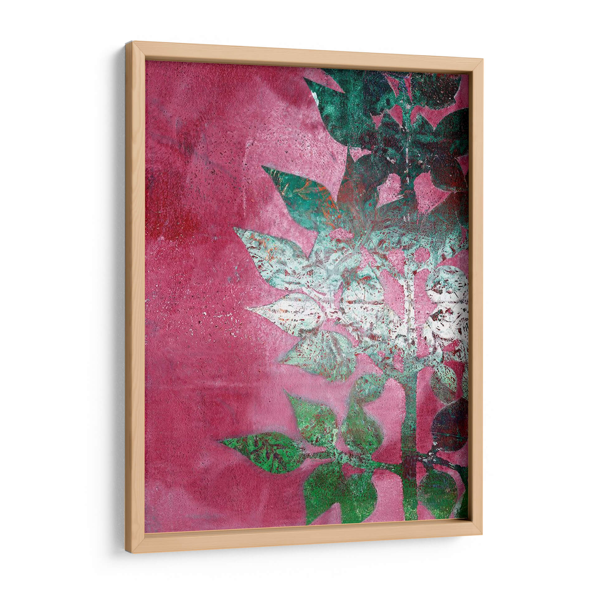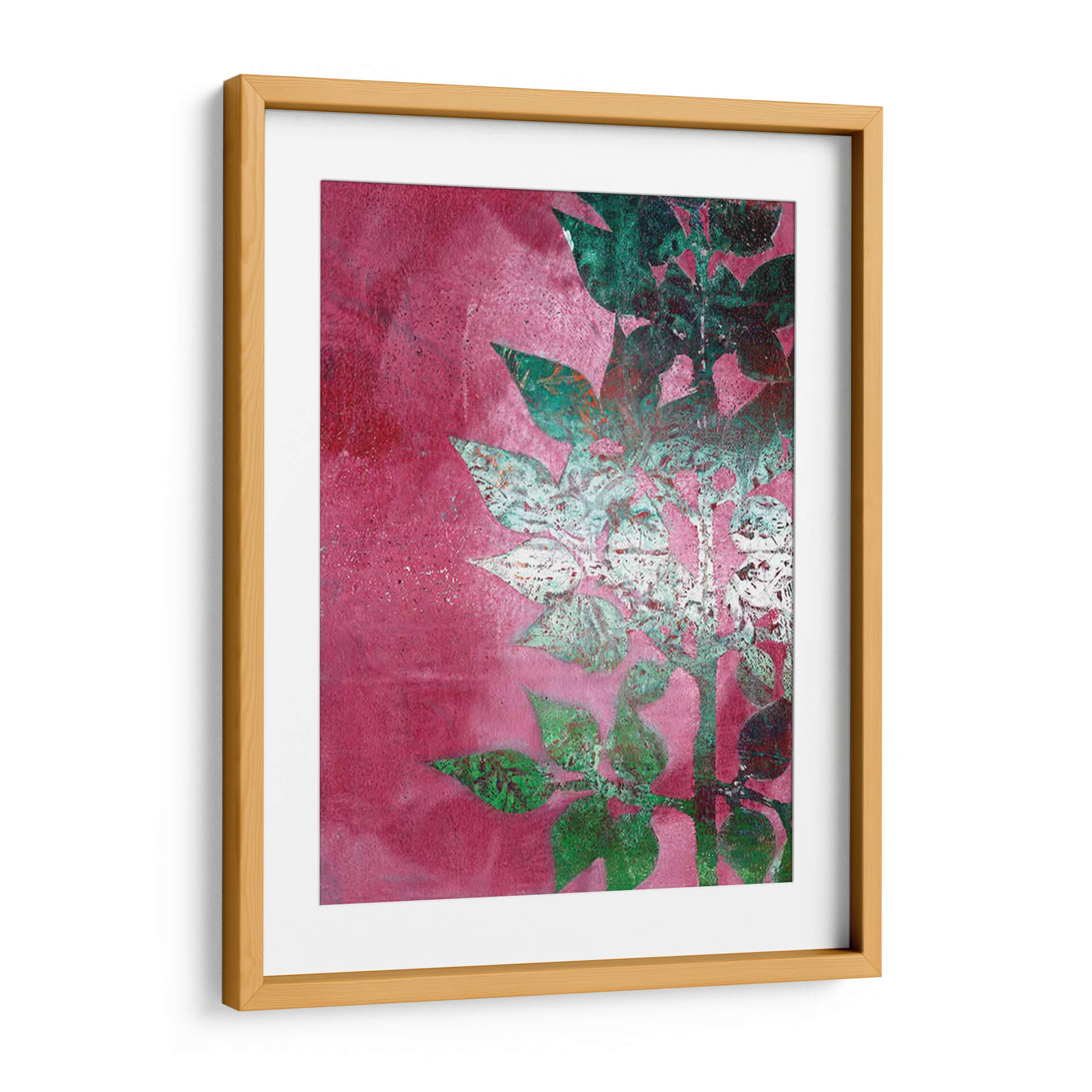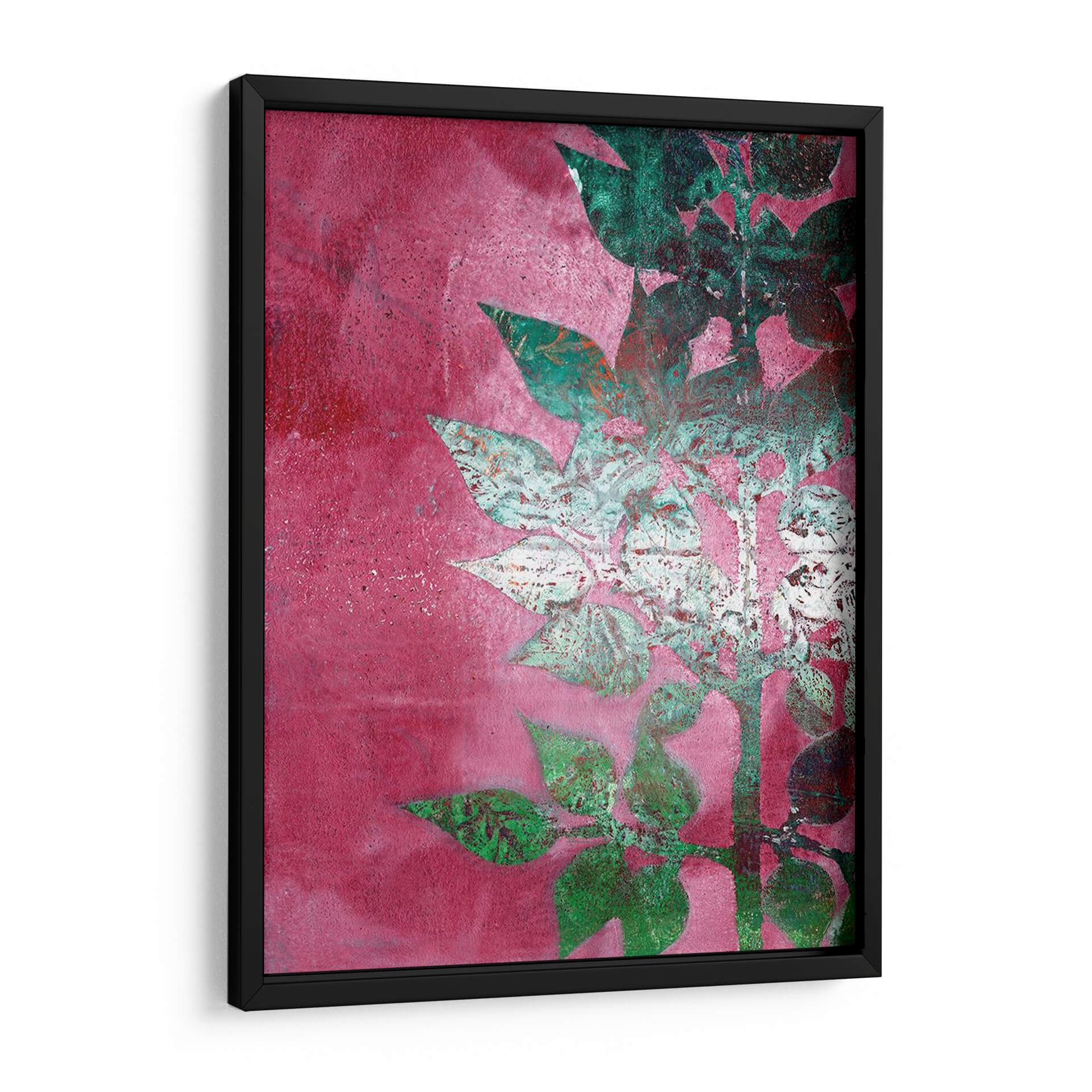 Este evocador cuadro decorativo, titulado 'Mono Rama I' y creado por Regina Moore, te transporta a un jardín botánico en pleno florecimiento con un toque contemporáneo. La obra presenta una silueta estilizada de ramas y hojas que emergen sobre un vibrante fondo texturizado en tonos fucsia y magenta. Las hojas, representadas con una técnica mixta que combina un blanco desgastado con destellos de verde esmeralda y toques de óxido, crean un contraste fascinante con el intenso fondo. La composición vertical y el juego de luces y sombras añaden profundidad y dinamismo a la pieza, invitando a la contemplación. Ideal para añadir un punto de color y sofisticación a cualquier espacio, desde una sala de estar moderna hasta un dormitorio sereno o una entrada acogedora. 'Mono Rama I' es perfecto para quienes buscan arte abstracto con inspiración natural que aporte energía y vitalidad al hogar, convirtiéndose en un punto focal que inspira y embellece tu entorno. Descubre la belleza de la naturaleza reinterpretada a través del arte contemporáneo.