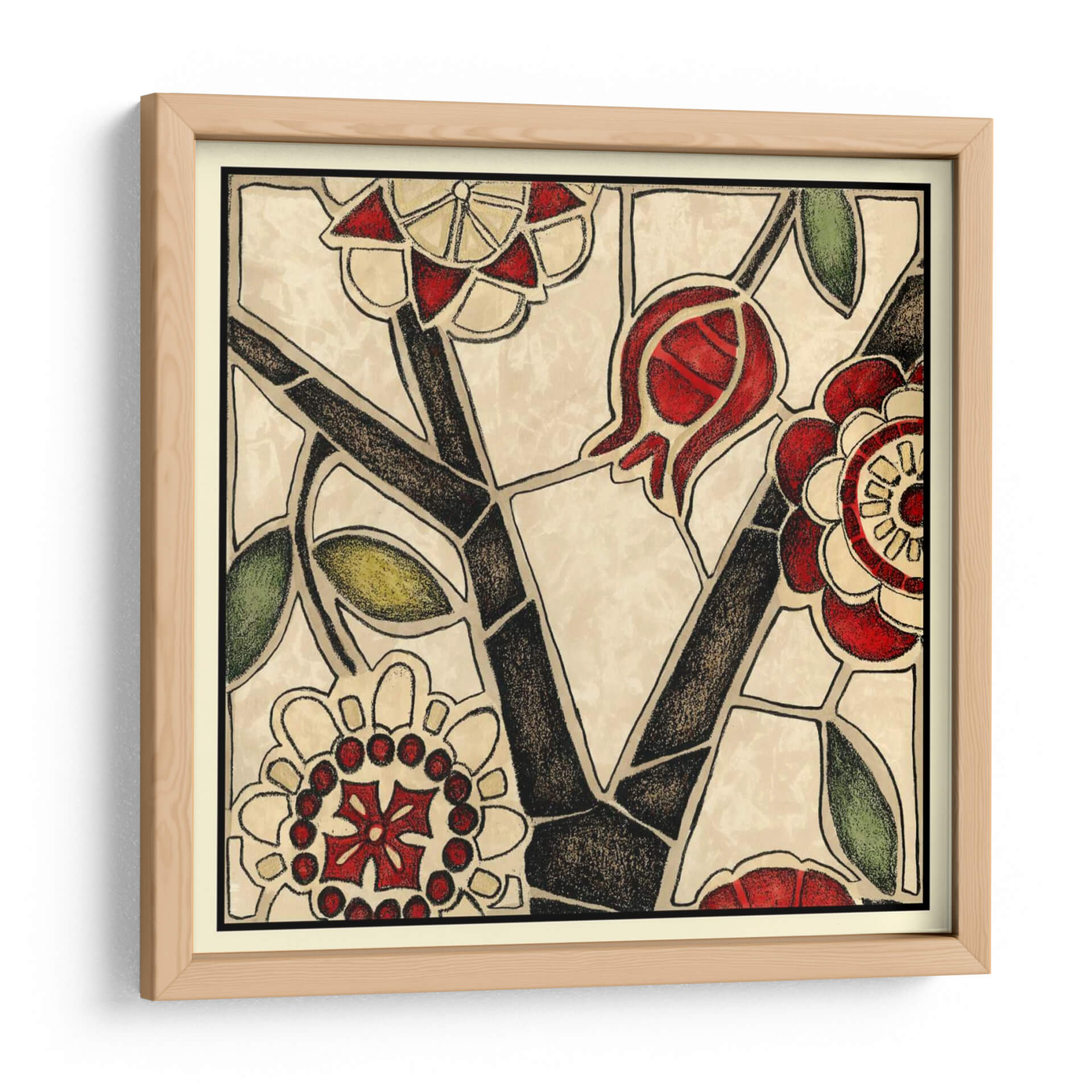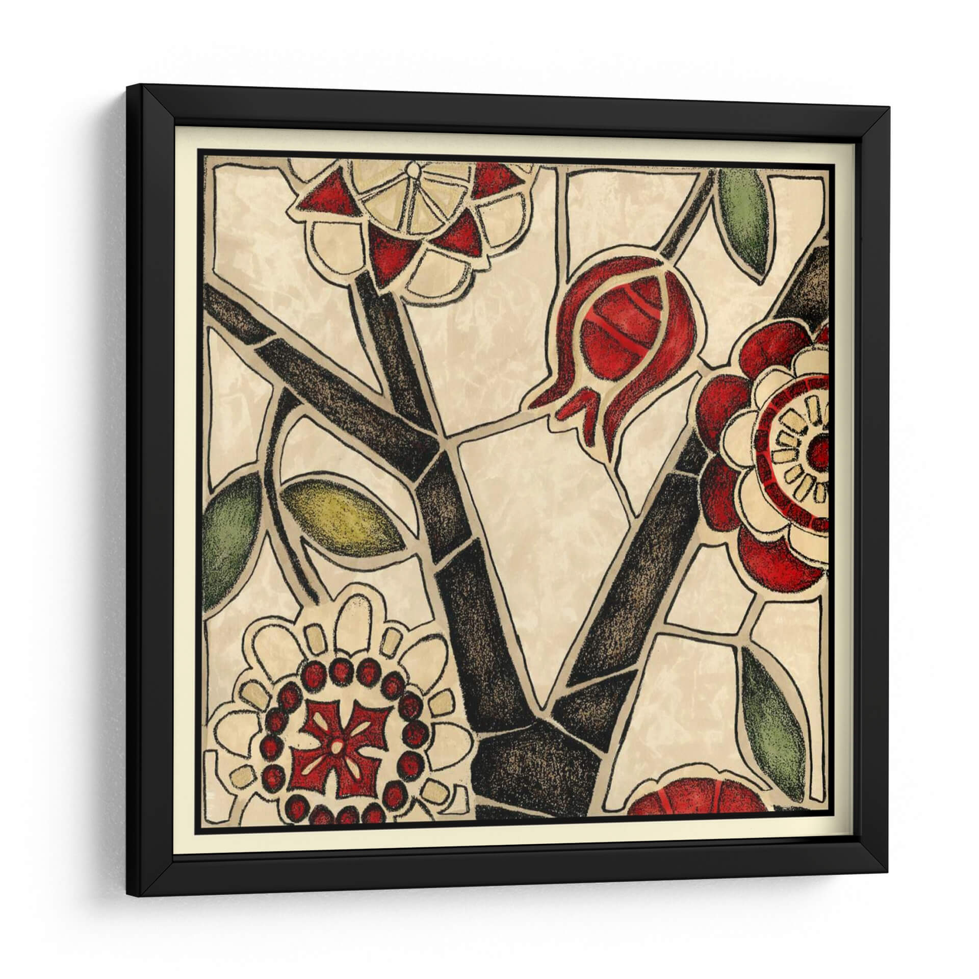 Emb uevoce tu hogar con la cautivadora obra de arte "Mosaico Floral I" de Megan Meagher. Esta pieza evoca la belleza atemporal de la naturaleza a trav uevo00E9s de un intrincado dise uevo00F1o que recuerda a un vitral cl uevo00E1sico. Las formas org uevo00E1nicas de flores y hojas se entrelazan sobre un fondo texturizado en tonos p uevo00E1lidos, creando un efecto visual din uevo00E1mico y armonioso. La paleta de colores, dominada por vibrantes acentos rojos y verdes contrastando con el crudo y el negro de los contornos, aporta profundidad y car uevo00E1cter a la composici uevo00F3n. El estilo, que fusiona elementos del art nouveau con una est uevo00E9tica contempor uevo00E1nea, hace que "Mosaico Floral I" sea una adici uevo00F3n vers uevo00E1til para cualquier espacio. Imagina este cuadro decorativo aportando un toque de elegancia y vitalidad a tu sala de estar, un rinc uevo00F3n de lectura o incluso un espacio de trabajo que necesite un toque de color y sofisticaci uevo00F3n. Su dise uevo00F1o detallado invita a la contemplaci uevo00F3n, convirti uevo00E9ndose en un punto focal que inspira tranquilidad y admiraci uevo00F3n. Ideal para quienes buscan arte que combine la delicadeza floral con una interpretaci uevo00F3n gr uevo00E1fica moderna, esta obra es perfecta para dar vida y personalidad a tus paredes.