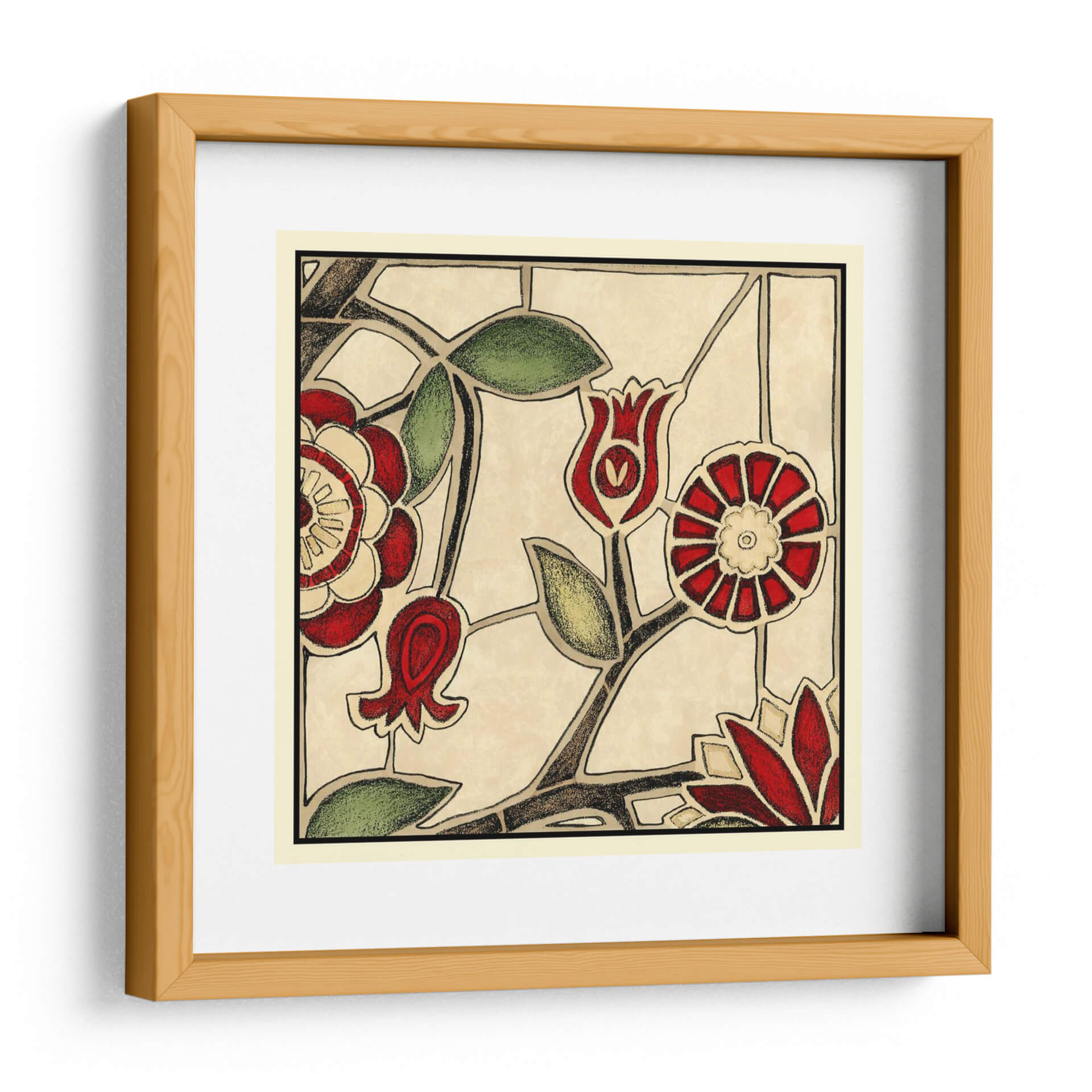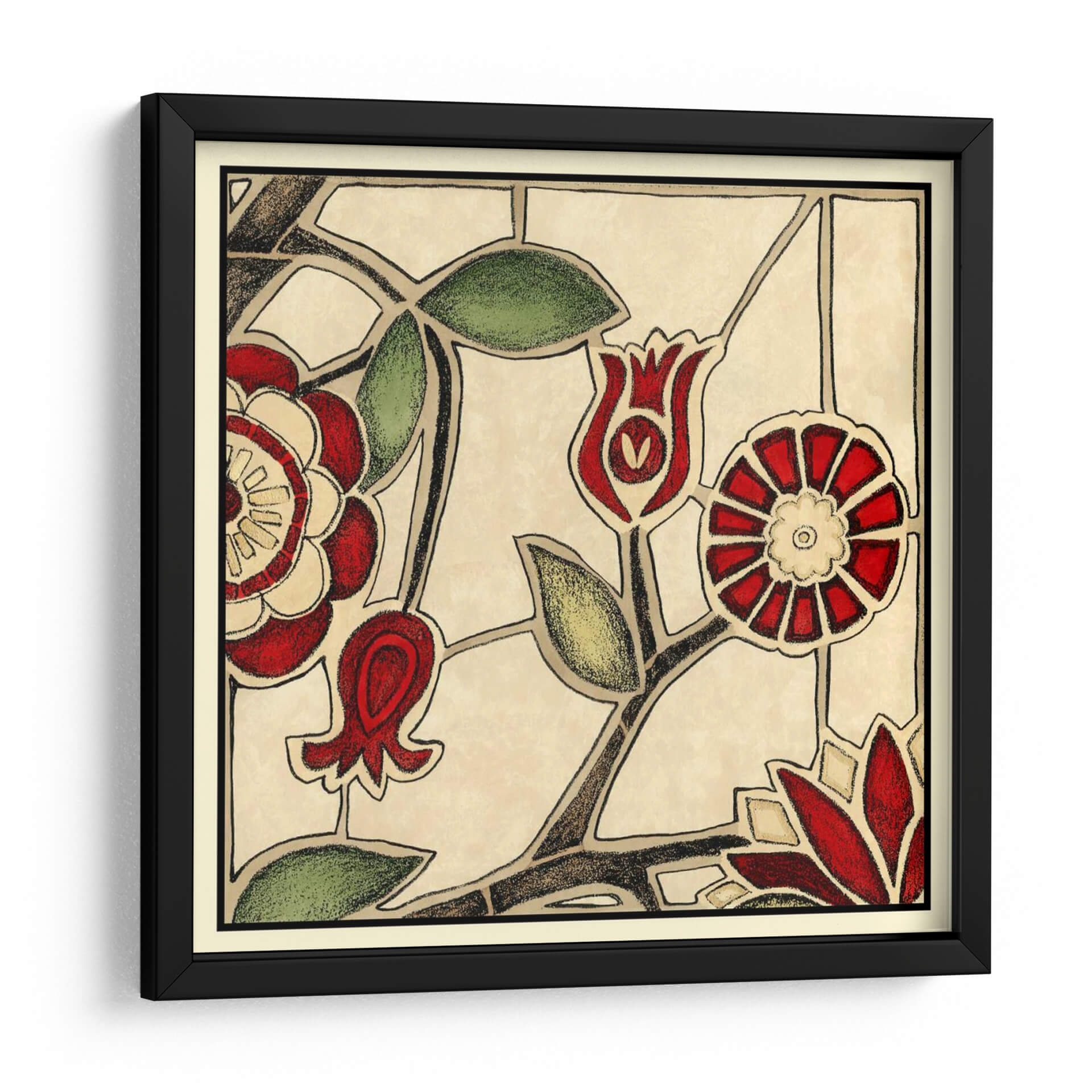 Adéntrate en un jardín de ensueño con "Mosaico Floral II", una cautivadora obra de arte de Megan Meagher que evoca la delicadeza de la naturaleza a través de un diseño intrincado y una paleta de colores vibrantes. Esta pieza presenta un arreglo floral estilizado, donde los rojos intensos de los pétalos y los verdes profundos de las hojas contrastan sutilmente con un fondo texturizado en tonos crema y beige. Las líneas negras audaces que delimitan cada forma otorgan un aire gráfico y moderno, fusionando la calidez de lo orgánico con una estructura definida. El estilo, que recuerda a los vitrales o a un diseño de azulejos vintage, aporta una sensación de atemporalidad y sofisticación. "Mosaico Floral II" es perfecto para añadir un toque de color y vitalidad a cualquier espacio, ya sea una sala de estar moderna, un comedor acogedor o un estudio creativo. Su composición equilibrada y su temática floral lo convierten en una elección ideal para quienes buscan infundir serenidad y belleza en su hogar u oficina, creando un punto focal que inspira y embellece.