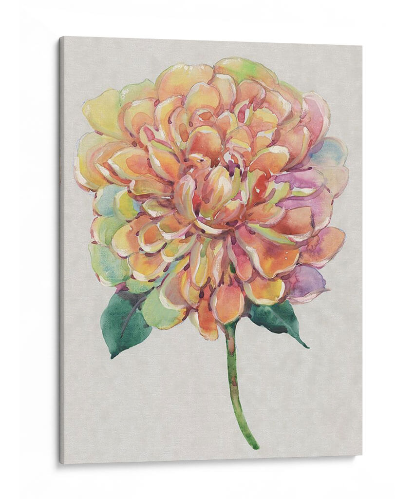 Embellezca su hogar con el vibrante cuadro decorativo 'Multicolor Floral I' de Tim O'Toole. Esta exquisita obra de arte captura la belleza etérea de una flor en plena floración, presentada con un estilo acuarela que evoca delicadeza y frescura. La paleta de colores es un festín visual, donde los tonos cálidos del naranja y el amarillo se entrelazan con toques de rosa, melocotón y verdes suaves, creando un efecto armonioso y lleno de vida. Cada pétalo parece danzar, ofreciendo profundidad y textura a la composición, mientras que el tallo y las hojas verdes aportan un contraste terrenal y anclan la pieza. El fondo neutro y texturizado permite que la flor sea la protagonista indiscutible, asegurando que esta obra se integre a la perfección en cualquier esquema de decoración. Ideal para añadir un toque de color y sofisticación a salas de estar, dormitorios o cualquier espacio que necesite un soplo de vitalidad natural. 'Multicolor Floral I' no es solo una decoración, es una invitación a la contemplación de la belleza efímera de la naturaleza.
