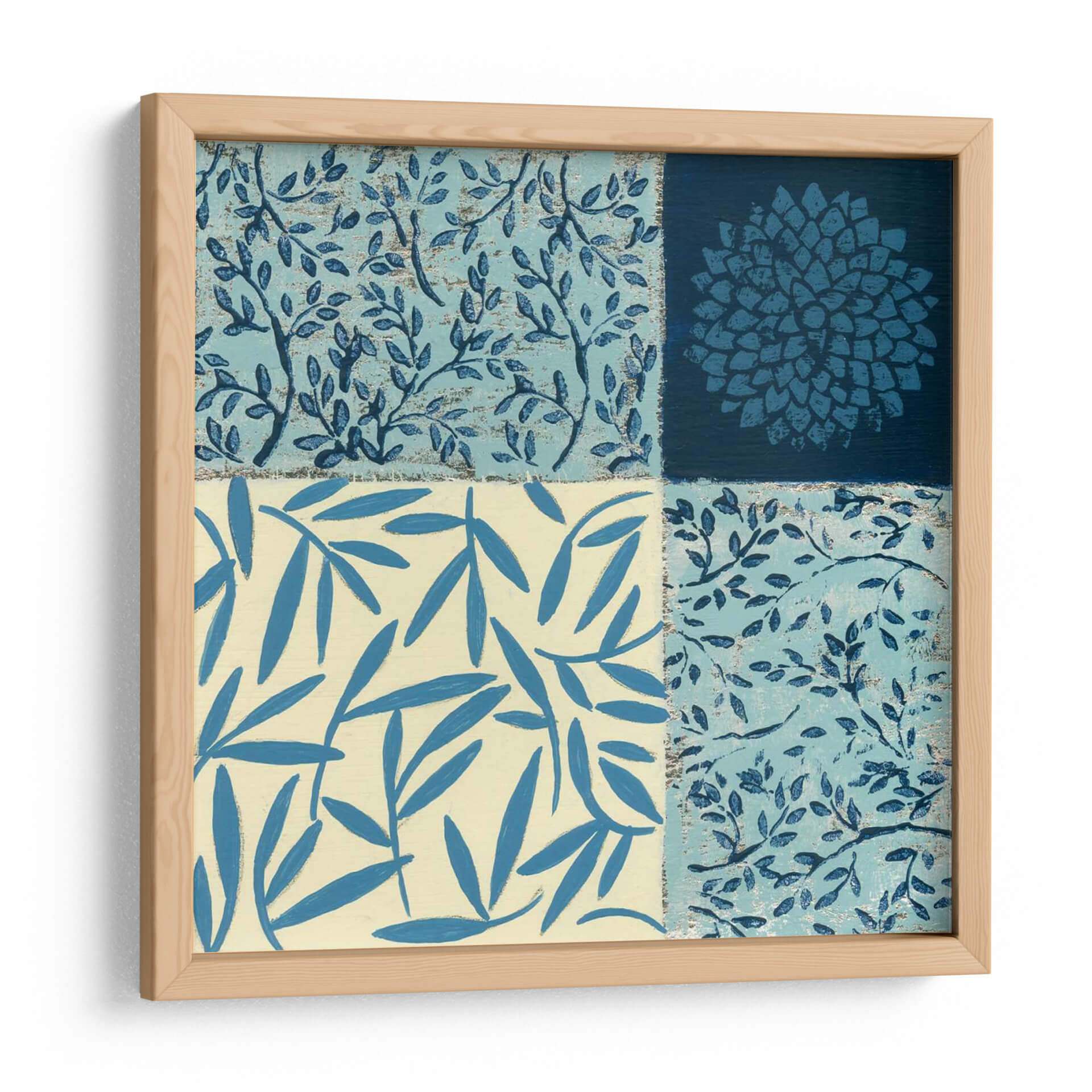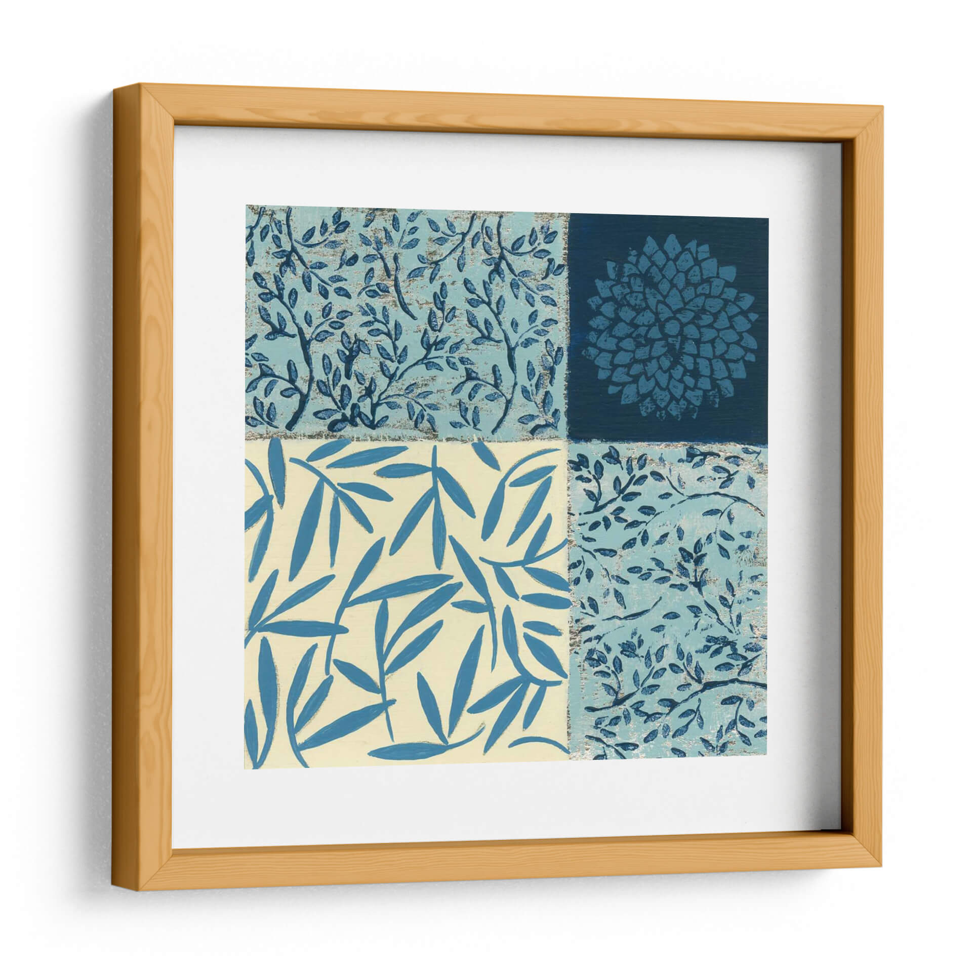 Sumérgete en la serenidad y la belleza natural con "Natures Montage III" de Nancy Slocum, una obra de arte decorativo que captura la esencia de la botánica con un toque contemporáneo. Este cuadro se presenta como un collage visual, dividido en cuatro paneles que exhiben patrones orgánicos y delicados. Los tonos azules, que varían desde un azul marino profundo hasta un azul cielo suave, se combinan con un fondo cremoso y texturas sutiles que evocan la sensación de un grabado antiguo. En un panel, las ramas con hojas estilizadas se entrelazan sobre un fondo claro, mientras que en otro, un diseño floral abstracto en azul oscuro se asoma. Los otros dos paneles presentan patrones de follaje intrincados, creando un conjunto armonioso y cautivador. La composición en mosaico aporta un ritmo visual interesante, haciendo de esta pieza una adición versátil para cualquier espacio. Ideal para añadir un toque de calma y elegancia a tu sala de estar, dormitorio u oficina, este cuadro decorativo invita a la contemplación y la conexión con la naturaleza. Su estilo distintivo lo convierte en un punto focal encantador que complementa tanto la decoración moderna como la tradicional, aportando una atmósfera de tranquilidad y sofisticación a tu hogar. Descubre la obra de Nancy Slocum y transforma tus paredes en un oasis de arte.