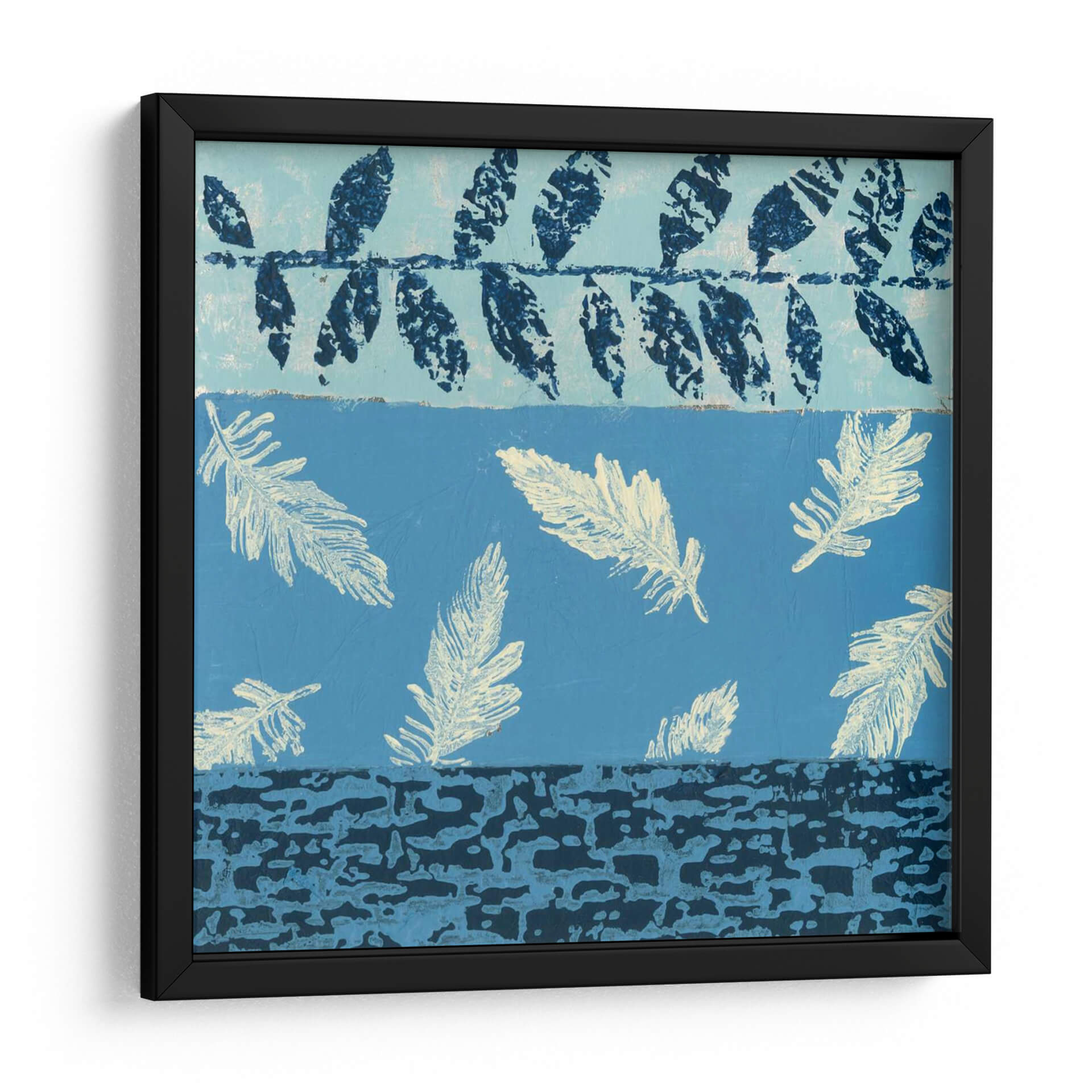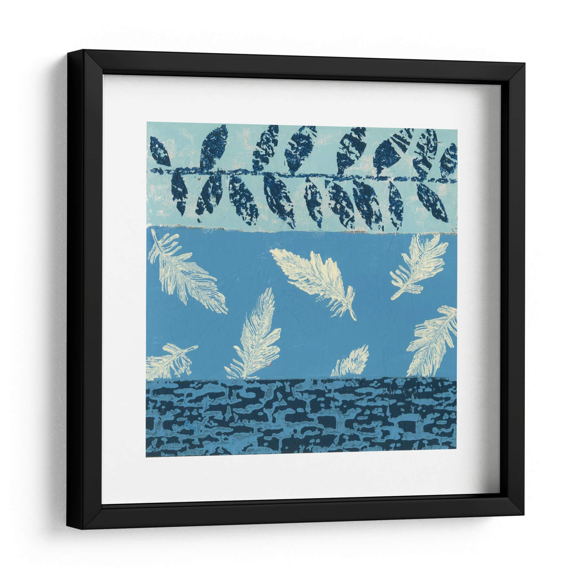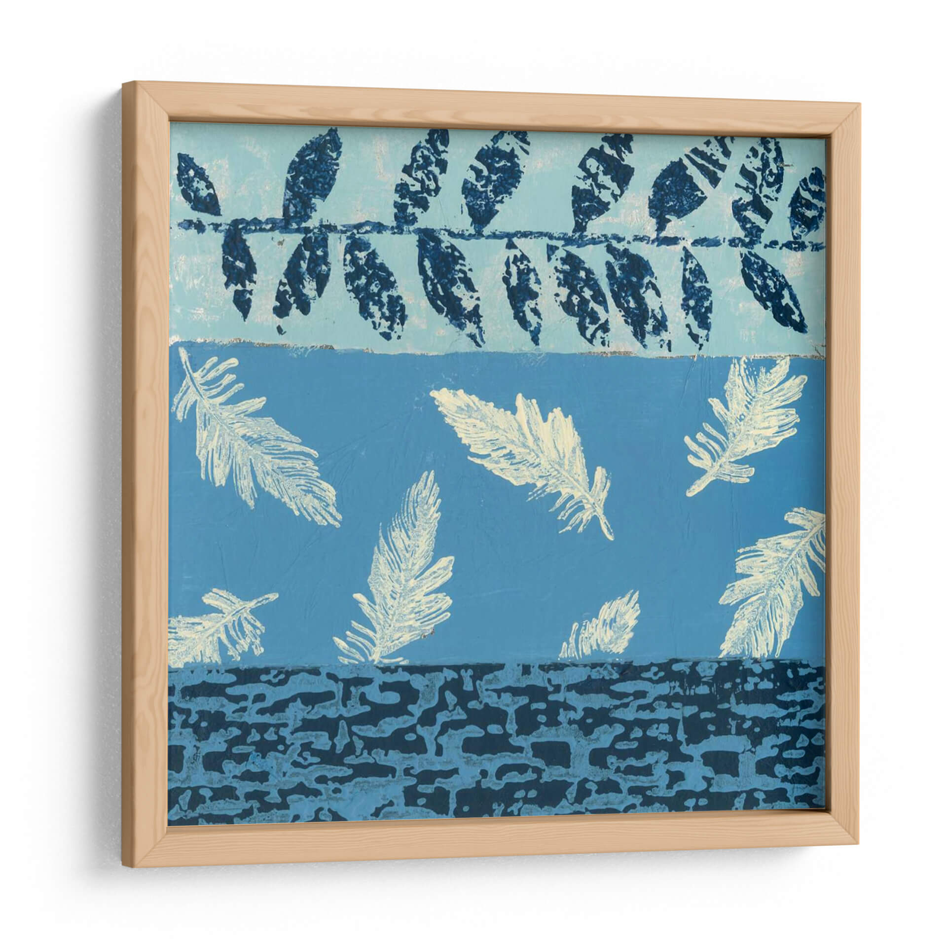 Sumérgete en la serenidad de "Natures Montage Vii", una obra de arte contemporáneo que captura la delicadeza de la naturaleza en una composición abstracta y cautivadora. La pieza se despliega en una paleta de azules serenos, desde el celeste pálido hasta el índigo profundo, creando una atmósfera de calma y reflexión. Las franjas de color se entrelazan con motivos orgánicos: la fila superior presenta hojas estilizadas en un azul oscuro, evocando un patrón de estampado tradicional, mientras que la franja central se adorna con plumas delicadas en un tono marfil, que parecen flotar en un cielo azul vibrante. La base de la obra se cierra con un patrón texturizado que recuerda a la piedra o la madera, aportando profundidad y contraste. Este cuadro decorativo, con su estilo único que combina elementos naturales y abstracción, es perfecto para añadir un toque de elegancia natural a cualquier espacio. Ideal para salones, dormitorios o estudios, "Natures Montage Vii" invita a la contemplación y aporta una sensación de paz y armonía, convirtiéndose en un punto focal sofisticado y lleno de vida para tu decoración.