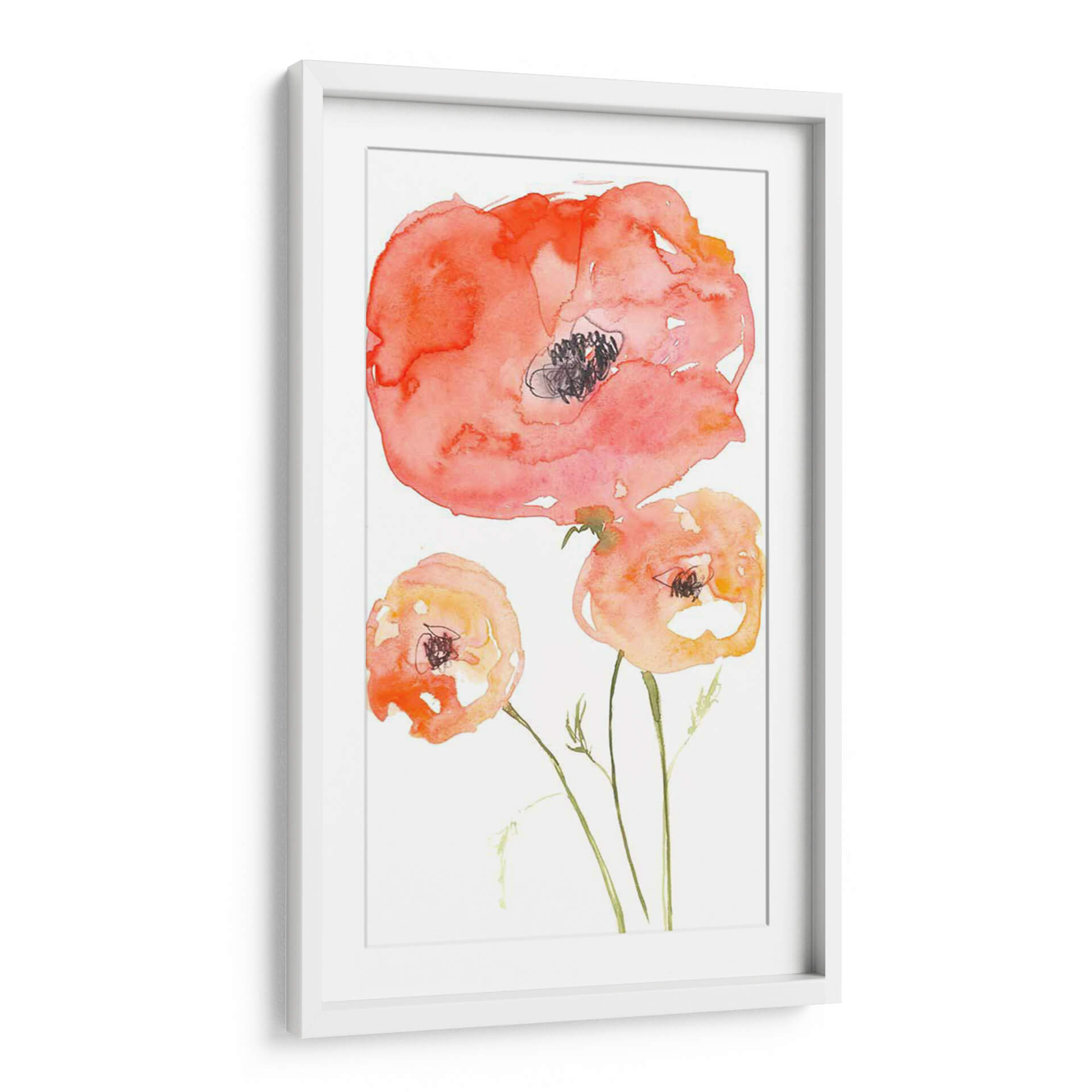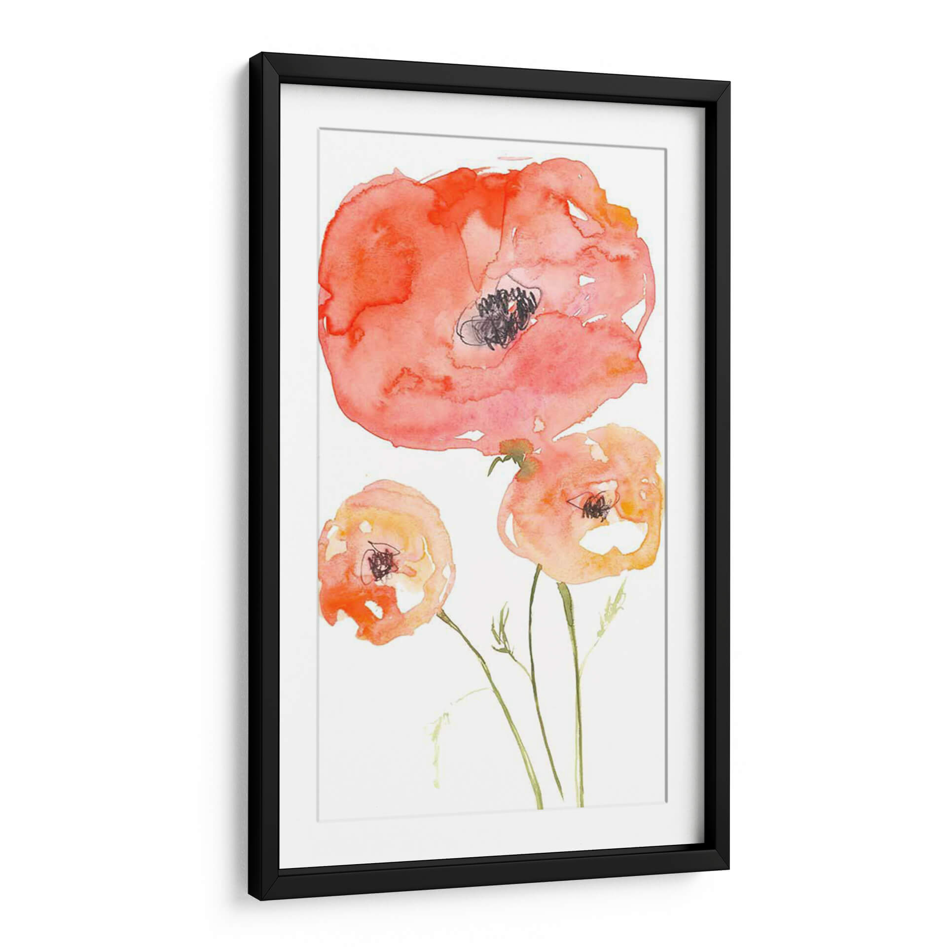 Sumérgete en la vibrante belleza de "Neon Poppies II", una obra de arte contemporáneo que captura la esencia de las amapolas con una delicadeza acuarela. La artista Jennifer Goldberger nos presenta una explosión de tonos anaranjados y rosados, bañados en una luz suave que evoca la calidez de un atardecer. Las pinceladas fluidas y las sutiles líneas de contorno en negro definen las formas etéreas de estas flores, creando una composición que equilibra lo figurativo con lo abstracto. El fondo blanco y minimalista permite que los vibrantes pétalos sean los protagonistas, invitando a la contemplación y aportando una sensación de frescura y vitalidad a cualquier espacio. Este cuadro decorativo es ideal para añadir un toque de color y optimismo a salones modernos, dormitorios serenos u oficinas creativas. Su estilo único y su atmósfera luminosa lo convierten en una pieza versátil, capaz de complementar una amplia gama de decoraciones, desde las más sencillas hasta las más audaces. "Neon Poppies II" no es solo una imagen, es una invitación a sentir la alegría de la naturaleza y la expresividad del arte moderno.