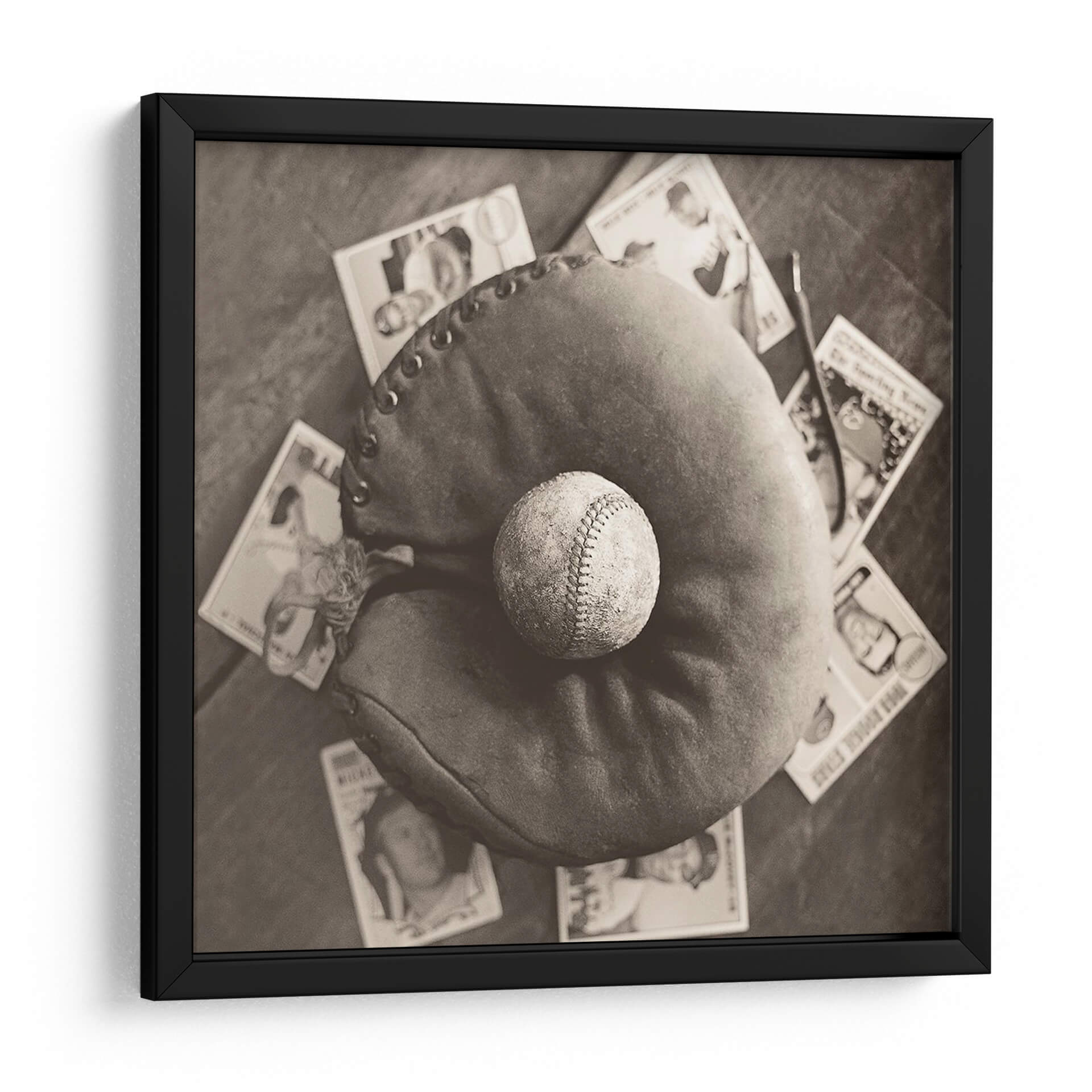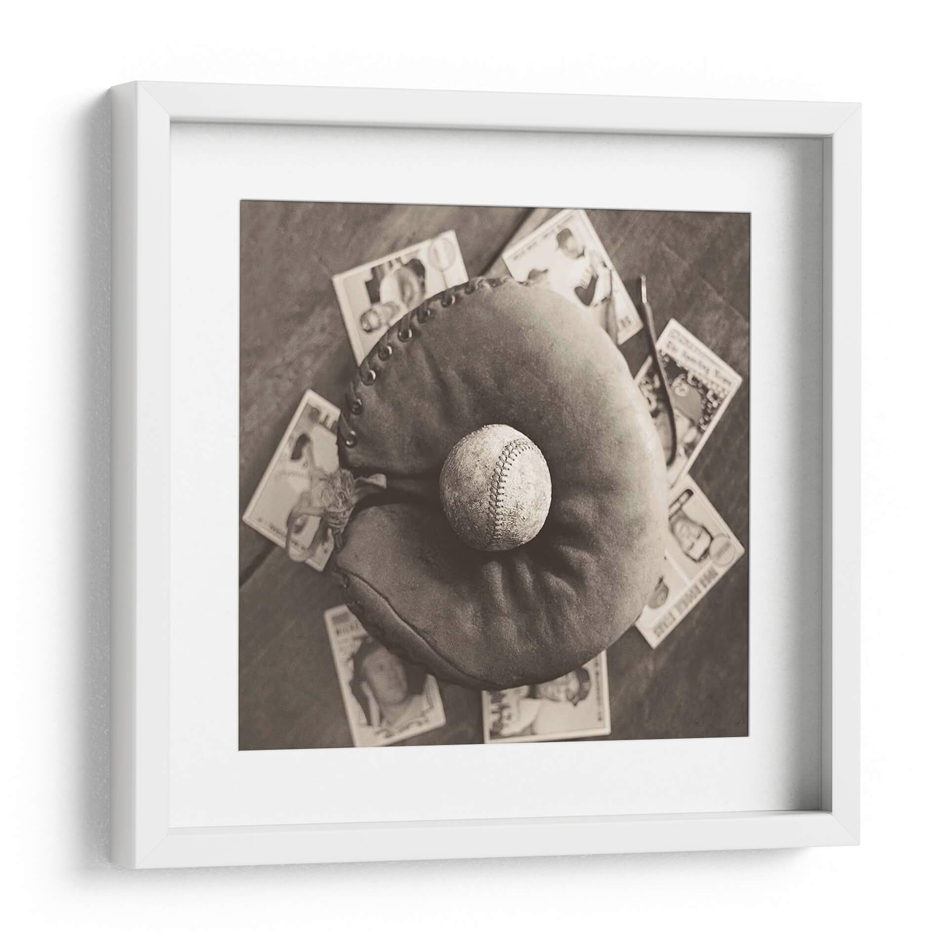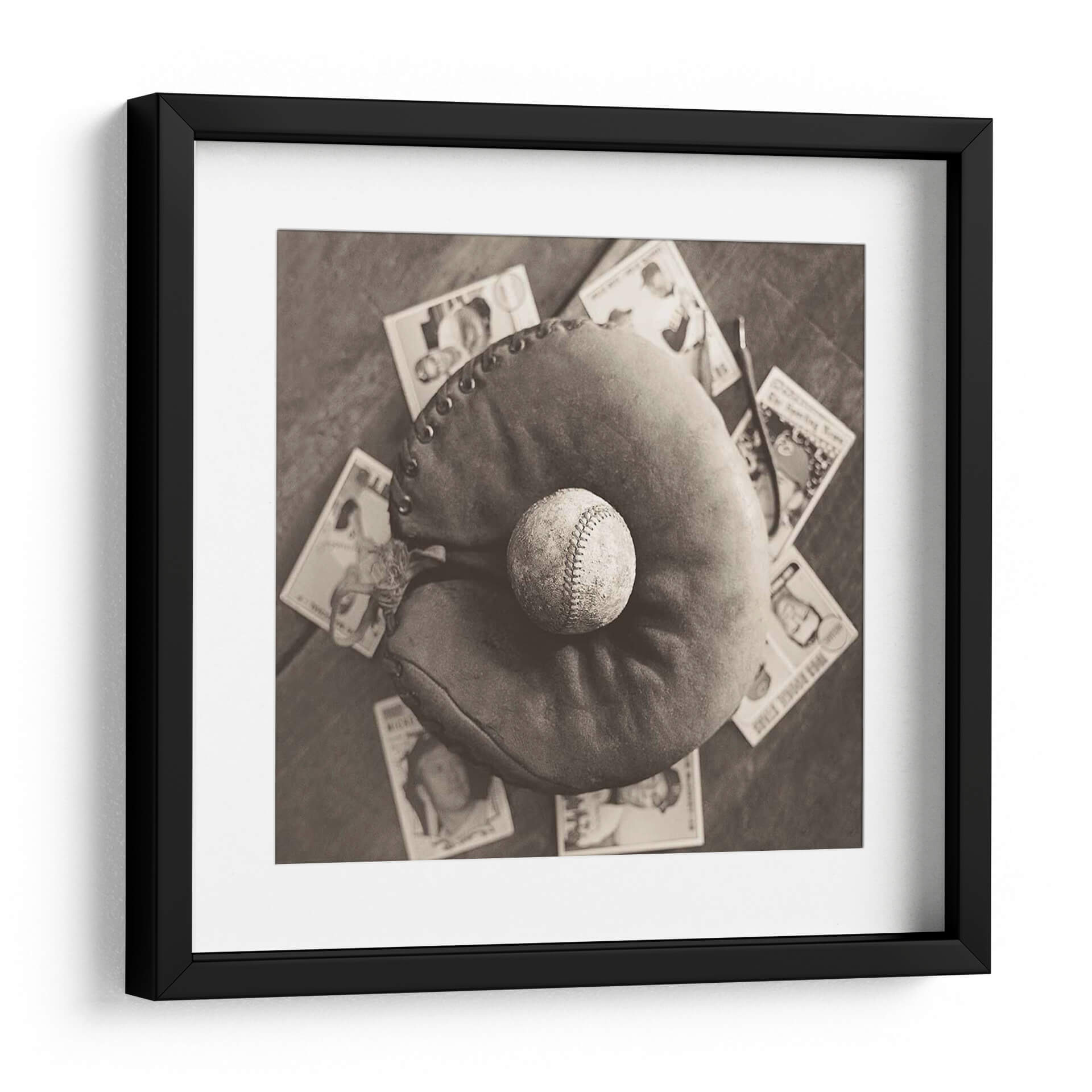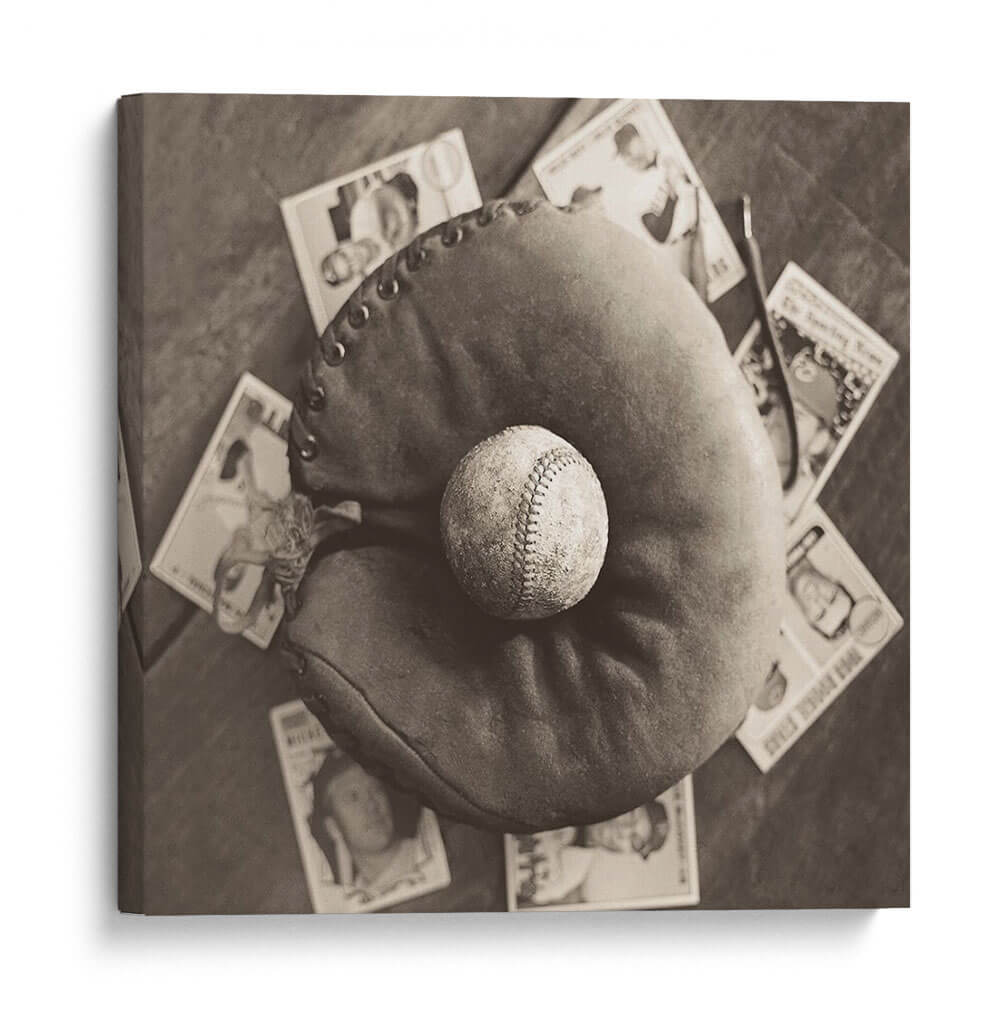 Sumérgete en la evocadora imagen de "Nostalgia De Béisbol Iii", una obra de arte que captura la esencia atemporal del pasatiempo nacional estadounidense. Esta pieza, en un cautivador tono sepia, presenta un guante de béisbol desgastado con una pelota descansando en su interior, rodeado de tarjetas de béisbol vintage. La fotografía, con su paleta monocromática, evoca un profundo sentido de nostalgia y reminiscencia, transportando al espectador a épocas pasadas. La composición, con un enfoque cercano en los elementos icónicos del béisbol, resalta la textura del cuero del guante y las costuras de la pelota, invitando a la contemplación. Ideal para los amantes del deporte, coleccionistas o cualquiera que aprecie una estética vintage, este cuadro decorativo es perfecto para añadir un toque de carácter y conversación a cualquier sala de estar, estudio u oficina. Su estilo fotográfico clásico y el tema universal del béisbol lo convierten en una adición versátil y conmovedora a tu decoración de pared, celebrando la historia y la pasión del juego.